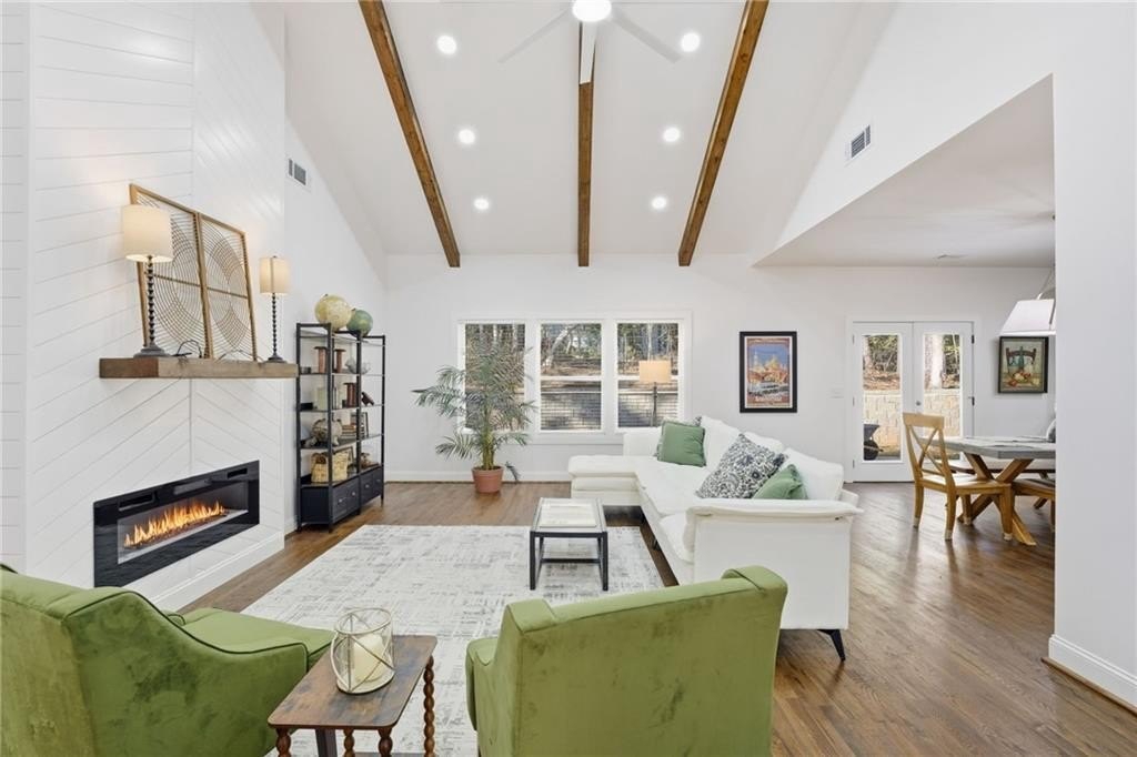 Discover this stunning new construction masterpiece in prestigious Fairfield Plantation! One level living at its finest in a highly sought after guard gated community with resort-style amenities. The curb appeal of this professionally landscaped corner lot off a quiet cul-de-sac will immediately catch your eye. As you walk through the double front door and enter the oversized foyer you’ll quickly realize this home isn’t like the others. Real hardwood floors throughout, stained beams and designer lighting and paint colors make it clear no detail was overlooked. The foyer leads into the spacious family room with vaulted ceiling, lots of natural and recessed light and a fireplace with awe-inspiring woodwork. The main living spaces flow seamlessly so it’s ideal for entertaining family and friends. The dining area also leads out to the back patio, so grilling is a breeze. The chef’s kitchen has abundant cabinet space and work areas with an oversized island and walk in pantry. The exotic granite and vent hood give it a classy touch. Heading to the garage off the kitchen you’ll notice the handy bench area for taking off shoes across from the large laundry room. The other side of the home has three large bedrooms all with hardwood floors. The master bedroom has a tray ceiling with a breathtaking en-suite bathroom. The beautifully tiled walk-in master shower has a slipper tub at the back and a transom window to let in natural light. The walk-in closet is enormous. The two secondary bedrooms share a full bath with a tiled tub shower combo. The world class amenities in this exclusive gated lake and golf community with country club and two restaurants include two pools, tennis, pickleball and basketball courts, playground, a private marina, beach and walking trails. Conveniently located close to I-20 and Hartsfield International Airport. You’ll be proud to call it home.