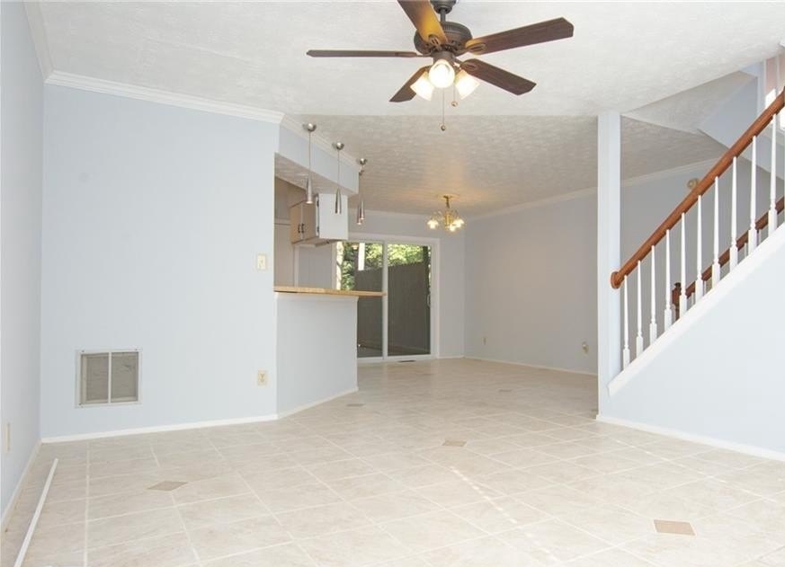 upstairs; Ceramic tile floor at the main and lower floor. Refrigerator, washer and dry all stay. Right in the intersection of I-85 and I-285.