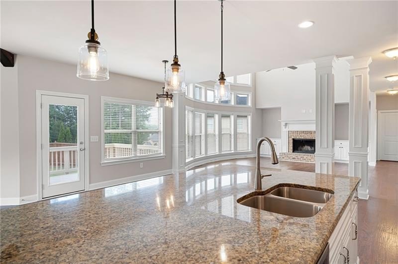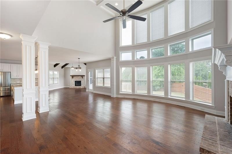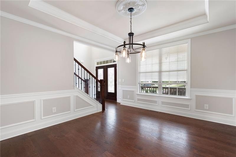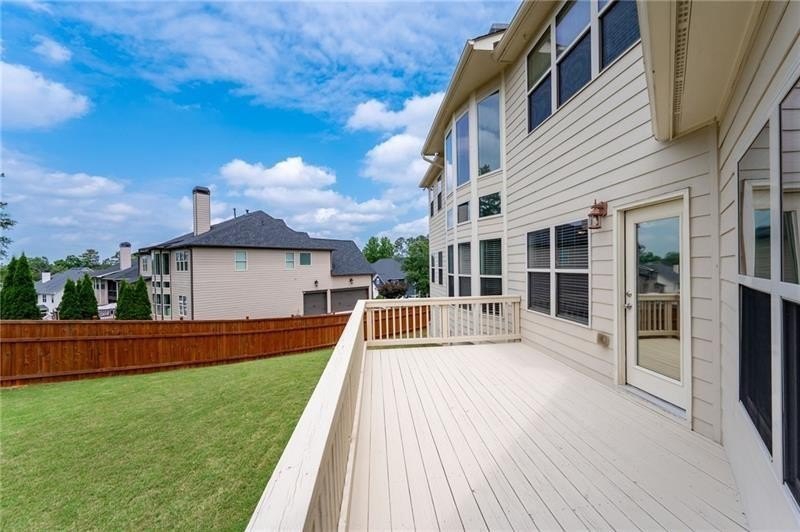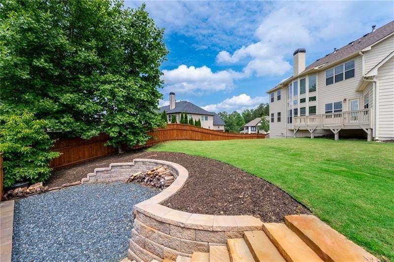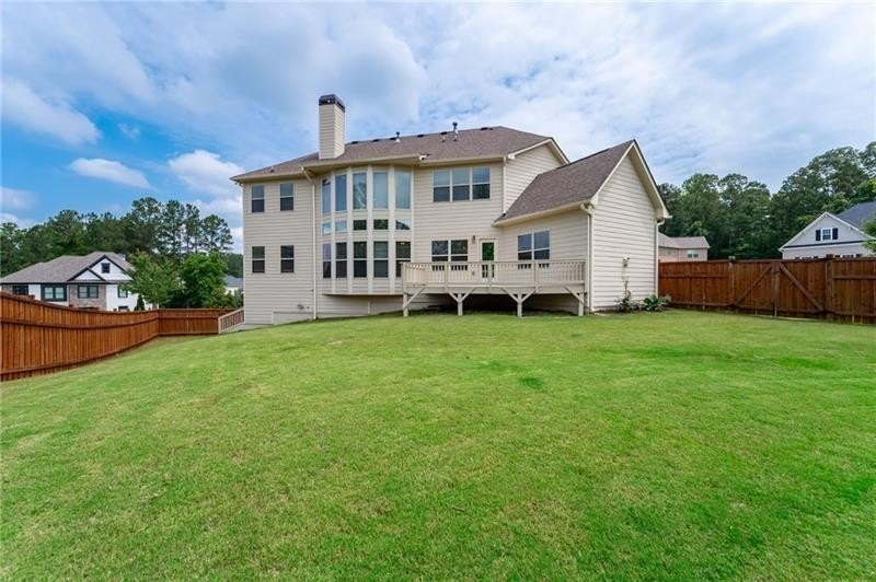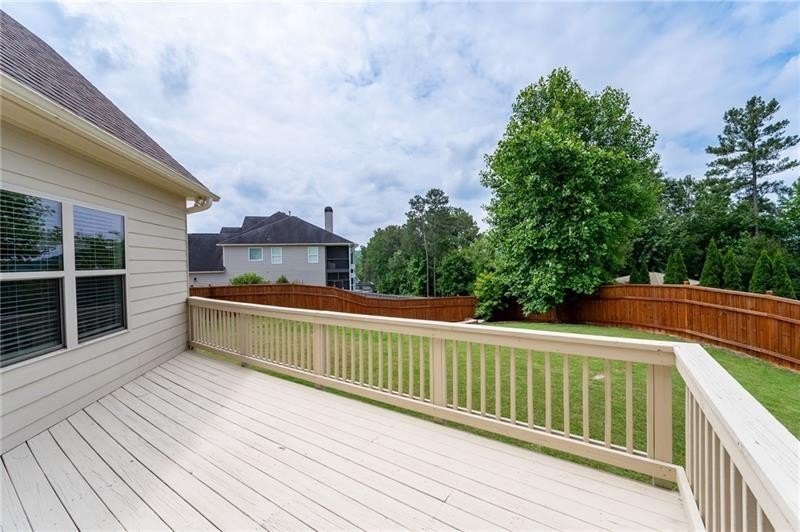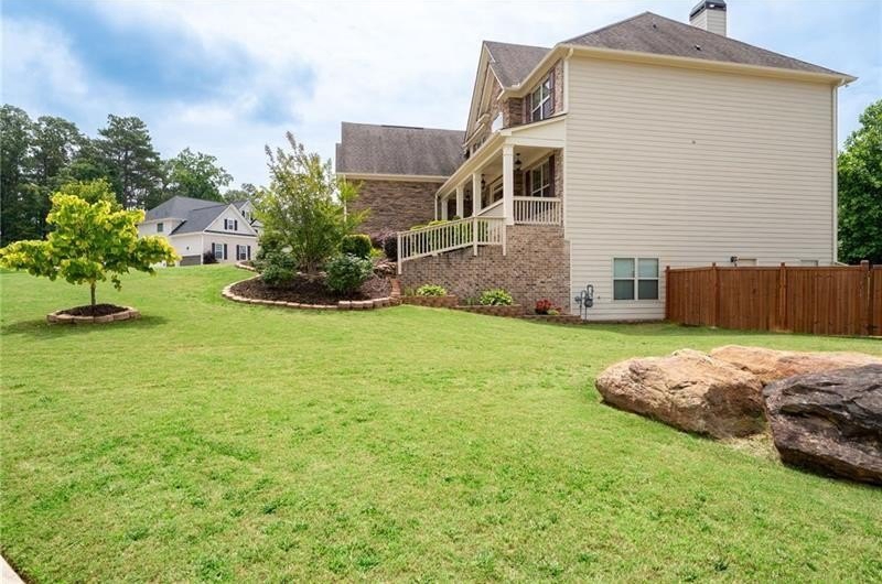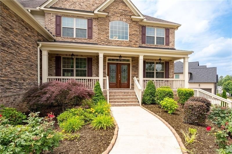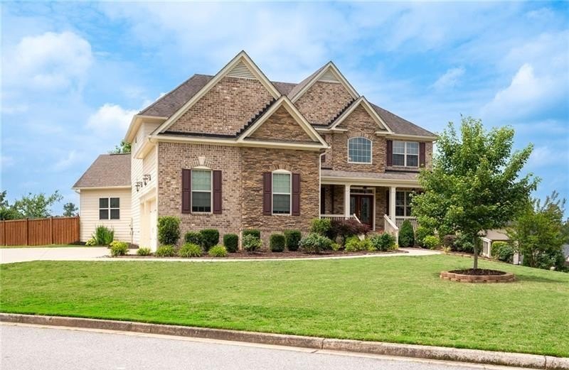 Schedule an appointment to view this gorgeous executive home that boasts 5 bedrooms and an unfinished basement on a corner lot! Renovations include new carpet throughout, new interior paint, freshly painted kitchen cabinets, newly installed built-ins in the great room, refinished hardwoods, electric blinds, tinted family room windows, tinted back door, newly stained deck, fence and a firepit sitting area. The two-story foyer and gleaming, refinished hard woods will great your guests. The chef’s kitchen is appointed with freshly painted cabinets, new pendants, stainless steel appliances to include a new refrigerator and dishwasher, granite countertops, tile backsplash, and an oversized island with seating. The kitchen opens to the sunny side eat in area with a new light fixture and the keeping room that features a vaulted ceiling, wood beams, and a brick fireplace and to the sunny eat in area. The open floor plan continues with the great room that boast, new hardwoods, a beautiful wall of windows, brick fireplace, and new built ins. The dining room features a new light fixture, trey ceiling, and wainscoting and is ready to host your dinner parties. The formal living room is perfect as a home office. Your guest will enjoy their time in their private ensuite that is appointed with new paint and new hardwoods. The second floor features the primary suite with a sitting area, trey ceiling, French doors, an oversized closet, granite counters, dual vanities, jetted tub, walk in shower, and a frosted window. There is another ensuite with a tiled shower and granite countertop. There are two additional bedrooms that share a Jack-n-Jill bathroom with a tiled shower and granite counters. Relax on your covered front porch and enjoy the sunset. The deck overlooks the private, level backyard. There is plenty of room for a pool or playset. You will enjoy your evenings by the firepit. There is a double gate on one side of the fence and single gate on other side. The basement is ready for your design and special touch. The three car garages are side entry and have extra height doors. The neighborhood is a conservation area with ample greenspace, featuring a fishing lake with dock, walking trails, pocket parks, Junior Olympic pool, kiddie pool with 4 mushroom waterfalls, clubhouse, playground, 6 lit tennis courts, basketball court, pickleball complex, and a vibrant social community. Enjoy the closeness to the North Georgia Mountains, Lake Lanier, and the North Georgia Premium Outlet Mall, adding to the unbeatable lifestyle this home offers.