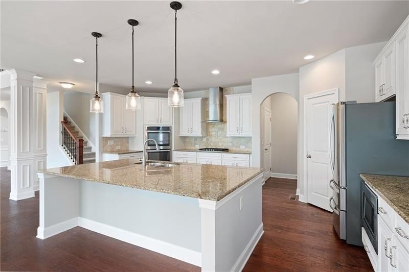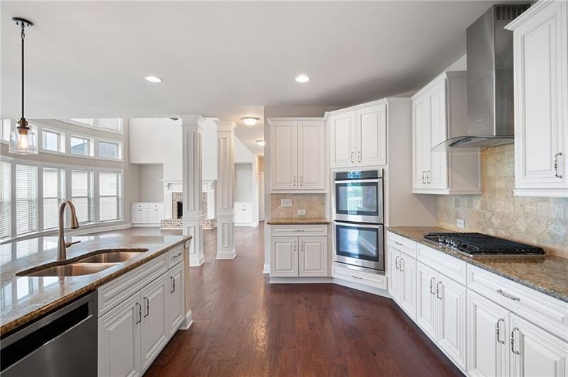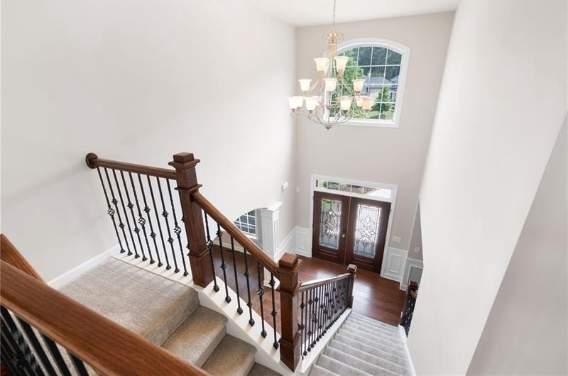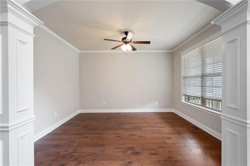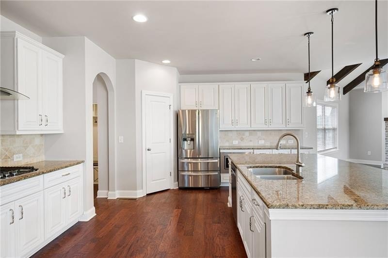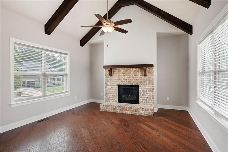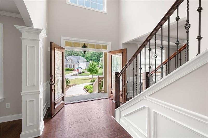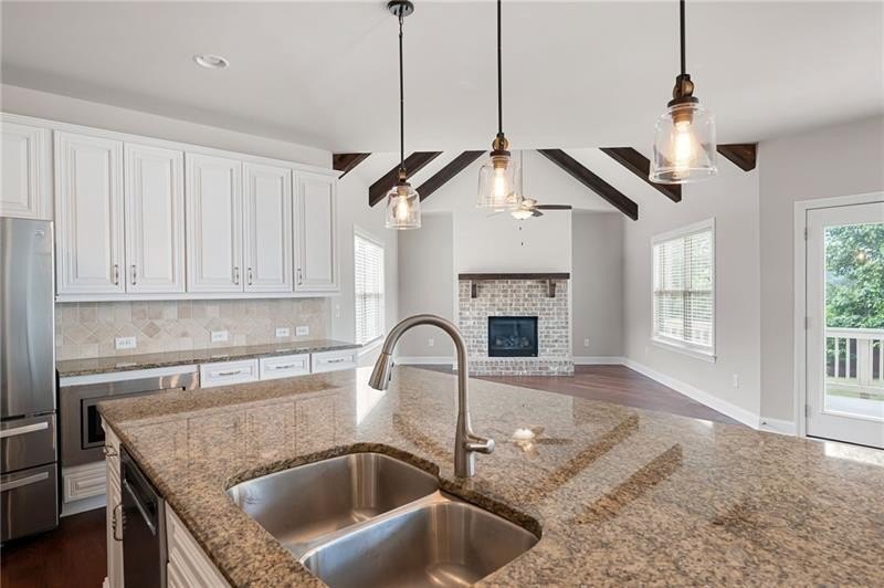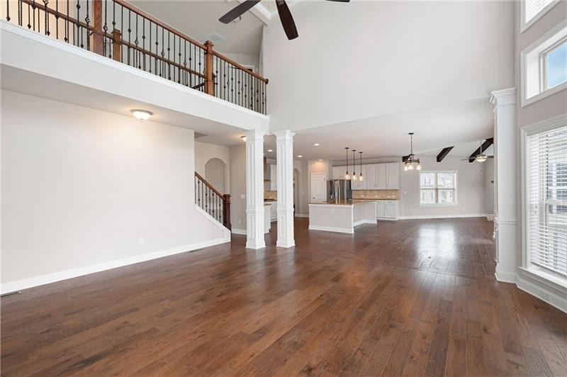 Schedule an appointment to view this gorgeous executive home that boasts 5 bedrooms and an unfinished basement on a corner lot! Renovations include new carpet throughout, new interior paint, freshly painted kitchen cabinets, newly installed built-ins in the great room, refinished hardwoods, electric blinds, tinted family room windows, tinted back door, newly stained deck, fence and a firepit sitting area. The two-story foyer and gleaming, refinished hard woods will great your guests. The chef’s kitchen is appointed with freshly painted cabinets, new pendants, stainless steel appliances to include a new refrigerator and dishwasher, granite countertops, tile backsplash, and an oversized island with seating. The kitchen opens to the sunny side eat in area with a new light fixture and the keeping room that features a vaulted ceiling, wood beams, and a brick fireplace and to the sunny eat in area. The open floor plan continues with the great room that boast, new hardwoods, a beautiful wall of windows, brick fireplace, and new built ins. The dining room features a new light fixture, trey ceiling, and wainscoting and is ready to host your dinner parties. The formal living room is perfect as a home office. Your guest will enjoy their time in their private ensuite that is appointed with new paint and new hardwoods. The second floor features the primary suite with a sitting area, trey ceiling, French doors, an oversized closet, granite counters, dual vanities, jetted tub, walk in shower, and a frosted window. There is another ensuite with a tiled shower and granite countertop. There are two additional bedrooms that share a Jack-n-Jill bathroom with a tiled shower and granite counters. Relax on your covered front porch and enjoy the sunset. The deck overlooks the private, level backyard. There is plenty of room for a pool or playset. You will enjoy your evenings by the firepit. There is a double gate on one side of the fence and single gate on other side. The basement is ready for your design and special touch. The three car garages are side entry and have extra height doors. The neighborhood is a conservation area with ample greenspace, featuring a fishing lake with dock, walking trails, pocket parks, Junior Olympic pool, kiddie pool with 4 mushroom waterfalls, clubhouse, playground, 6 lit tennis courts, basketball court, pickleball complex, and a vibrant social community. Enjoy the closeness to the North Georgia Mountains, Lake Lanier, and the North Georgia Premium Outlet Mall, adding to the unbeatable lifestyle this home offers.