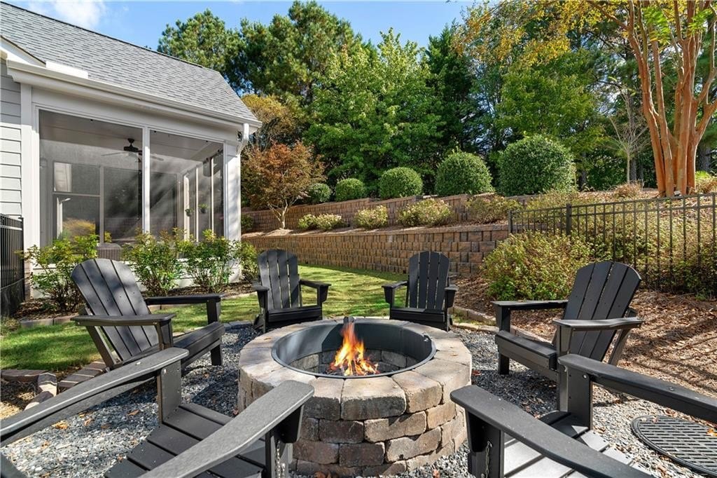Enjoy the outdoors year-round on the screened-in porch with a ceiling fan and lights, or relax by the terraced backyard fire pit. The yard is professionally landscaped, fenced and includes irrigation on all four sides for easy maintenance.