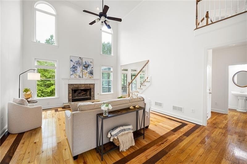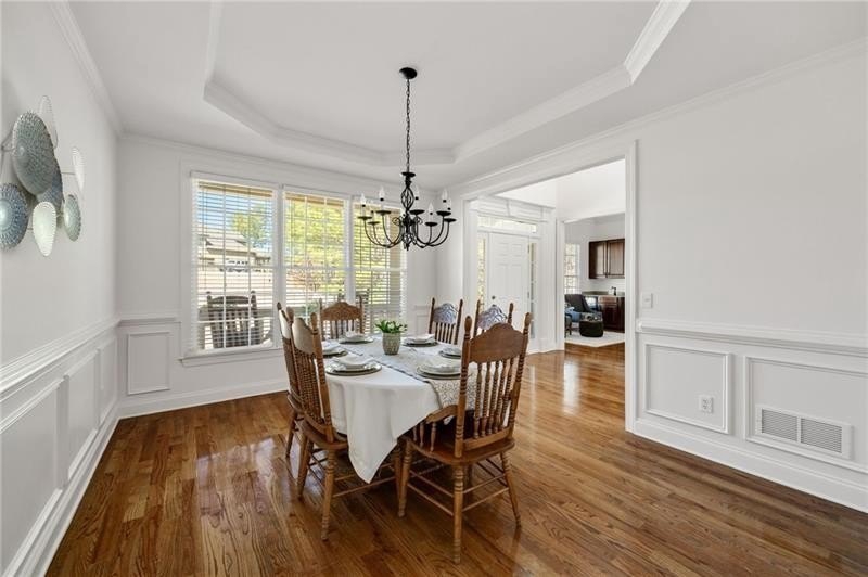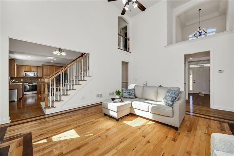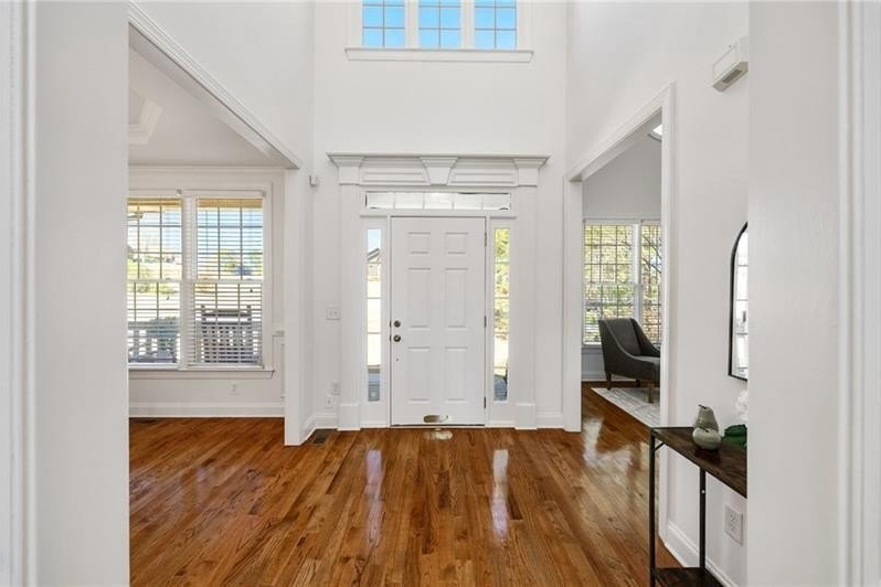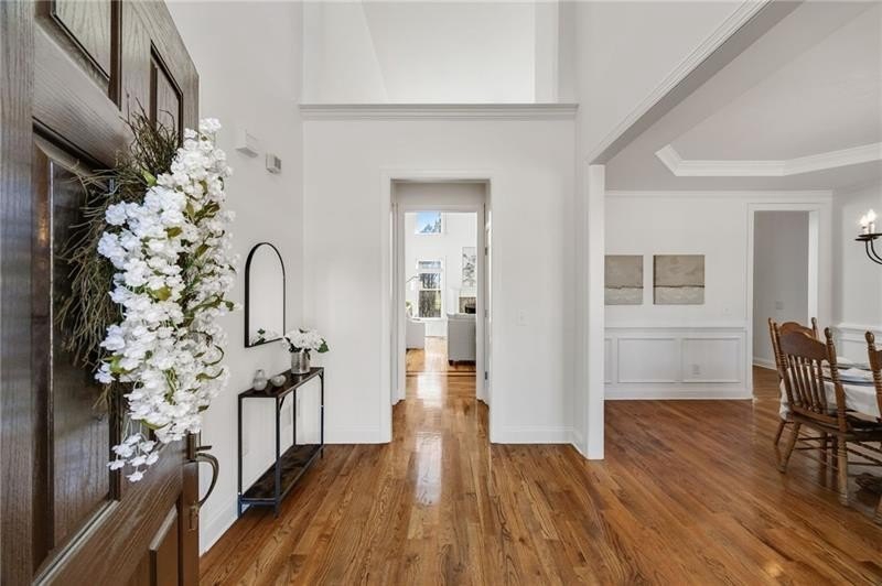From the moment you arrive, the home’s stately presence and inviting front porch make you feel right at home. Step inside to find gleaming hardwood floors, fresh interior paint, and brand-new carpet upstairs — a truly move-in-ready experience. The two-story foyer opens to a formal dining room on one side and a flexible study or parlor on the other — ideal for a home office, music room, or cozy reading nook.