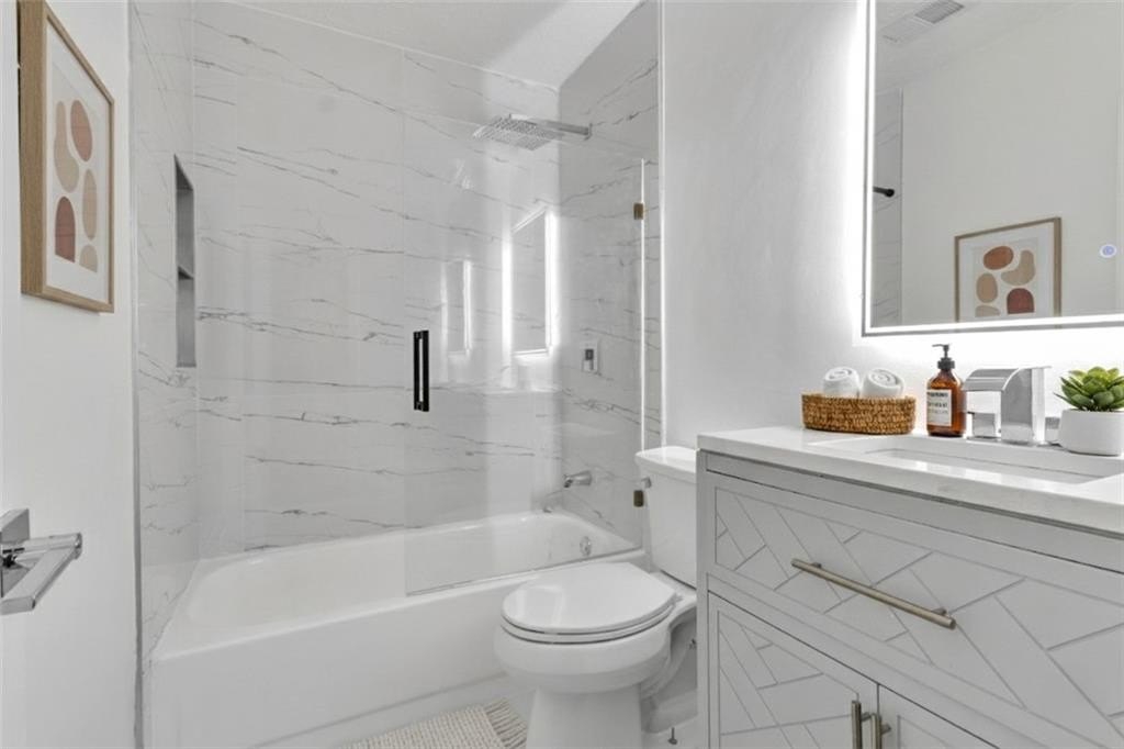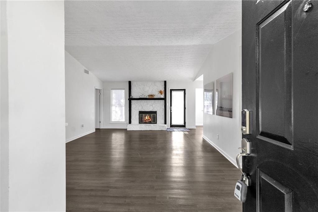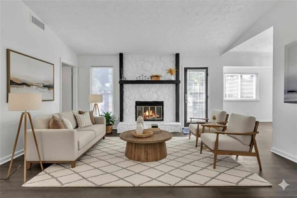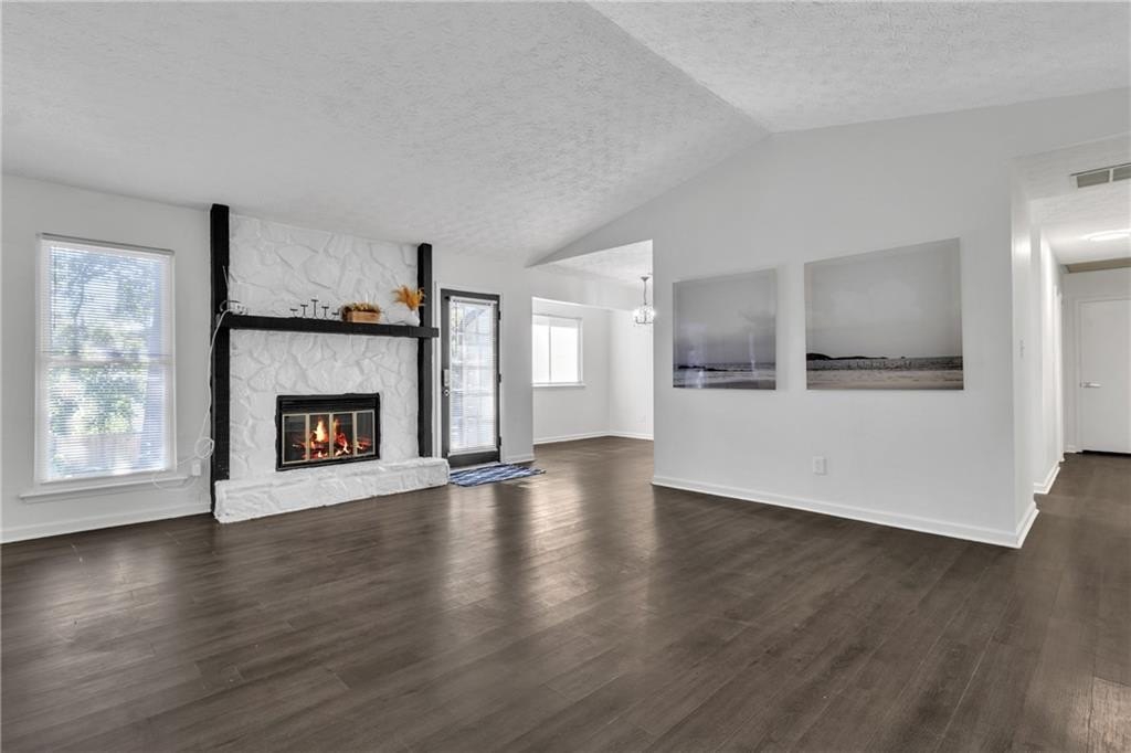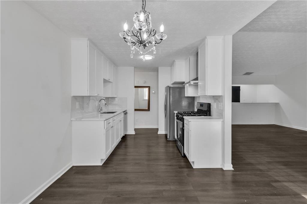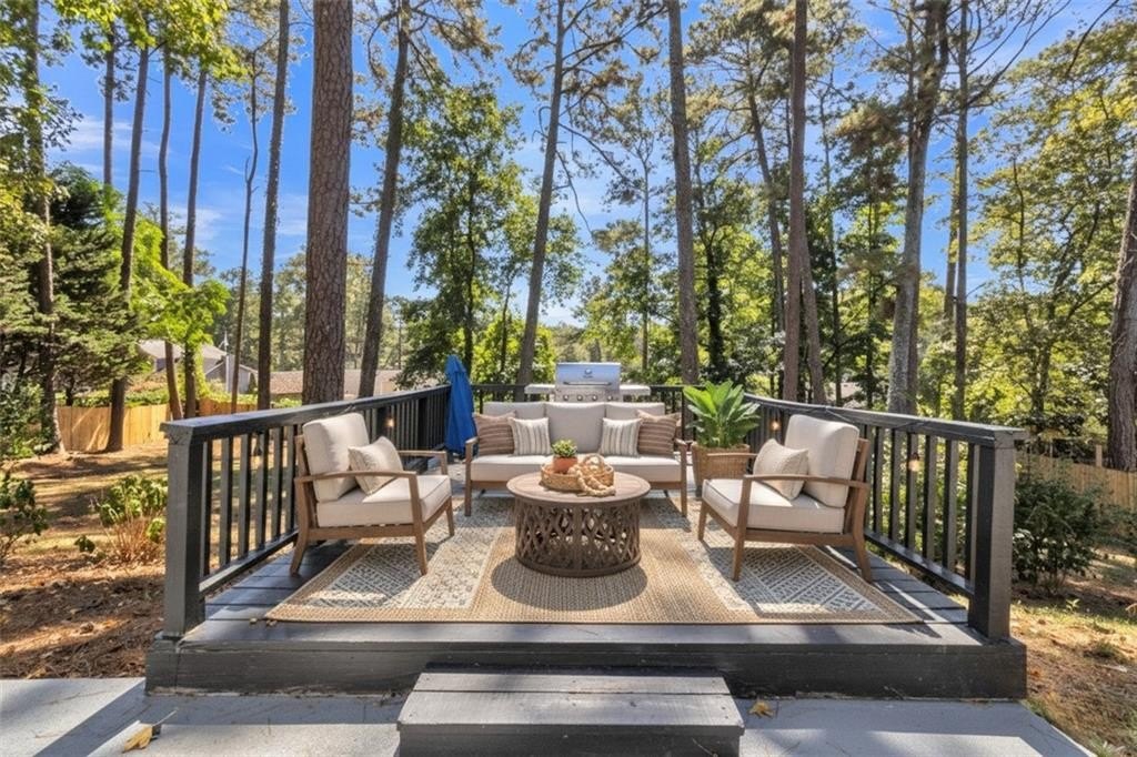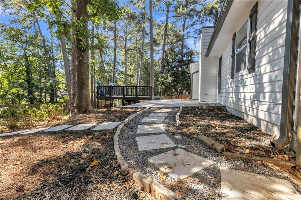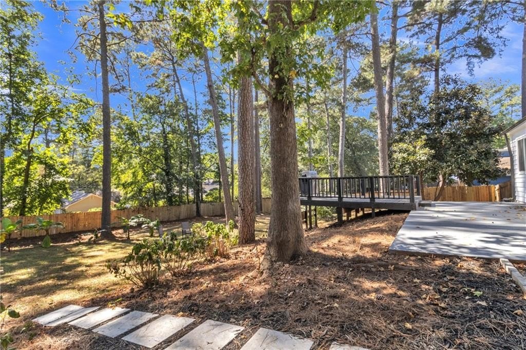 This fully renovated 4-bedroom, 2-bath home offers approximately 1,634 sq ft of modern living space, seamlessly blending fresh upgrades with charming surroundings. Nestled on a quiet, wooded cul-de-sac lot of about 0.43 acres, the property provides privacy and an expansive fenced backyard perfect for outdoor living. Step inside to find a fresh, inviting interior featuring brand-new flooring and paint throughout, an open living area with a cozy fireplace, and a stunning kitchen with white cabinets, gleaming countertops, and stainless steel appliances. Both full bathrooms have been beautifully updated with sleek tilework and contemporary fixtures, including stylish LED-lit vanity mirrors. Outside, entertain or relax on the deck overlooking the spacious yard, complete with a firepit area for evenings under the stars. A large driveway provides ample parking for multiple vehicles, and best of all, there’s no HOA to restrict your enjoyment. Truly move-in ready, this home offers modern comfort, ample space, and serene privacy in a convenient Norcross location.