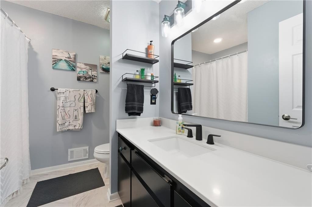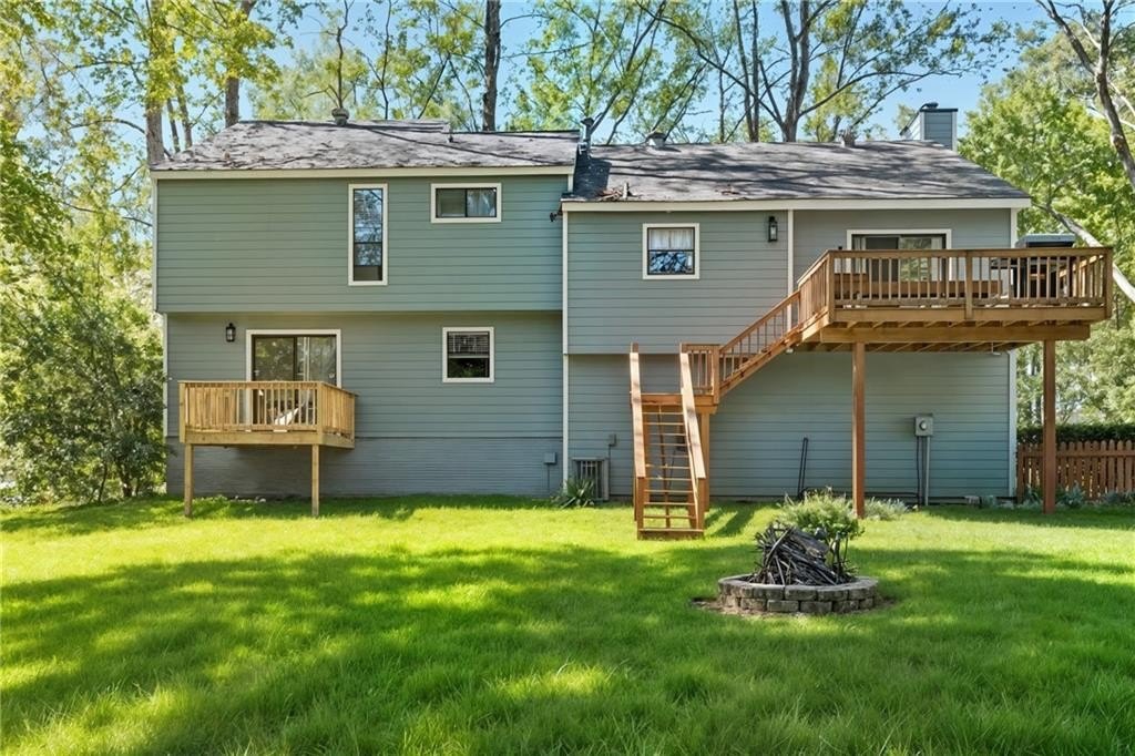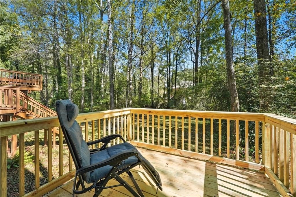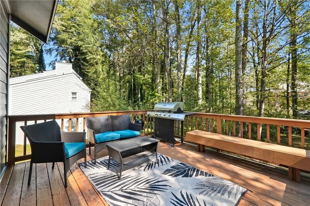 -----The large, open terrace level contains an office and is recently primed neutral, so you can paint it whatever color you would like. Two back decks (one is brand new) with built in seating and ample room for grilling or relaxing. The backyard has a firepit, perfect for fall weather, and is wooded and private. There is a great spot for basketball in the driveway, and the house sits at a cul-de-sac for extra parking. The neighborhood is transitioning and has a lot of upscale renovations going on throughout. Excellent location close to shopping, great schools, and many dining options. 15 min to DT Marietta or to DT Roswell, where some of the best night life and restaurants are located.