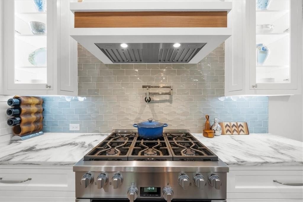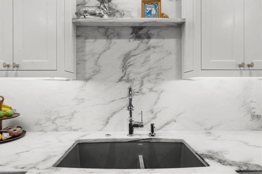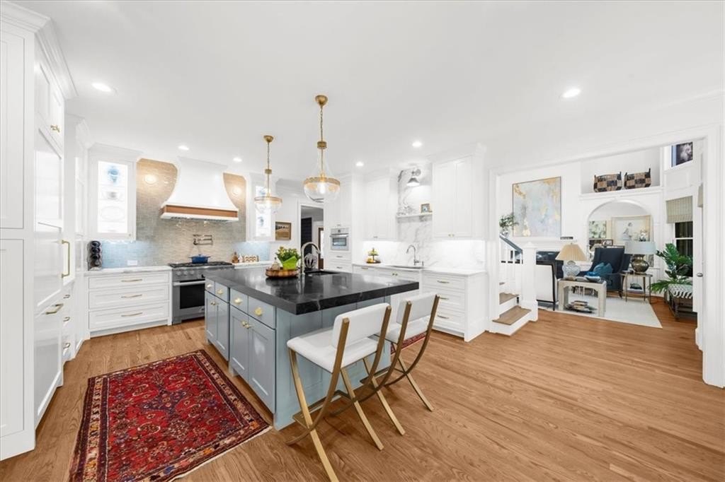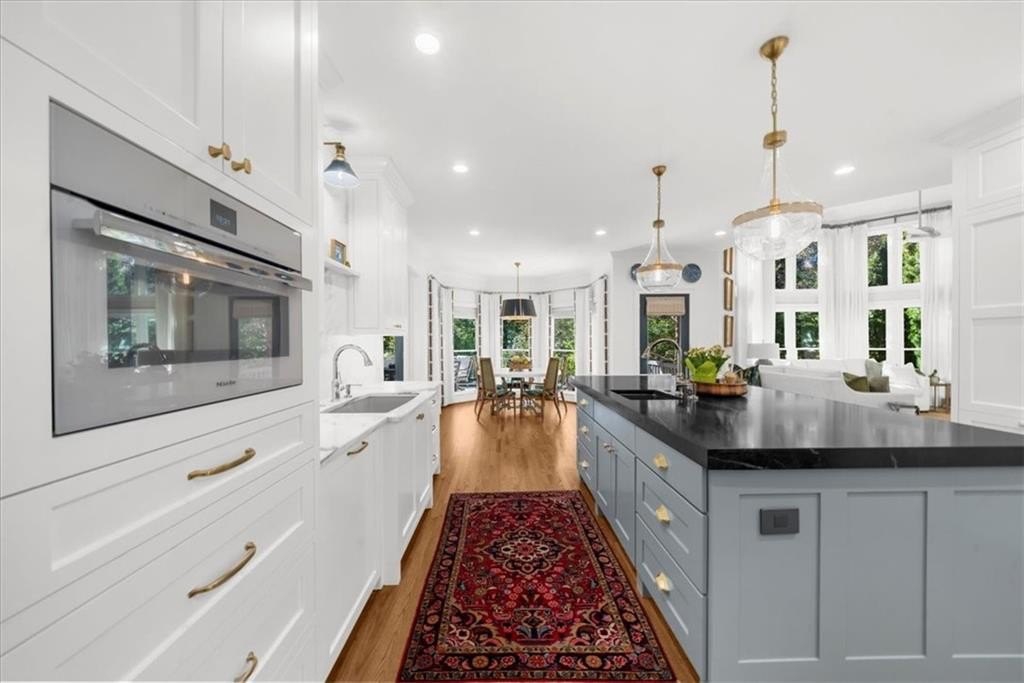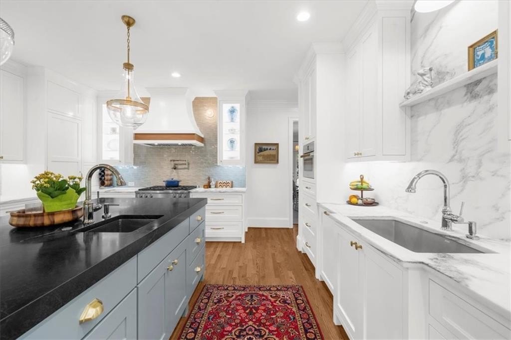 Step inside and you’ll immediately notice the exceptional finishes and refined aesthetic that define this designer’s personal home. The exquisite kitchen is a showcase of form and function, featuring custom cabinetry, built-in Miele appliances, marble and soapstone surfaces, Robert A.M. Stern architectural tile, Hudson Valley lighting, and individually zoned illumination throughout. Hidden details abound — a pantry seamlessly integrated into the cabinetry, filtered water at both sinks, and a microwave that doubles as a full electric oven.
