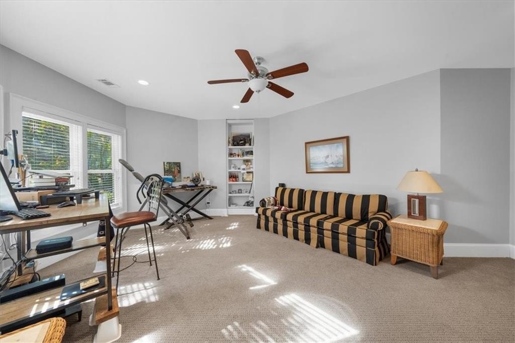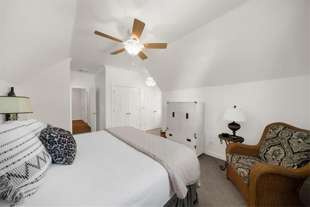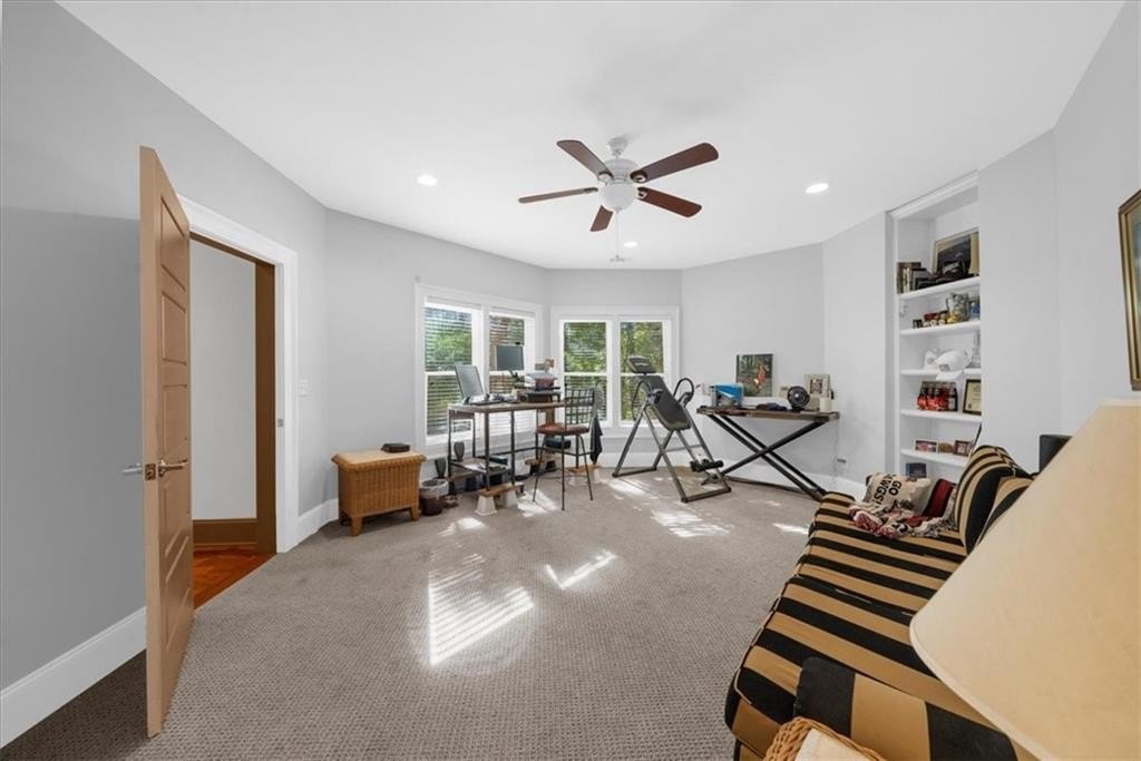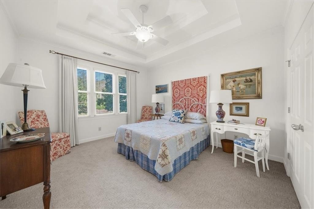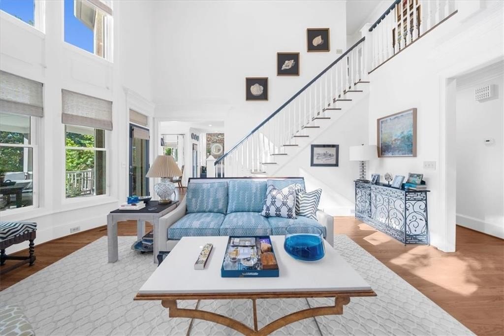 Additional highlights include Schumacher window treatments and wall coverings, custom natural woven shades, and a serene location on a quiet cul-de-sac street adjacent to the neighborhood’s green space and play area.