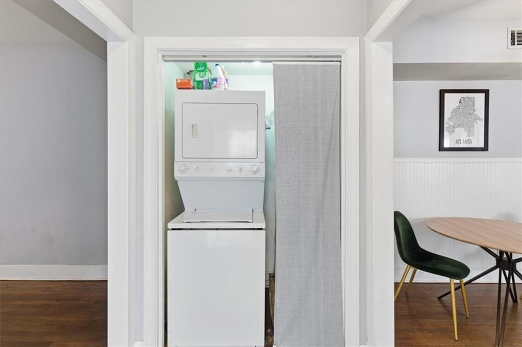 Welcome to your stylish city retreat in the vibrant heart of Midtown Atlanta! This well-designed 1-bedroom, 1-bathroom condo is the perfect blend of comfort, convenience, and city energy. Located in the vibrant heart of downtown Atlanta, you'll be just steps away from Ponce City Market, the Atlanta Beltline, Midtown and Piedmont Park. Step inside to find an open-concept layout with large windows that flood the space with natural light. The living area flows seamlessly into a contemporary kitchen. Walk through the beautiful french doors into the comfortably sized bedroom with ample closet space. Enjoy the convenience of an in-home washer and dryer, a private storage unit, and an assigned parking space in a secured, gated area. Perfect for first-time buyers, students, professionals, or anyone looking for a low-maintenance lifestyle in one of Atlanta’s most dynamic neighborhoods.