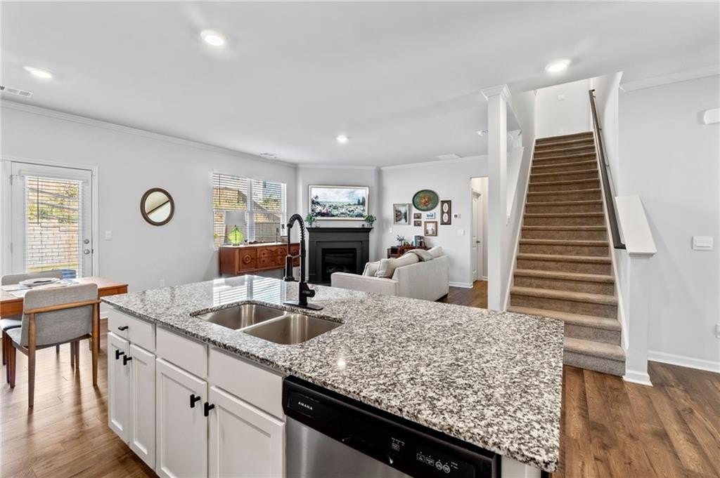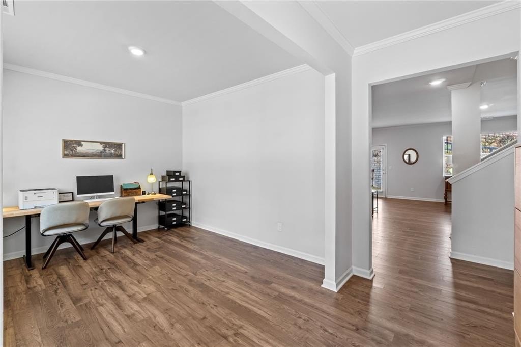 Welcome to this beautifully upgraded 5BR/3BA home with 2,822 sq. ft. of thoughtfully designed living space. The bright foyer opens to a dedicated office framed by the home’s custom atrium cabinets, while a convenient guest or in-law suite on the main level provides both comfort and privacy. The open-concept kitchen seamlessly connects to the spacious living room, creating an inviting layout ideal for everyday living and entertaining.