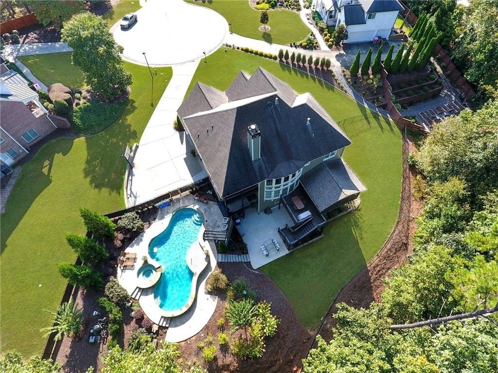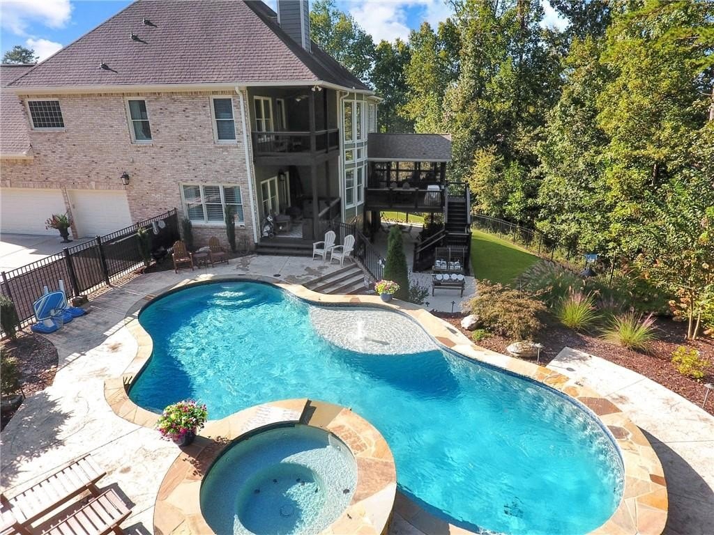 Tucked away on a peaceful cul-de-sac, this meticulously maintained 3-sides brick home stands out with its timeless curb appeal, inviting front porch, and incredible outdoor oasis. Step inside to rich hardwood floors, soaring ceilings, and walls of windows that fill the home with natural light. The main level offers a private office—perfect for working from home—and an elegant dining room ideal for hosting family and friends. At the heart of the home, the updated kitchen impresses with quartz countertops, high-end stainless steel appliances, and an extended island that opens seamlessly to the two-story great room. It’s the kind of space that makes both everyday living and entertaining feel effortless. Upstairs, the spacious primary suite is a true retreat with a spa-inspired bath, soaking tub, oversized glass shower, dual vanities, and a large walk-in closet. Three additional bedrooms—one with a private ensuite and two sharing a Jack-and-Jill bath—offer comfort and flexibility for everyone. Also upstairs you'll find the laundry room. The fully finished basement is designed for fun and function with a game room, full kitchen, bedroom suite, ample storage, and the best home theater on the market—complete with stadium seating. Step outside and enjoy your own private backyard oasis with a sparkling saltwater pool, waterfall feature, oversized hot tub, screened-in deck, and side porch. A tankless water heater, 3 car side-entry garage and thoughtful updates throughout make this home as efficient as it is beautiful. Located in Ashebrooke, one of the area’s most vibrant and social communities, known for holiday celebrations, pool parties, tennis leagues, and neighborhood gatherings. Just minutes from Big Creek Greenway, Cumming City Center, GA 400, shopping, dining, and top-rated West Forsyth schools. More than a house—this is a place where life slows down, laughter comes easily, and memories are made to last.