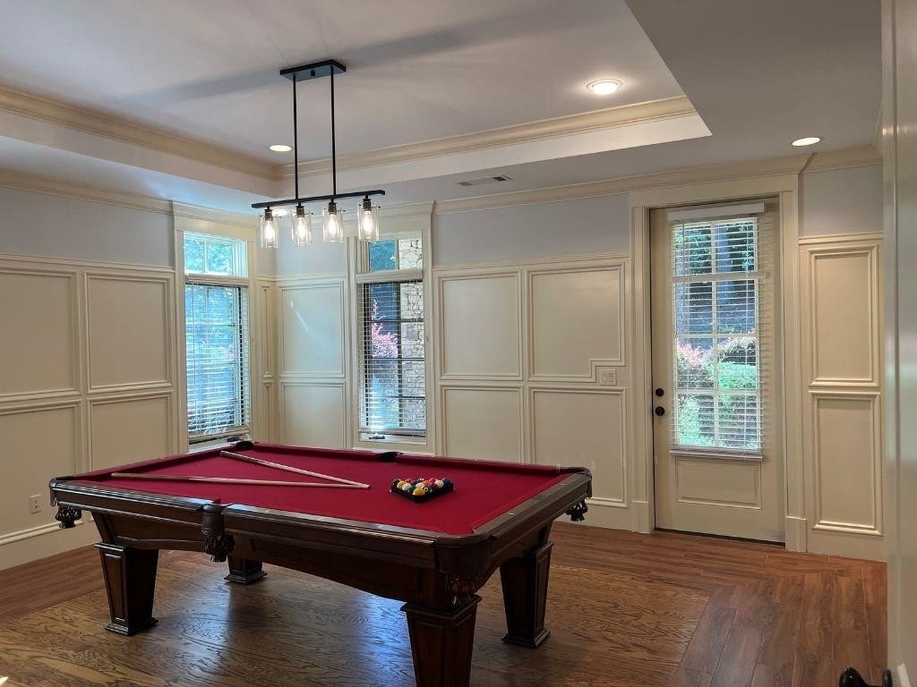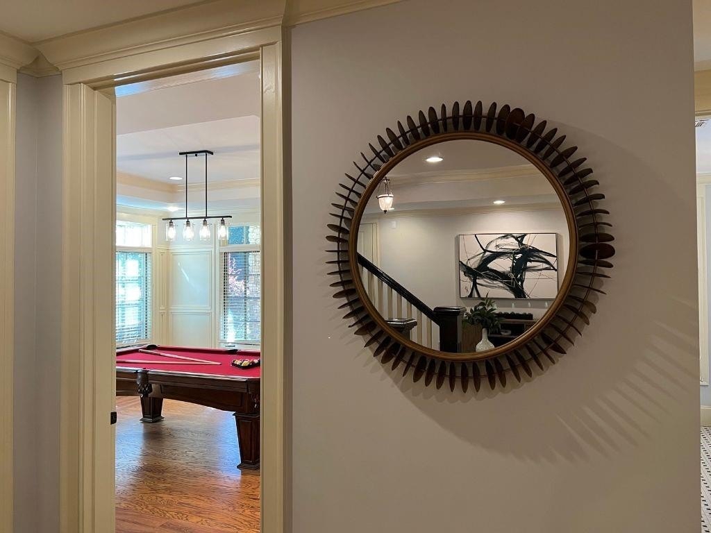 The finished daylight terrace level expands the living space with a billiards/game room, additional living area, and two bedrooms that can double as guest quarters, a gym, or creative space.