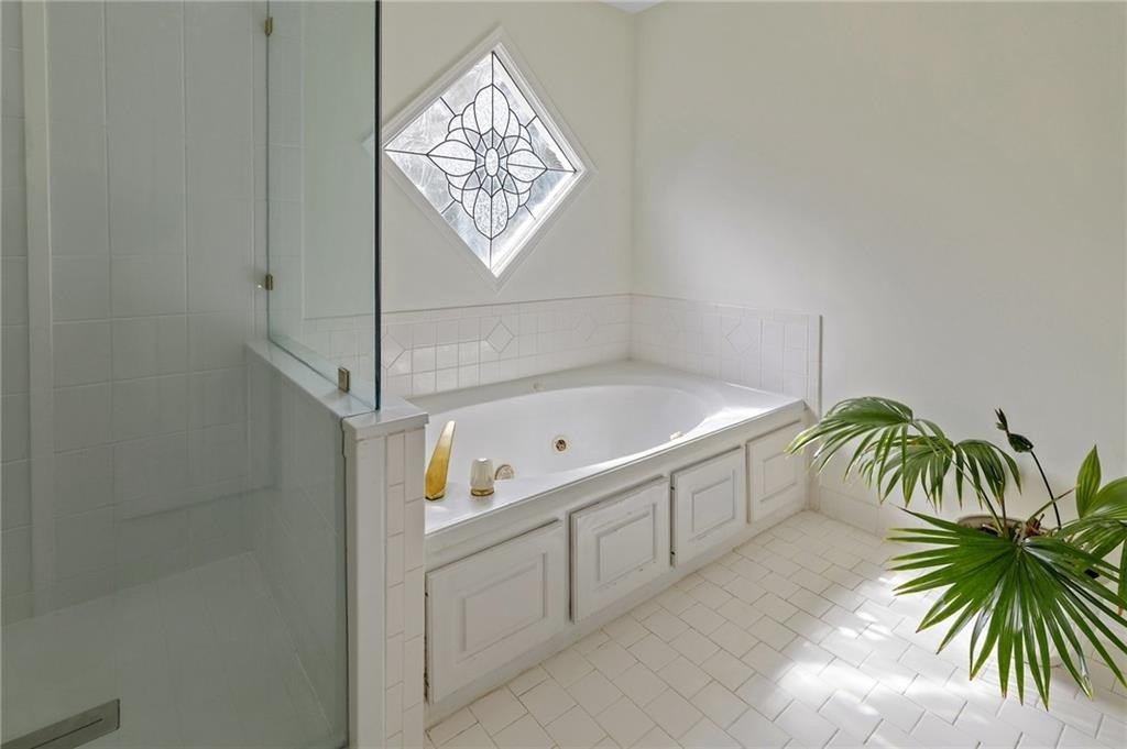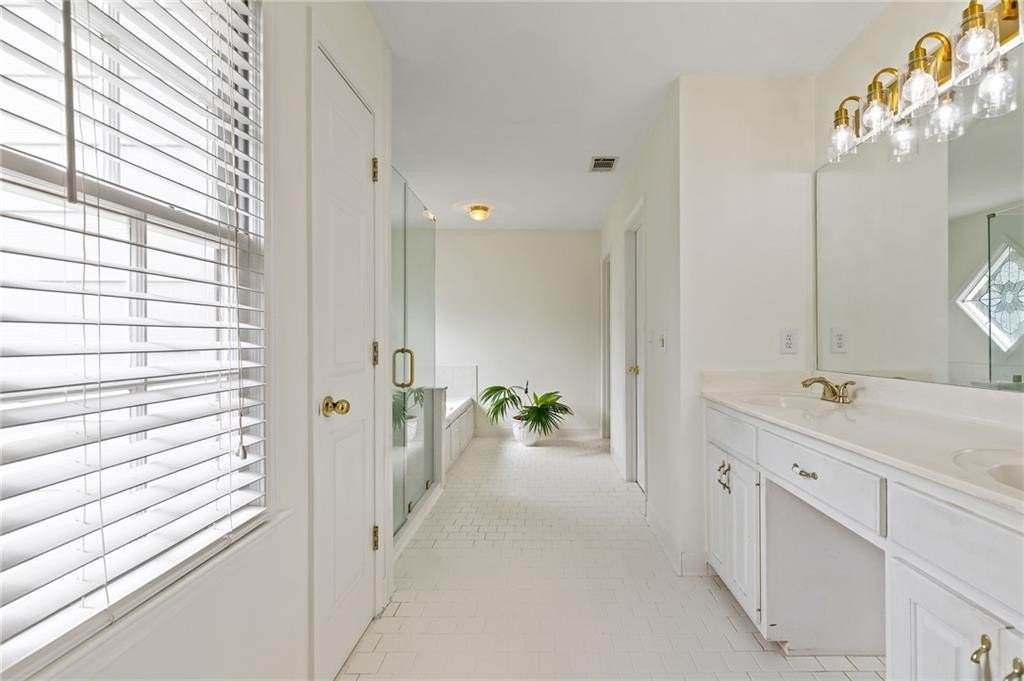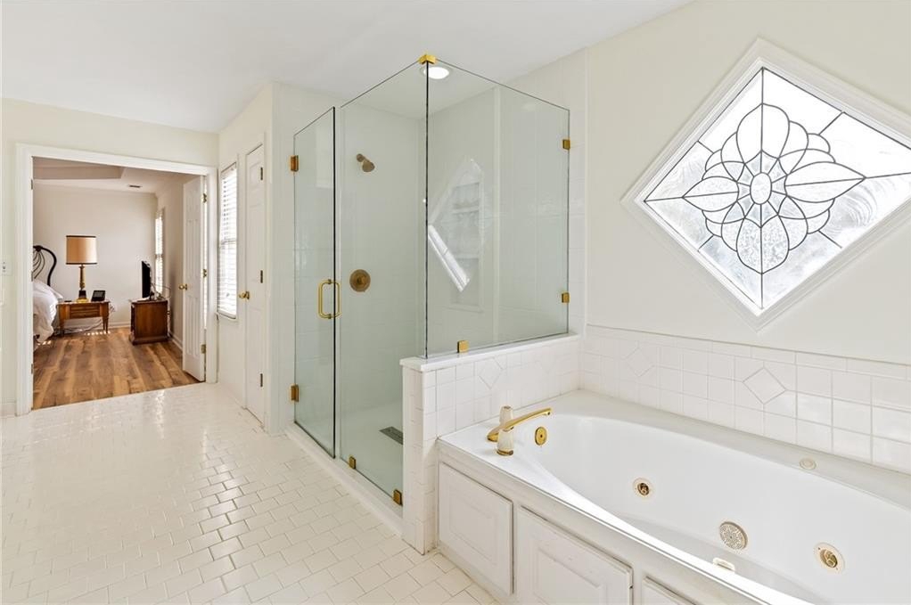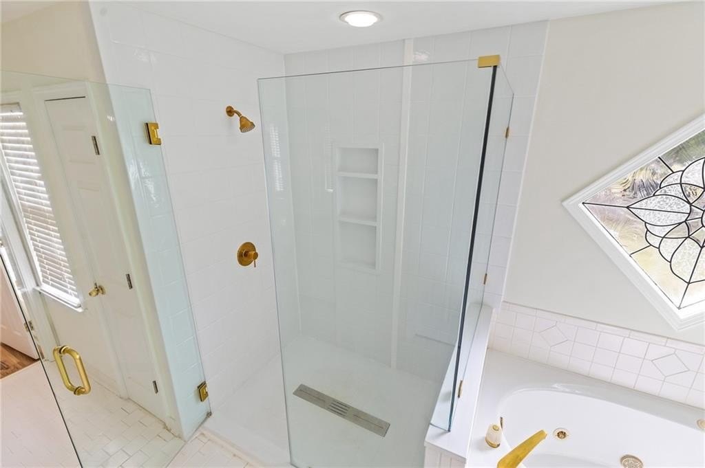 Upstairs, the primary suite has been updated with a frameless glass shower and stylish tile finishes, while the shared bath also offers a fresh, modern look.