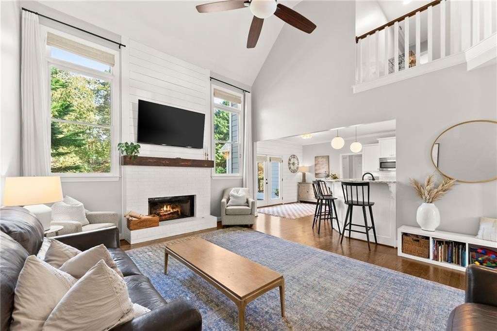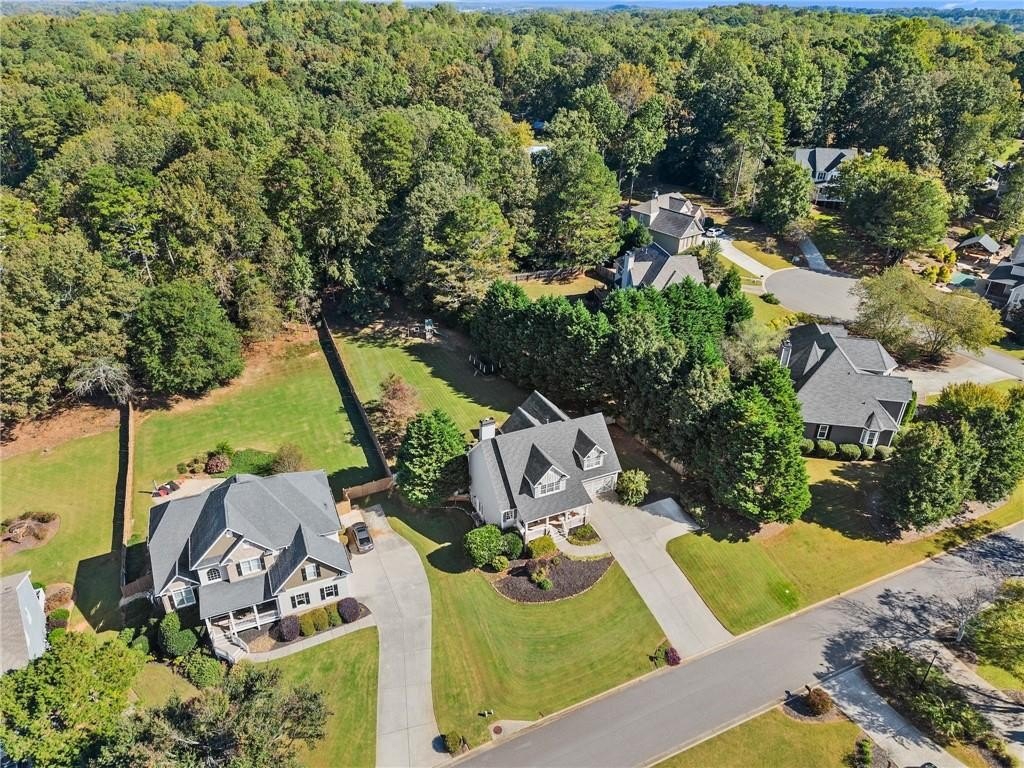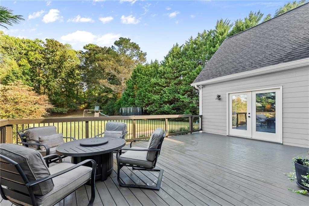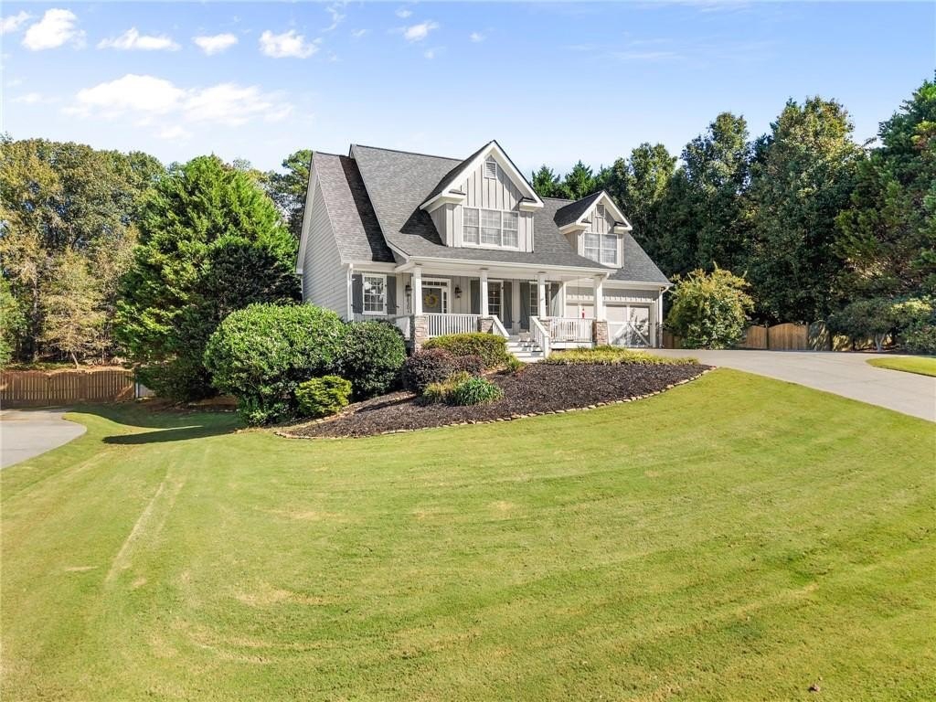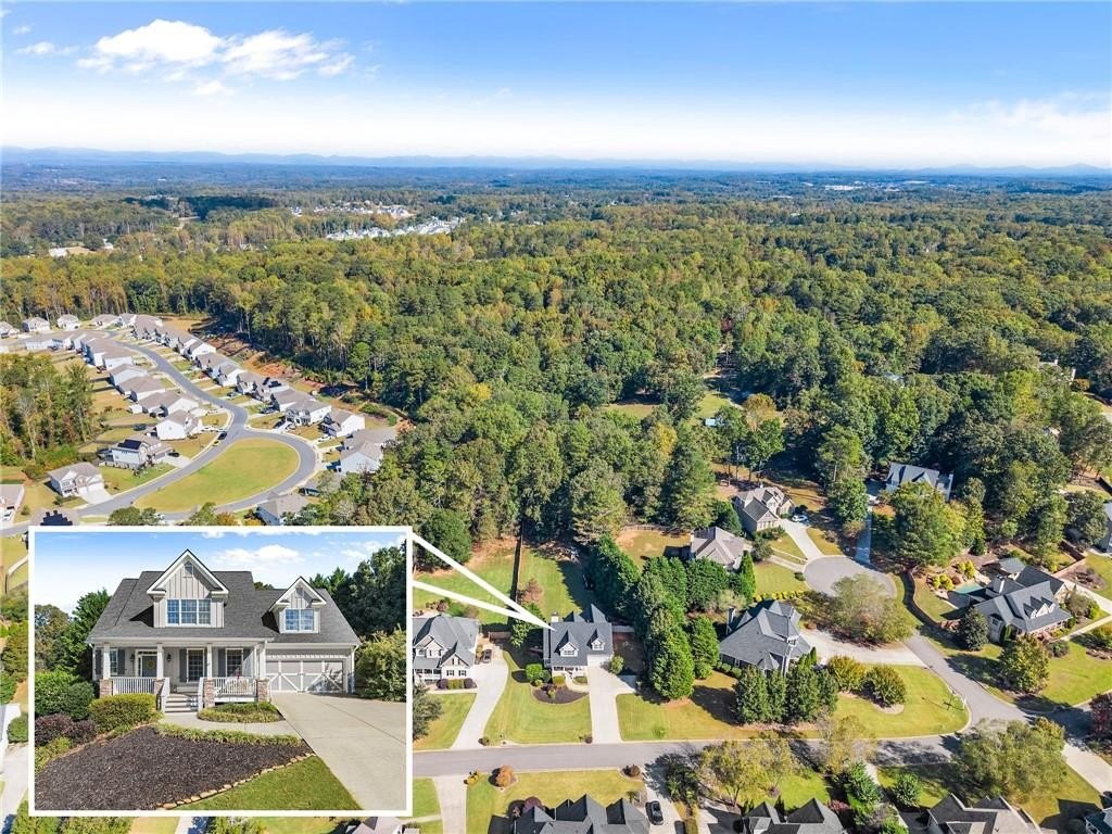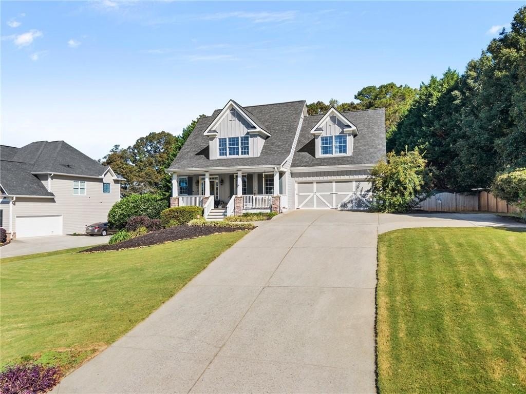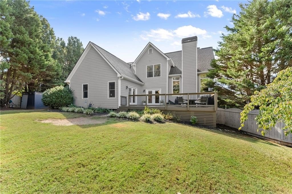 From the moment you step inside, you'll be captivated by the sun-drenched, open-concept layout. The soaring vaulted ceilings in the family room create a sense of grandeur, while shiplap accent walls and gleaming hardwood floors add a touch of modern farmhouse charm. The heart of the home is the beautiful kitchen, featuring modern appliances that flows effortlessly into the great room. Picture yourself cozying up by the fireplace on cool evenings or hosting memorable gatherings with friends and family. Upstairs, three additional spacious bedrooms share a convenient Jack & Jill bathroom, providing plenty of space for family and guests. The finished terrace level offers incredible flexibility—a private guest suite with a bedroom and full bath, plus a versatile flex space perfect for a home theater, gym, or remote office. Your living space extends outdoors to an oversized back deck, the ideal spot for summer barbecues and relaxing afternoons overlooking your peaceful, fully-fenced backyard. Situated in a prime location near top-rated Forsyth County schools, this home offers unparalleled access to the best of the area. Enjoy effortless shopping sprees and find your favorite brands at the North Georgia Premium Outlets along with a world of dining, entertainment, and everyday conveniences, all within a short drive! This home is the complete package. Schedule your private tour today and prepare to fall in love!