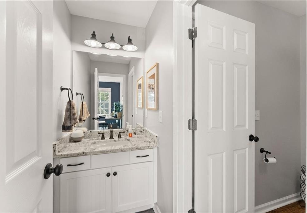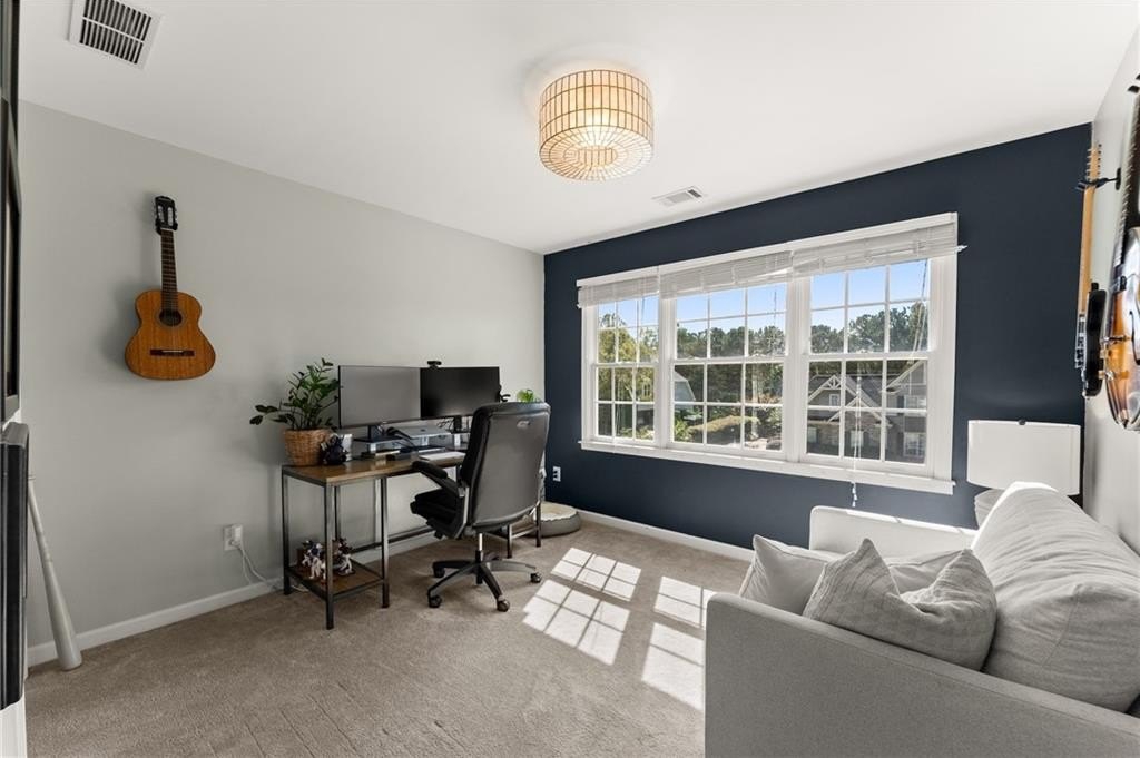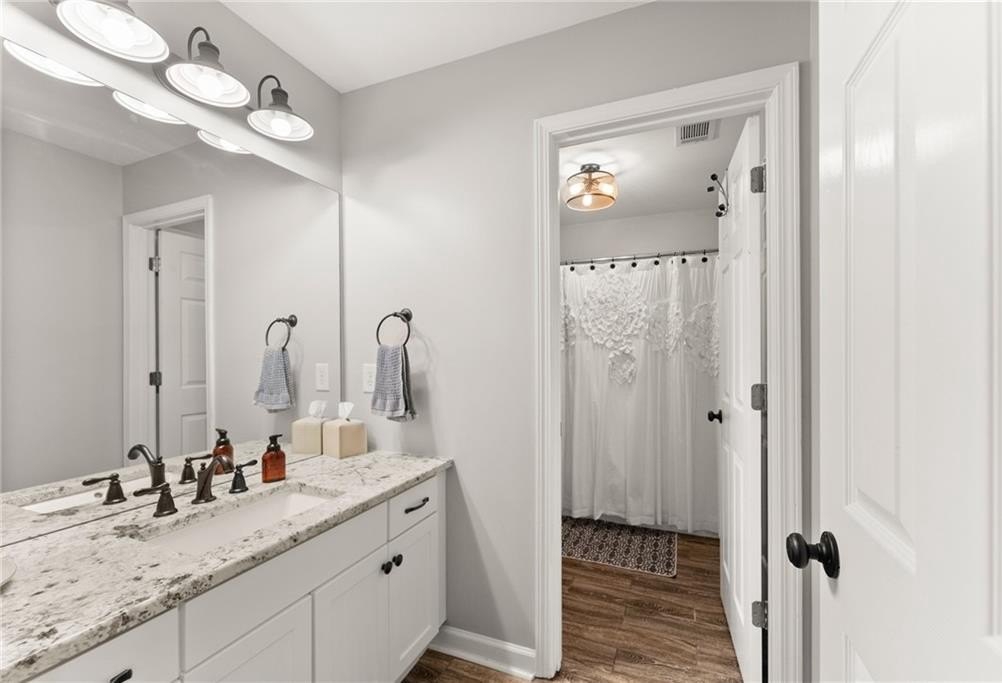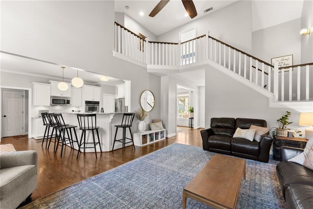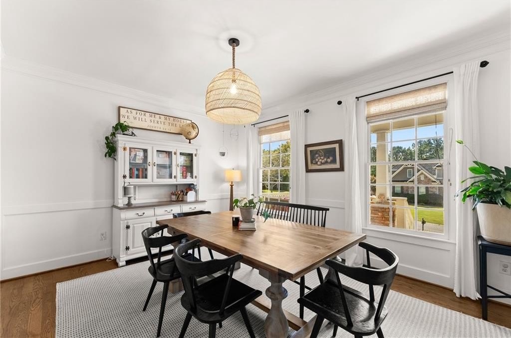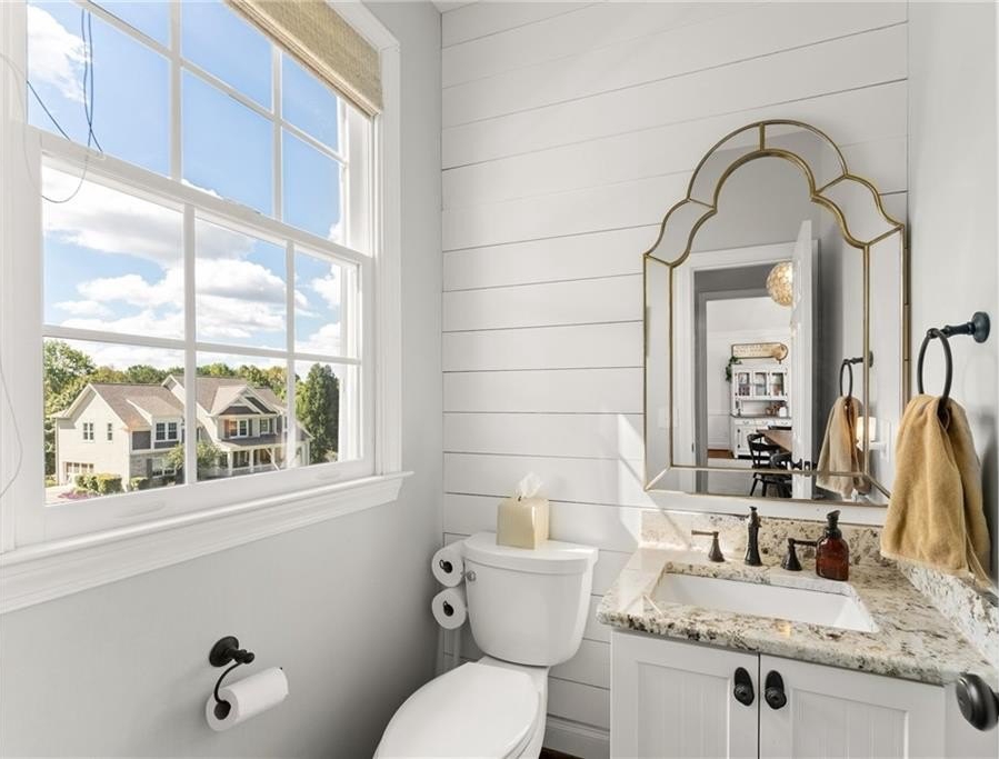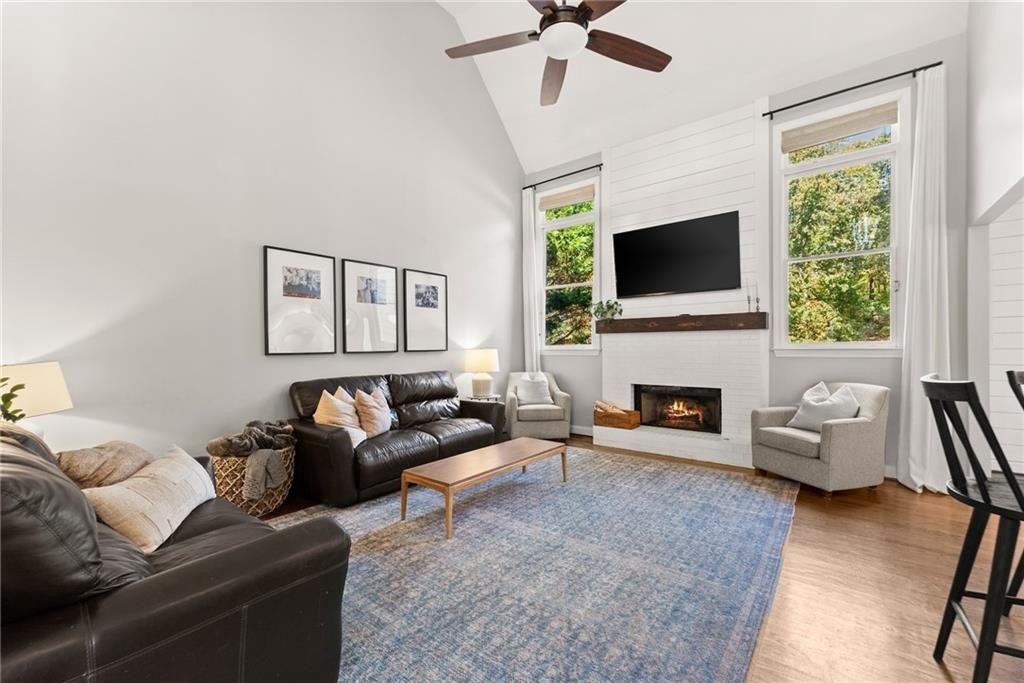 From the moment you step inside, you'll be captivated by the sun-drenched, open-concept layout. The soaring vaulted ceilings in the family room create a sense of grandeur, while shiplap accent walls and gleaming hardwood floors add a touch of modern farmhouse charm. The heart of the home is the beautiful kitchen, featuring modern appliances that flows effortlessly into the great room. Picture yourself cozying up by the fireplace on cool evenings or hosting memorable gatherings with friends and family. Upstairs, three additional spacious bedrooms share a convenient Jack & Jill bathroom, providing plenty of space for family and guests. The finished terrace level offers incredible flexibility—a private guest suite with a bedroom and full bath, plus a versatile flex space perfect for a home theater, gym, or remote office. Your living space extends outdoors to an oversized back deck, the ideal spot for summer barbecues and relaxing afternoons overlooking your peaceful, fully-fenced backyard. Situated in a prime location near top-rated Forsyth County schools, this home offers unparalleled access to the best of the area. Enjoy effortless shopping sprees and find your favorite brands at the North Georgia Premium Outlets along with a world of dining, entertainment, and everyday conveniences, all within a short drive! This home is the complete package. Schedule your private tour today and prepare to fall in love!
