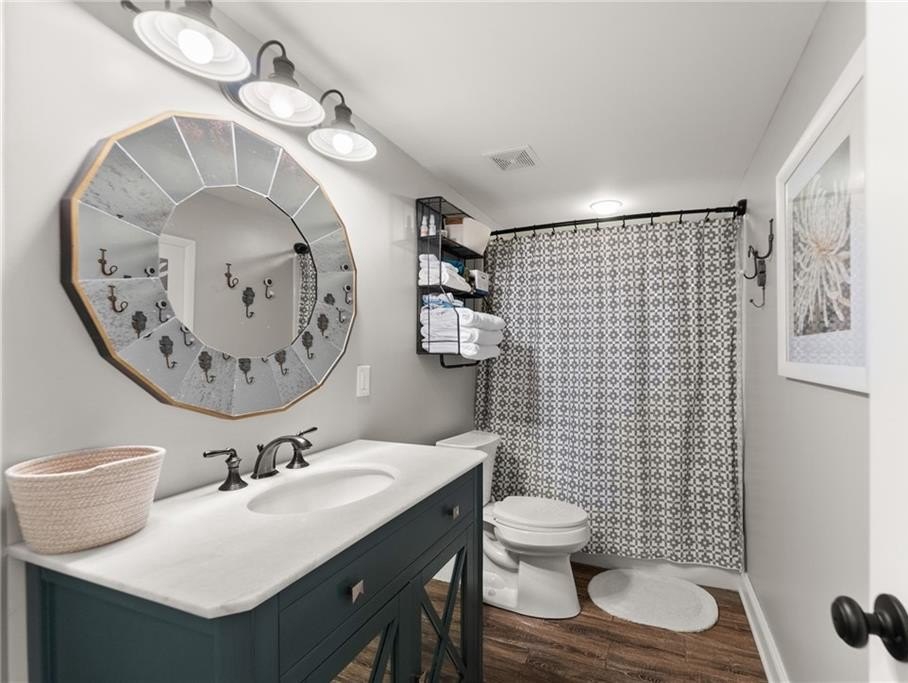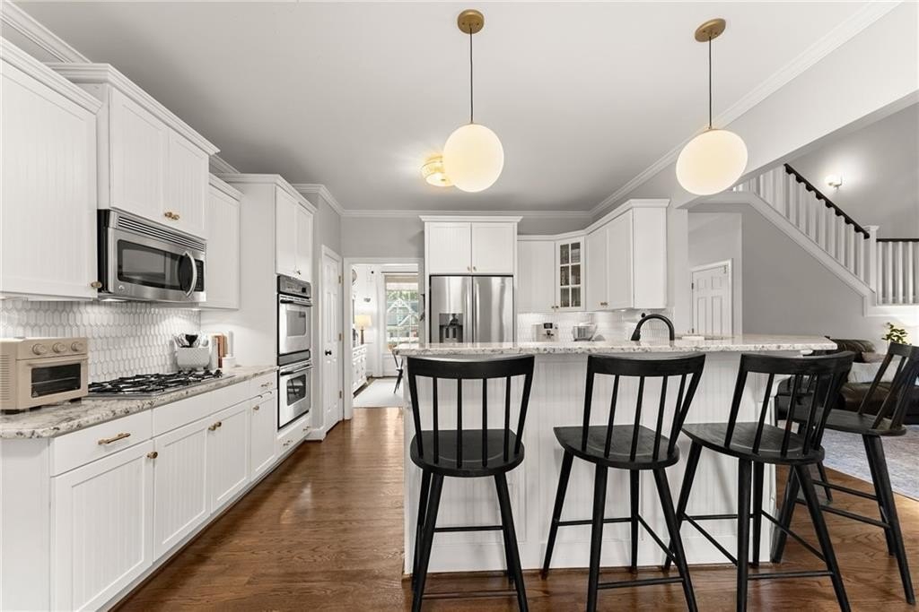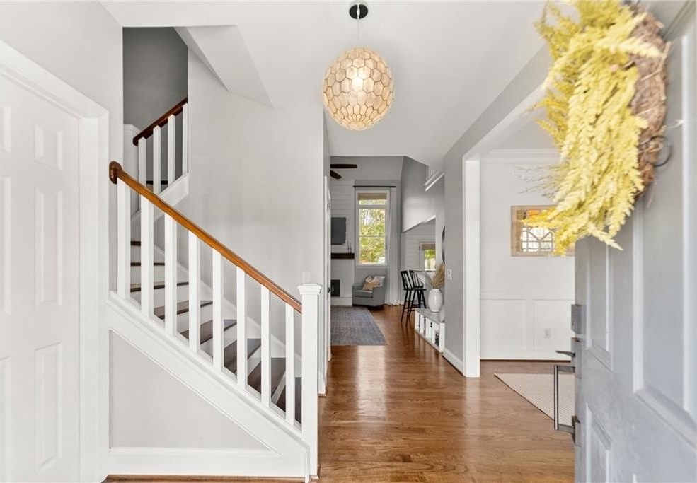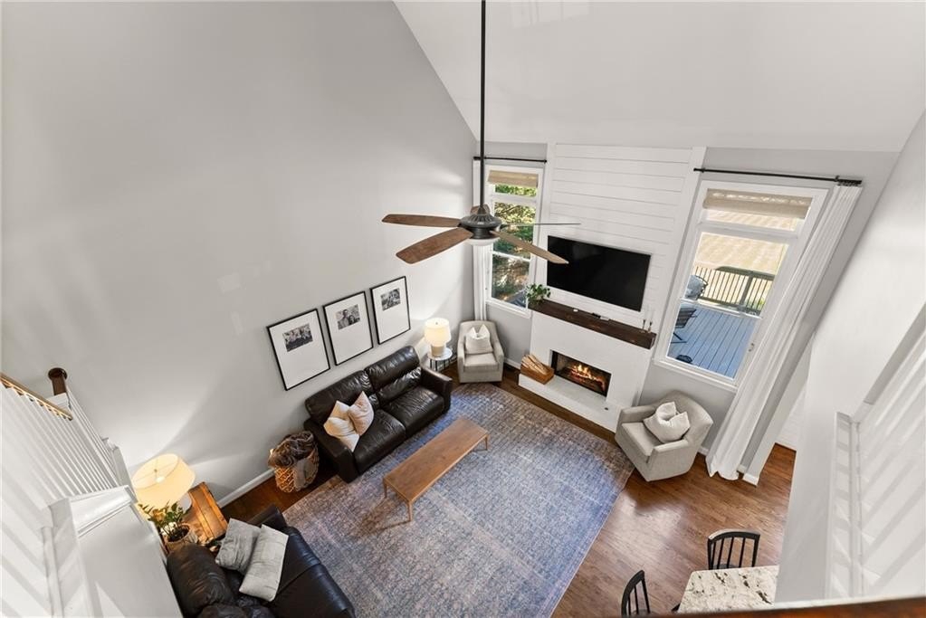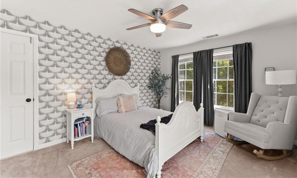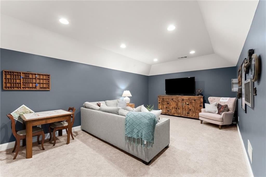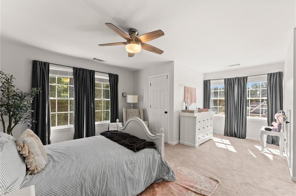 From the moment you step inside, you'll be captivated by the sun-drenched, open-concept layout. The soaring vaulted ceilings in the family room create a sense of grandeur, while shiplap accent walls and gleaming hardwood floors add a touch of modern farmhouse charm. The heart of the home is the beautiful kitchen, featuring modern appliances that flows effortlessly into the great room. Picture yourself cozying up by the fireplace on cool evenings or hosting memorable gatherings with friends and family. Upstairs, three additional spacious bedrooms share a convenient Jack & Jill bathroom, providing plenty of space for family and guests. The finished terrace level offers incredible flexibility—a private guest suite with a bedroom and full bath, plus a versatile flex space perfect for a home theater, gym, or remote office. Your living space extends outdoors to an oversized back deck, the ideal spot for summer barbecues and relaxing afternoons overlooking your peaceful, fully-fenced backyard. Situated in a prime location near top-rated Forsyth County schools, this home offers unparalleled access to the best of the area. Enjoy effortless shopping sprees and find your favorite brands at the North Georgia Premium Outlets along with a world of dining, entertainment, and everyday conveniences, all within a short drive! This home is the complete package. Schedule your private tour today and prepare to fall in love!