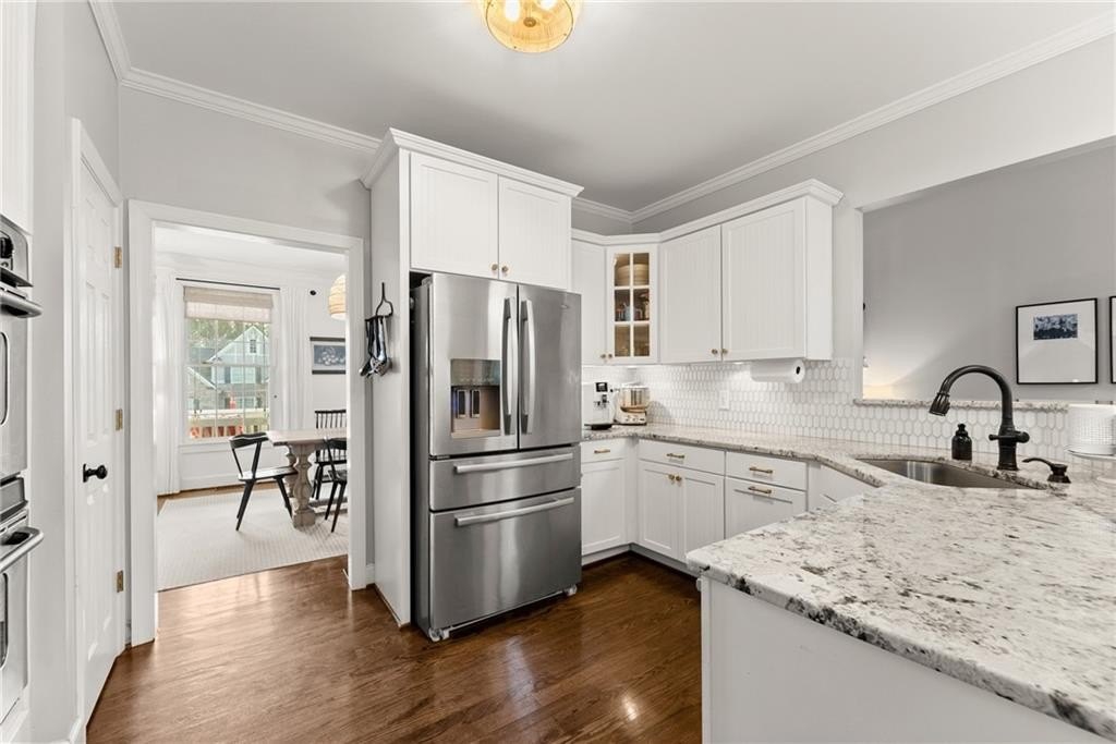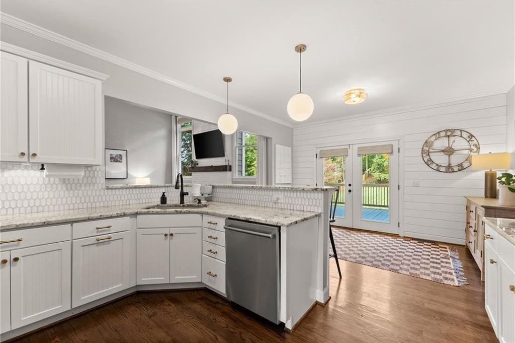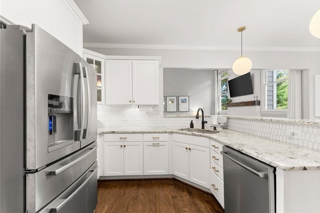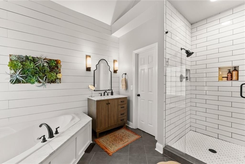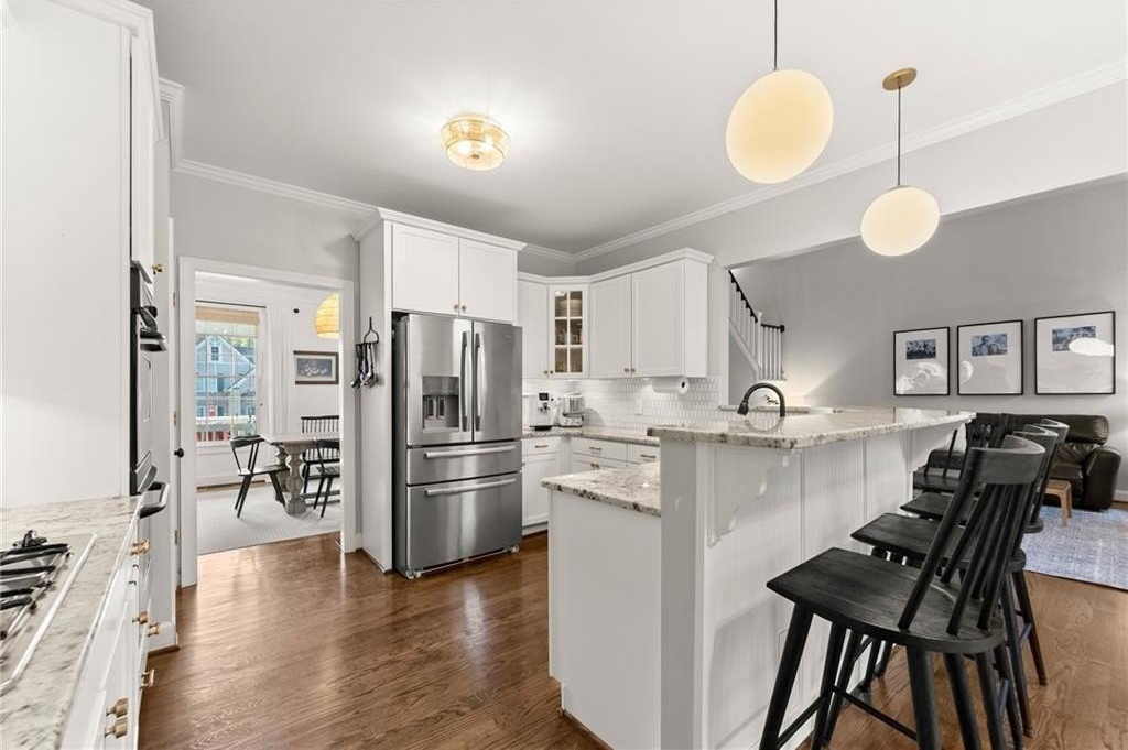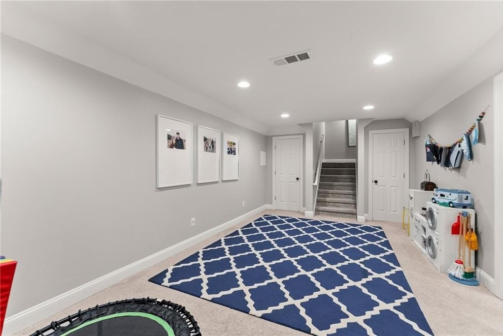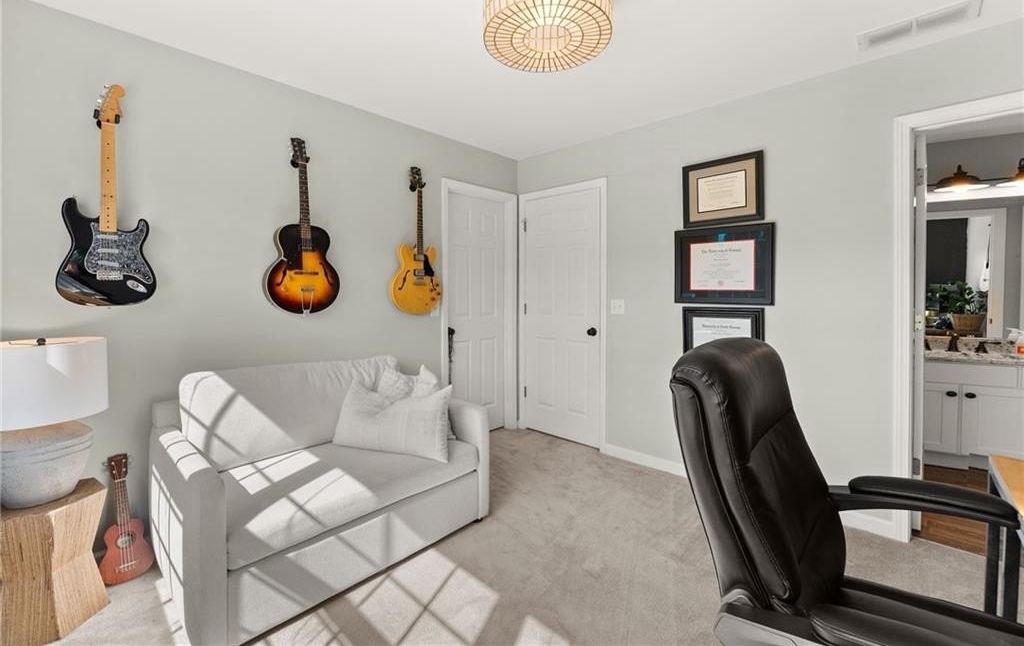 From the moment you step inside, you'll be captivated by the sun-drenched, open-concept layout. The soaring vaulted ceilings in the family room create a sense of grandeur, while shiplap accent walls and gleaming hardwood floors add a touch of modern farmhouse charm. The heart of the home is the beautiful kitchen, featuring modern appliances that flows effortlessly into the great room. Picture yourself cozying up by the fireplace on cool evenings or hosting memorable gatherings with friends and family. Upstairs, three additional spacious bedrooms share a convenient Jack & Jill bathroom, providing plenty of space for family and guests. The finished terrace level offers incredible flexibility—a private guest suite with a bedroom and full bath, plus a versatile flex space perfect for a home theater, gym, or remote office. Your living space extends outdoors to an oversized back deck, the ideal spot for summer barbecues and relaxing afternoons overlooking your peaceful, fully-fenced backyard. Situated in a prime location near top-rated Forsyth County schools, this home offers unparalleled access to the best of the area. Enjoy effortless shopping sprees and find your favorite brands at the North Georgia Premium Outlets along with a world of dining, entertainment, and everyday conveniences, all within a short drive! This home is the complete package. Schedule your private tour today and prepare to fall in love!