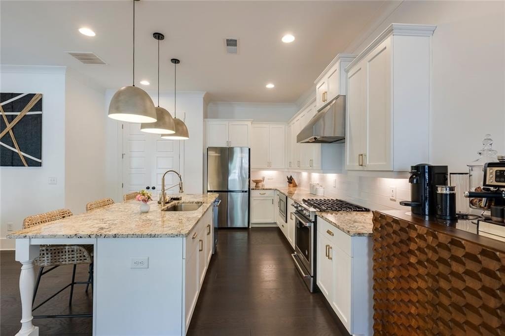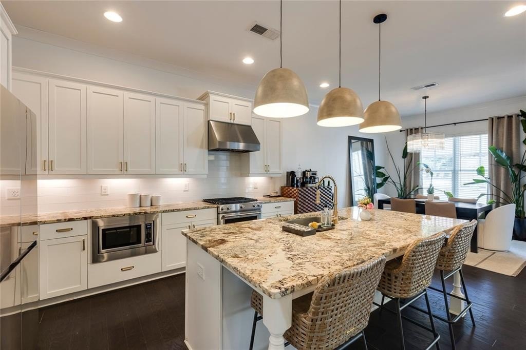 Nestled at 1954 Westside Boulevard NW, Atlanta, GA, this residential property presents an attractive opportunity to own a home in great condition. The living room stands as an inviting space, featuring built-in shelves perfect for showcasing treasured items, while crown molding adds a touch of sophisticated elegance; the fireplace serves as a warm and welcoming focal point, ideal for gatherings. In the kitchen, culinary dreams become reality with a high-end range oven ready to assist in the creation of culinary masterpieces, while stone countertops offer both beauty and durability; the large kitchen island provides ample space for meal preparation, and the shaker cabinets, coupled with a stylish backsplash and crown molding, create a visually appealing aesthetic, and the kitchen bar is great for entertaining. This home offers a blend of indoor and outdoor living with its sunroom and balcony, allowing residents to enjoy the beauty of the surroundings from the comfort of their own home; the open floor plan promotes a sense of spaciousness and connectivity. There are four bedrooms and three and a half bathrooms. With 2862 square feet of living area, this home, constructed in 2020, also features a porch. Westside Station offers a warm, community-oriented atmosphere featuring amenities like a clubhouse, playground, and pool. The active HOA hosts engaging neighborhood events. Enjoy the charm of true neighborhood living with convenient access to Westside Village, Publix at Moores Mill, and soon, a direct connection to the BeltLine and Silver Comet Trail via the Whetstone Creek Trail. This Atlanta property offers a wonderful opportunity to experience a comfortable and stylish Intown lifestyle.