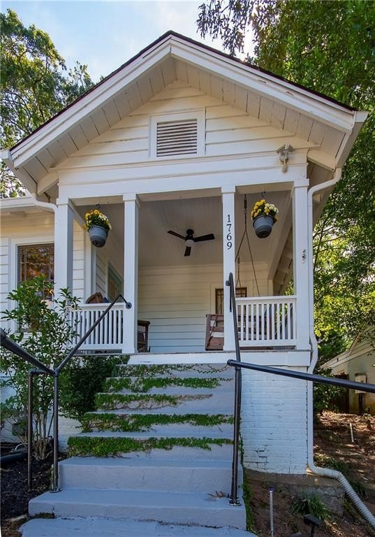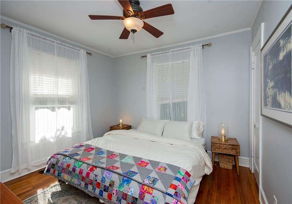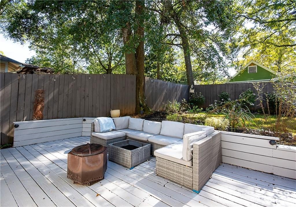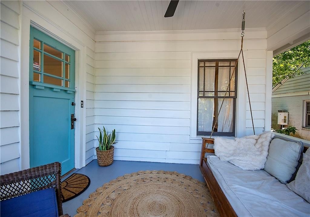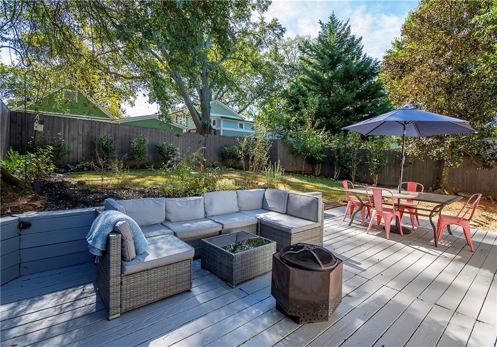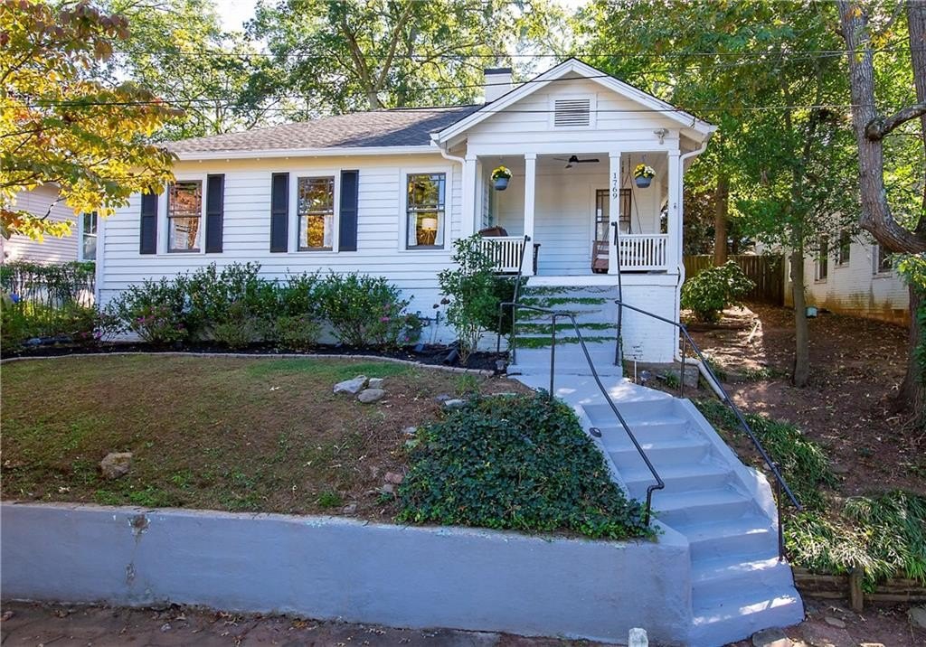 Discover the epitome of charm in this delightful 2-bedroom, 2-bathroom cottage. Nestled in a sought-after Lake Claire, renowned for its top-rated schools and vibrant community spirit. Perfect for those who appreciate historic allure with modern conveniences, this home boasts a spacious renovated kitchen complete with sleek stainless steel appliances, making it a culinary enthusiast's dream. Step inside to be greeted by gleaming hardwood floors that run throughout the home, setting a warm and inviting tone. The living room features a decorative fireplace and is open to the dining room. The dining room is accented by a stylish chandelier and flows into the kitchen. The den is a highlight, featuring a stunning vaulted ceiling with skylight and additional storage. The amazing natural light shines throughout the property further enhancing the feeling of spaciousness. The owners suite features a spacious bathroom with dressing area and new vanity. The 2nd bedroom features a decorative fireplace. Efficiency meets style as the home is equipped with a 7-year-old roof, a furnace that's only 2 years old, and a water heater installed just last year. The oversized mudroom doubles as a flex room, offering versatility to fit your lifestyle needs. Use it for hobbies, studying, or additional storage. The outdoors is just as impressive, with a large deck overlooking a fenced, private backyard, creating a tranquil retreat for quiet mornings or lively gatherings. The covered front porch, adorned with a cozy bed swing, invites you to enjoy lazy afternoons in the comfort of your home. Off street parking is easy with access from the alleyway off Arizona Ave, providing ample space for three cars and stepless entry from the deck into the residence, ensuring convenience is never compromised. Embrace the Intown living experience with nearby restaurants, shops, and parks, including the Lake Claire Landtrust and Candler and Lake Claire parks, all just moments away.This enchanting home is more than just a place to live – it's a lifestyle waiting to be cherished.