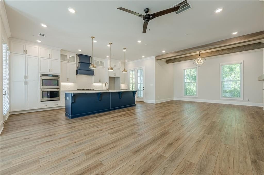 Experience a new level of luxury and convenience in this meticulously designed end-unit brownstone. From the moment you step inside, you'll be greeted by an open-concept layout spanning three spacious stories. The heart of the home is the chef's kitchen, featuring stunning Cambria countertops, upgraded tile back-splash and a large central island. This area flows seamlessly into the family room making the space perfect for both daily living and entertaining. The living area boasts wooden beams accenting the ceiling and a shiplap fireplace with wooden mantle. Retreat to the expansive owner's suite, a private sanctuary complete with a luxurious en-suite bathroom, a free-standing tub, and its own private deck. The shower is a dream with a regular shower head, handheld sprayer and rainwater faucet overhead. The luxurious soaking tub includes a hand held sprayer as well. The primary bedroom's generously sized walk-in closet is a dream come true, offering custom shelving and drawers to keep your wardrobe perfectly organized. With four bedrooms and three-and-a-half bathrooms, there's lots of space for family and guests. Full terrace level with large bedroom, full bath and extra storage. Complete with terrace level private back patio. Complete with a 2 car garage with overhead storage. This home offers plenty of options for outdoor relaxation with not one, but three covered decks, a terrace patio and a cozy fenced backyard area. Modern living is made easy with seamless Alexa smart home capabilities integrated throughout as well a complete security system. Take advantage of fantastic community amenities, spend your days relaxing at the pool and cabana, playing bocce ball, or gathering around the fire pit with neighbors. Located in a lively mixed-use development, you'll be steps away from the Maxwell's retail which includes Fairway Social for entertainment, and one of the best Thai, Sushi and Seafood Restaurants in the area...all steps away. For both keeping active and connectivity there is the Alpha Loop, leading to downtown Alpharetta and the Avalon, with an array of dining, entertainment and shopping options at your fingertips. This is more than a home—it's a lifestyle. Living at The Maxwell means you can leave the car at home and truly enjoy everything Alpharetta has to offer. If there's a "best places to live," "best places to raise a family," or "best community" list somewhere, there's every likelihood Alpharetta is on that list. Alpharetta is one of the most desirable places to live in Georgia and the nation. Come view this amazing townhome, it's what you've been looking for!