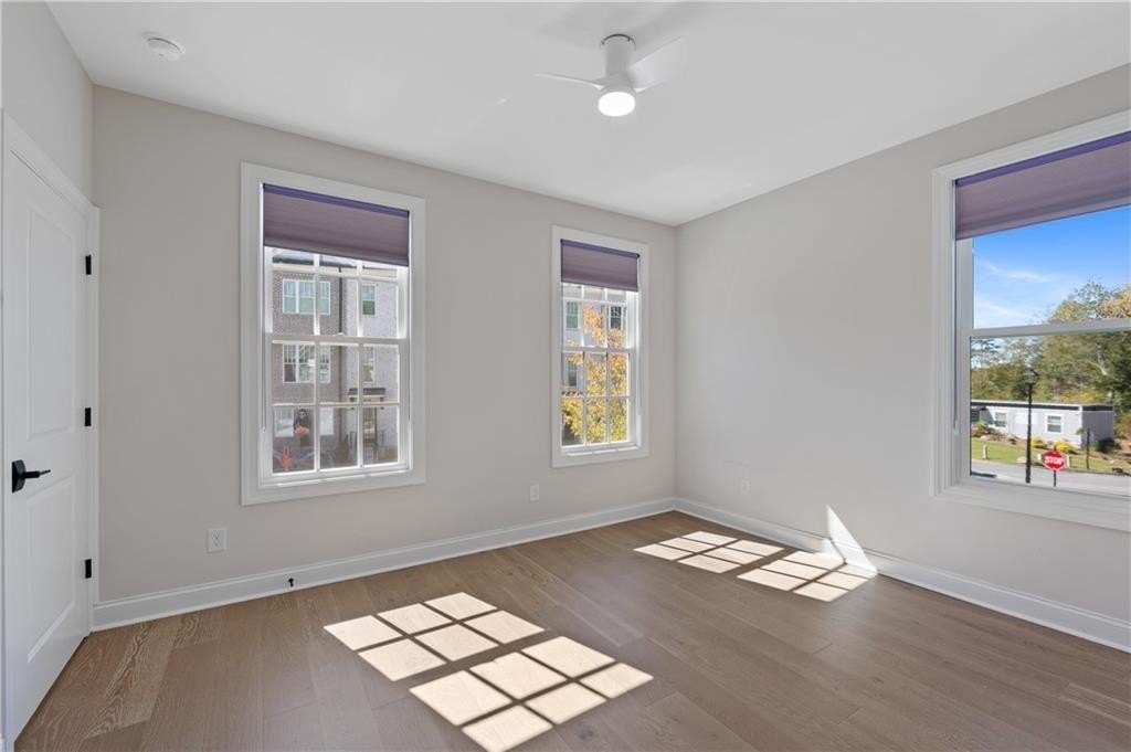 A generous third-floor bonus suite with a full bath offers endless versatility—ideal as a media room, guest retreat, or private home office. Step through the upgraded wall of sliding glass doors onto a serene covered porch with a ceiling fan, where you can relax and enjoy gentle breezes and fresh air—rain or shine. Beyond the porch, your private wooded backyard awaits—a peaceful retreat where nature and tranquility come together in perfect harmony, offering an oasis rarely found in townhome living.