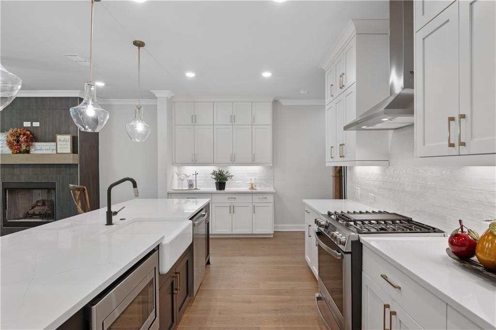 Sunlight pours through the open-concept design, filling the spacious living areas with a bright and uplifting atmosphere. The gourmet kitchen stands as the heart of the home, showcasing quartz countertops, upgraded cabinetry, and top-of-the-line GE Profile stainless-steel appliances—perfect for both everyday living and memorable gatherings.