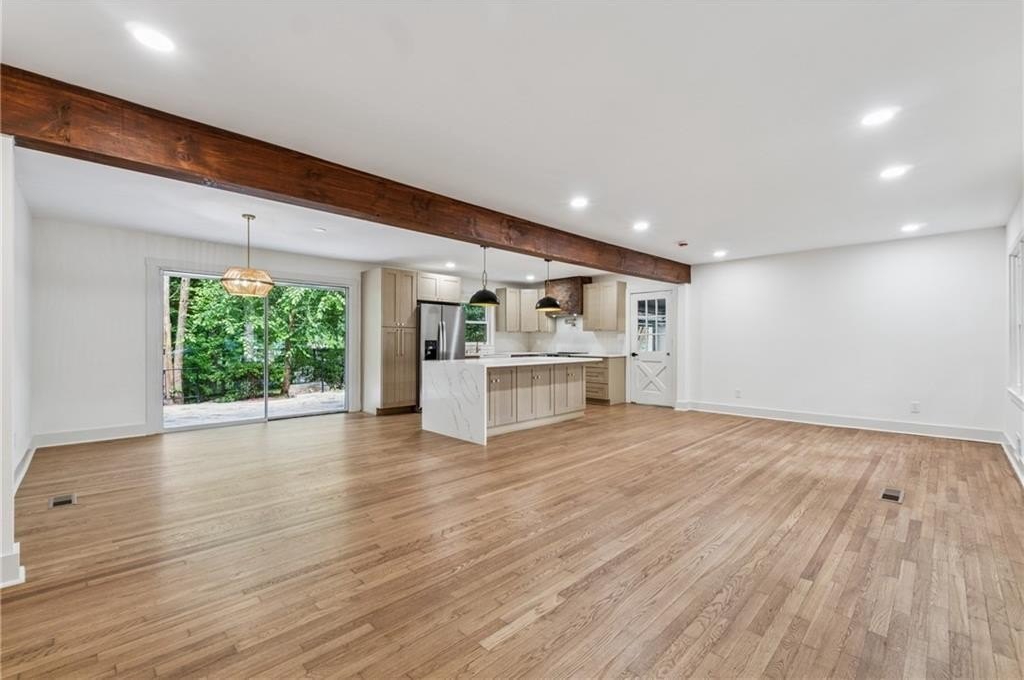 Step into this truly breathtaking, upgraded 3-bedroom, 2-bathroom ranch that blends timeless charm with modern sophistication. This stunning home boasts a thoughtfully designed open-concept layout, beautifully updated interiors, and incredible outdoor living space. Inside, you'll fall in love with the expansive great room featuring real hardwood floors throughout, recessed lighting, and abundant natural light. The heart of the home ip the show-stopping kitchen, equipped with brand-new appliances, quartz countertops, a spacious island, a built-in lazy suzy, and a pot filler faucet over the stove-perfect for the home chef. Stylish pendant lights, modern cabinetry, and a farmhouse sink add warm, custom touches that make this space one-of-a-kind. Both bathrooms are beautifully appointed with designer tile, high-end fixtures, and magazine-worthy finishes that feel like a luxury spa retreat. The freshly updated basement, featuring new flooring and paint, offers flexible space for a home gym, playroom, or man cave. All brand-new insulated windows come with a transferable lifetime warranty. Enjoy peace of mind with newly installed gutters that enhance both function and curb appeal. Conveniently located just minutes from downtown Atlanta, West Midtown, BeltLine access, and major landmarks like Mercedes-Benz Stadium-plus everyday essentials like Publix, Target, and a variety of shops and dining options right around the corner. Location, layout, and luxury-all in one.