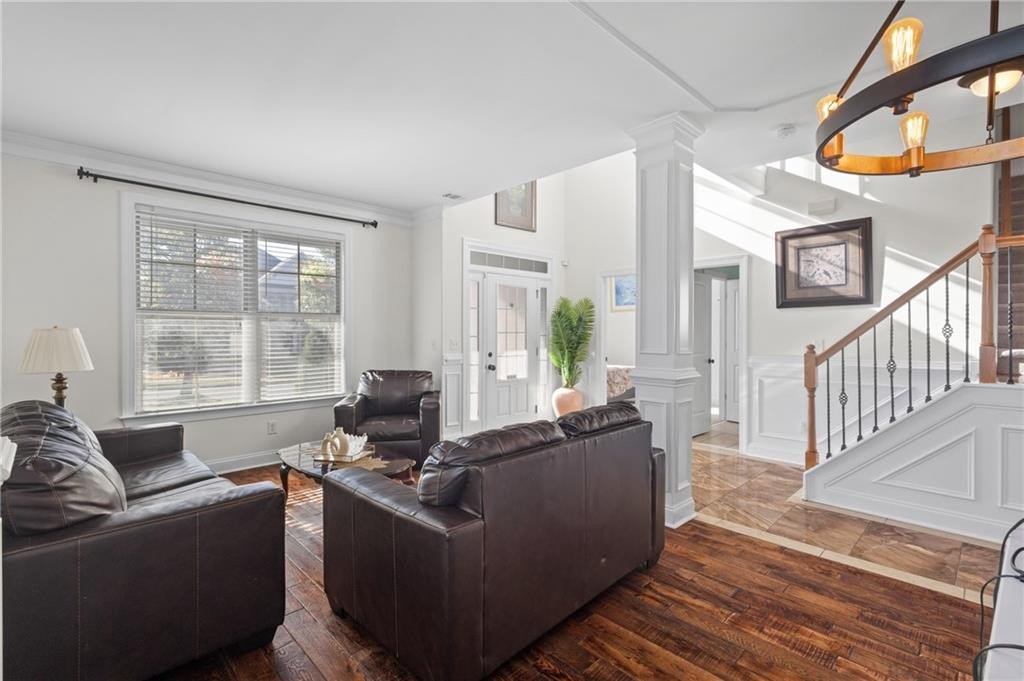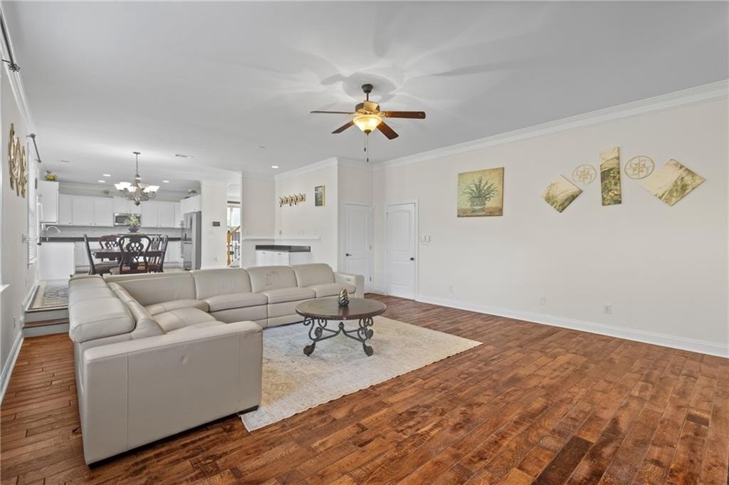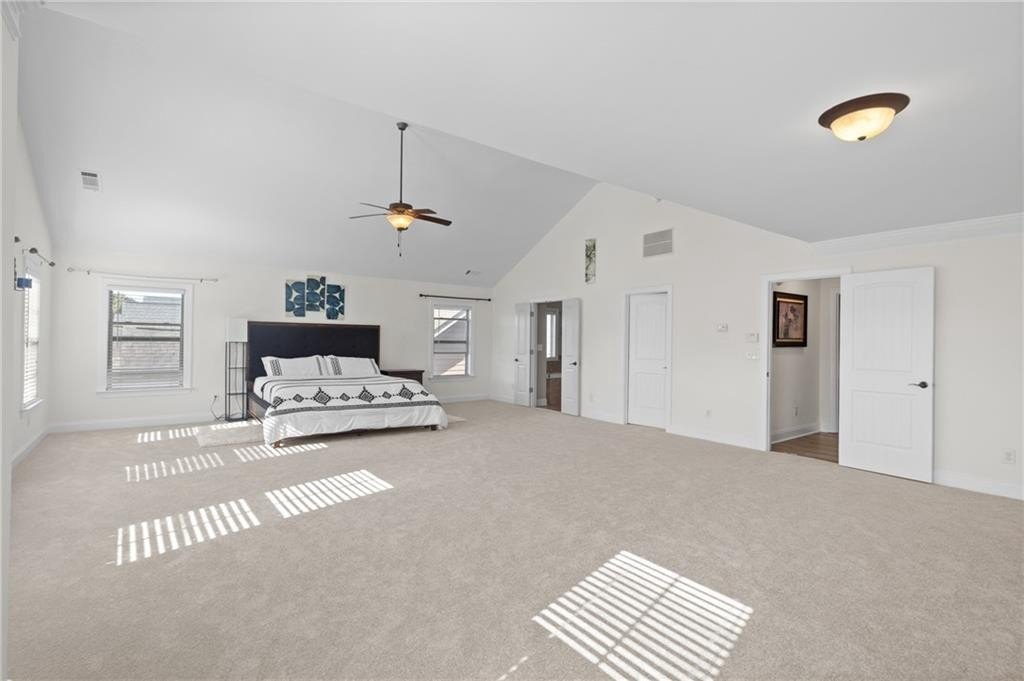 Welcome to this stunning 5-bedroom, 4-bath home filled with natural light. The property offers a level driveway with a 2-car garage and beautiful curb appeal. Stepping inside you'll be greeted by a two-story foyer that opens to a formal living and dining area. This versatile flex space can be customized to fit your lifestyle, perfect for a home office, playroom, or additional entertaining space. Hardwood floors and marble accents add elegance throughout the main level. The open-concept kitchen overlooks the family room and breakfast area, featuring white cabinetry, solid-surface countertops, a kitchen island, tile backsplash, and stainless steel appliances. The family room is the heart of the home with custom built-ins and a cozy fireplace. A guest suite with a full bath on the main level offers flexibility for overnight visitors or a private office. The dual-access staircase adds convenience with entry from both the foyer and kitchen. Upstairs, the oversized primary suite boasts vaulted ceilings, a sitting area, walk-in closet, double vanity, soaking tub, and separate tile shower. Spacious additional bedrooms and two full baths complete the upper level. The large, fenced backyard with solar lighting provides the perfect space for grilling, entertaining, or simply relaxing outdoors. Recent updates include: NEW fenced in backyard with solar lighting, NEW kitchen appliances (microwave, oven, and refrigerator), updated upstairs shared bathroom with a NEW toilet, and NEW Carpet on upper level. This home is located minutes from shopping, dining, Hwy 316, I-85, and zoned for the sought-after Archer High School district. Schedule your showing today!