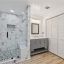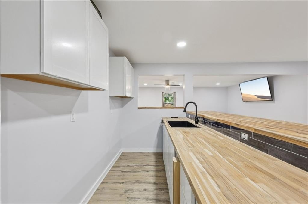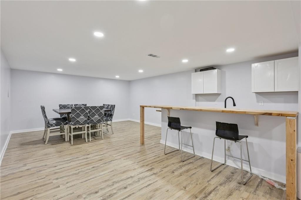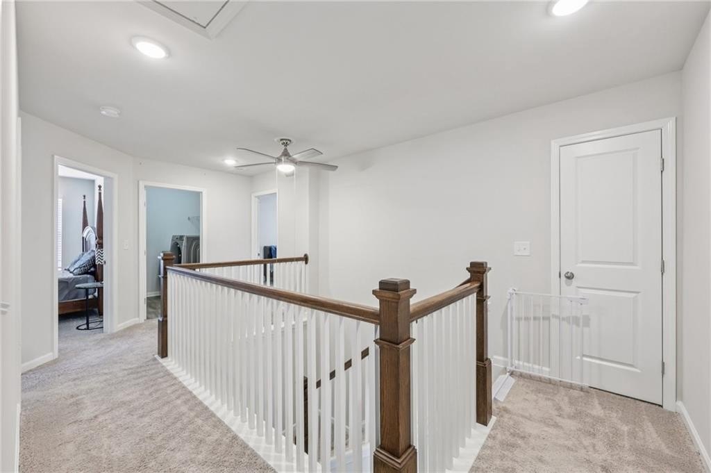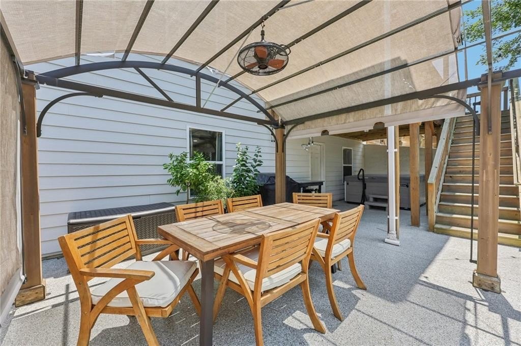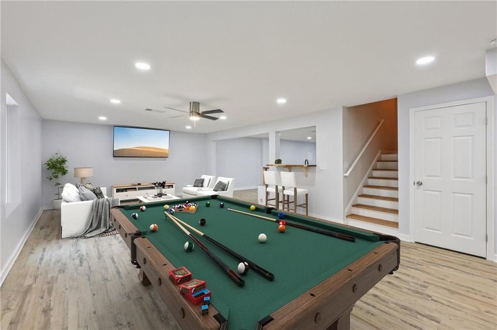 Southern Charm Meets Modern Comfort! This beautifully landscaped home welcomes you with a classic rocking-chair front porch. Inside, durable vinyl wood flooring flows throughout the main level. A stylish home office with sliding barn doors sits just off the entryway while columns and an arched entryway leads to a formal dining room. The bright, open-concept living room features a cozy fireplace and connects seamlessly to the on-trend kitchen with white cabinets, large island, stainless steel appliances, tile backsplash, and plenty of prep space. Upstairs, the oversized primary suite offers a tray ceiling, sitting area, luxurious en-suite with dual vanities, soaking tub, tiled shower, and walk-in closet. Two bedrooms share a Jack-and-Jill bath, while a fourth has its own private en-suite. The finished basement adds incredible versatility with a large open area, built-in bar with sink and dishwasher, plus a bedroom and full bath—ideal for guests or entertaining. Outside, enjoy a fully fenced backyard oasis with a 10x20 covered deck, 12x30 patio (partially covered), hot tub outlet, fire pit, garden space, and landscape lighting. Additional perks include a 2-car garage with overhead storage, extended 3-car parking pad, new hot water heater, and new basement AC. Book your tour today!