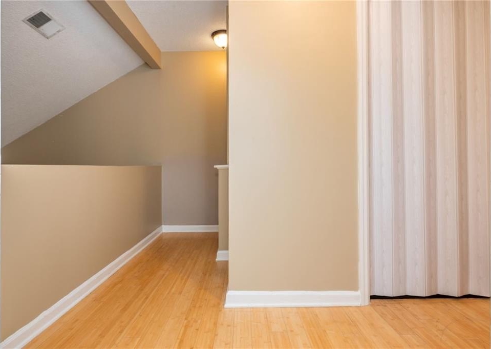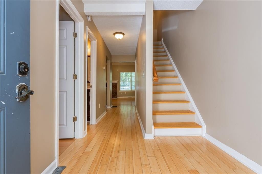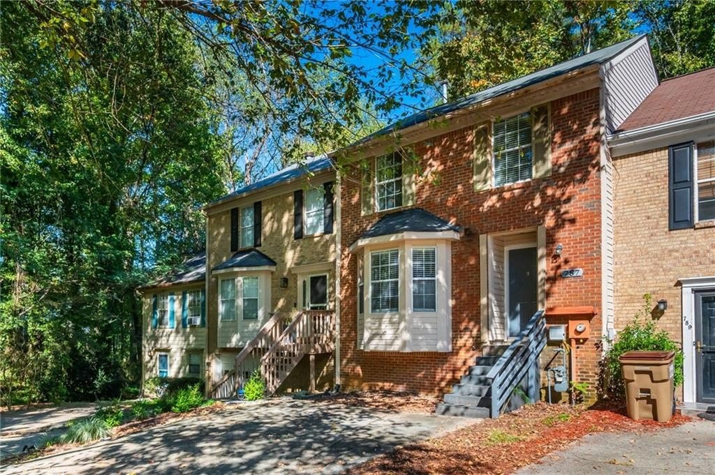 Welcome Home - terrific opportunity for first time home buyer, roommates, or landlord. This Town Home is conveniently located to 75, Express Lanes, KSU, Shopping and more! Master on Main with 2 additional Bedrooms and a shared Bathroom upstairs and Hardwoods throughout, up and down. Kitchen has Granite Counters, Gas Range and Breakfast Island and open to Family Room and Dining Area. Open Family Room and Dining Area has Wood Burning Fireplace, Vaulted Ceilings and access to a generous sized Back Deck. Enjoy the Private Backyard views from the deck. So much potential in the huge Unfinished Basement - perfect for storage, workout room or finish off for additional living space. Access backyard with raised bed through the basement. Fee Simple, No HOA Dues, your own yard, 2 designated parking spaces.