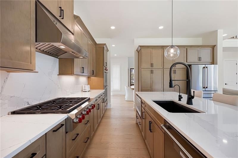 Welcome home to this executive home built by the Toll Brothers. It boasts five bedrooms, five bathrooms and a private backyard. The house features a whole house water filtration system, reverse osmosis water filtration system, high ceilings, upscale Smith & Nobel 3 Day blinds throughout, California closet systems throughout, an upgraded accordion door that opens to the beautiful, private backyard (no rear neighbors), and an enhanced outdoor living space ($38,160). There are too many luxurious appointments to list. The two-story grand foyer will greet your guest with open arms. The chef’s kitchen features quartz countertops, a stunning island, quartz backsplash, Wolf appliances, and a hidden pantry. The kitchen opens to the family room with upgraded built ins. The dining room is ready to host your dinner parties. There is a flex space on the main floor that is perfect as an office or a play room. Your guest will enjoy their private elegant ensuite. You will enjoy the thoughtfully designed mudroom for everyday convenience and functionality. The high-end finishes continue to the second floor, which is appointed with engineered wood flooring. The primary suite boasts a tray ceiling, a sitting room, dual vanities, a luxurious shower with double shower heads, a soaking tub, and a walk-in closet that features a California closet system. The laundry room is conveniently located on the second floor. There are two ensuites with walk-in closets and one more ensuite. All the bedrooms boast a California closet system. Enjoy your evenings on your patio overlooking your private, fenced-in backyard. There are no rear neighbors. You will enjoy scenic lake walks, a resort-style pool with luxury fireplace, pool cabana, fire pit, and pickleball courts. All just minutes from downtown Alpharetta, Halcyon, Crabapple, Avalon, Canton Street, three premier golf courses, shopping, dining, and entertainment options. Don't miss this rare opportunity to own this exquisitely upgraded luxury home in one of the area's most desirable neighborhoods. Luxury, comfort, and convenience await. Schedule your private showing today. This is more than a home; it's your forever destination!