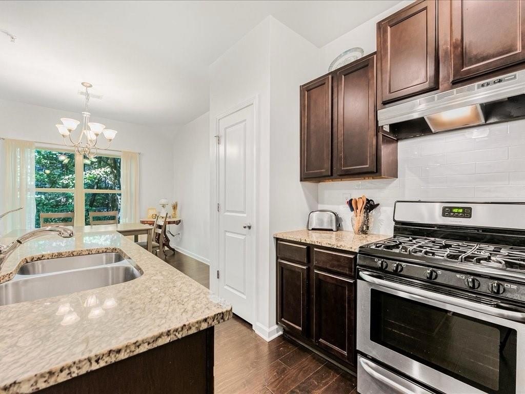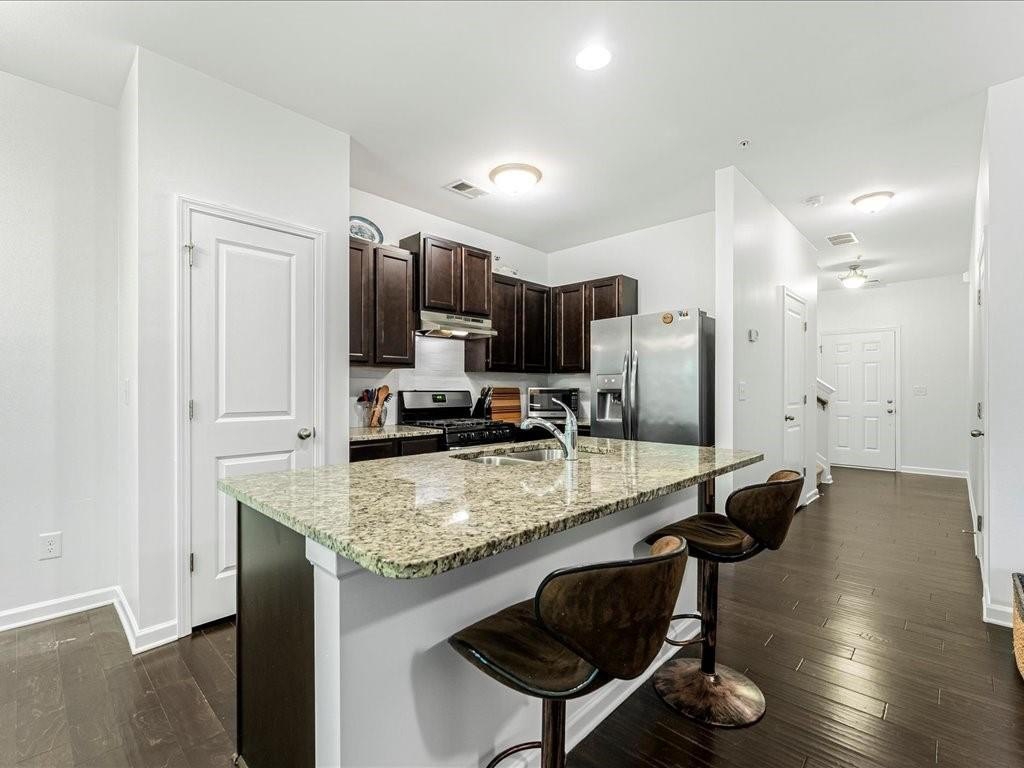 Step inside to a welcoming foyer that opens to a bright, open-concept living area designed for modern living. The kitchen boasts granite countertops, stainless steel appliances, a tile backsplash, and a spacious island—ideal for meal prep or gathering with family and friends. From the living room, step outside to a private deck that’s perfect for relaxing or entertaining.