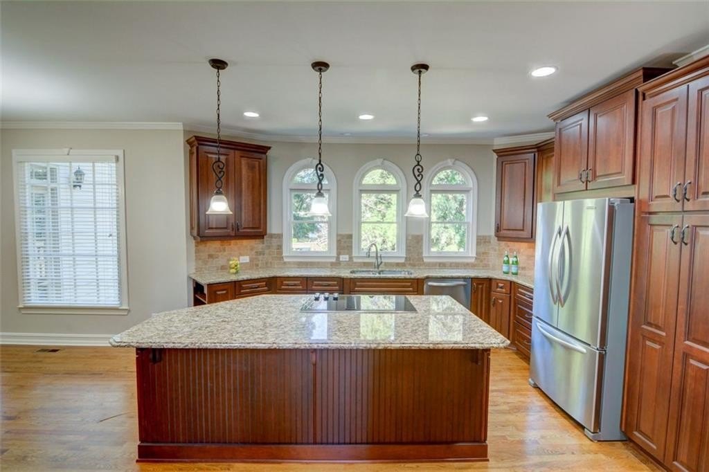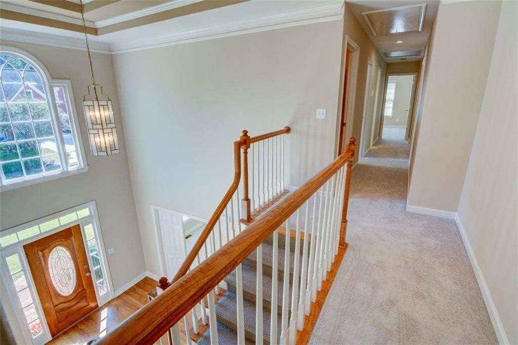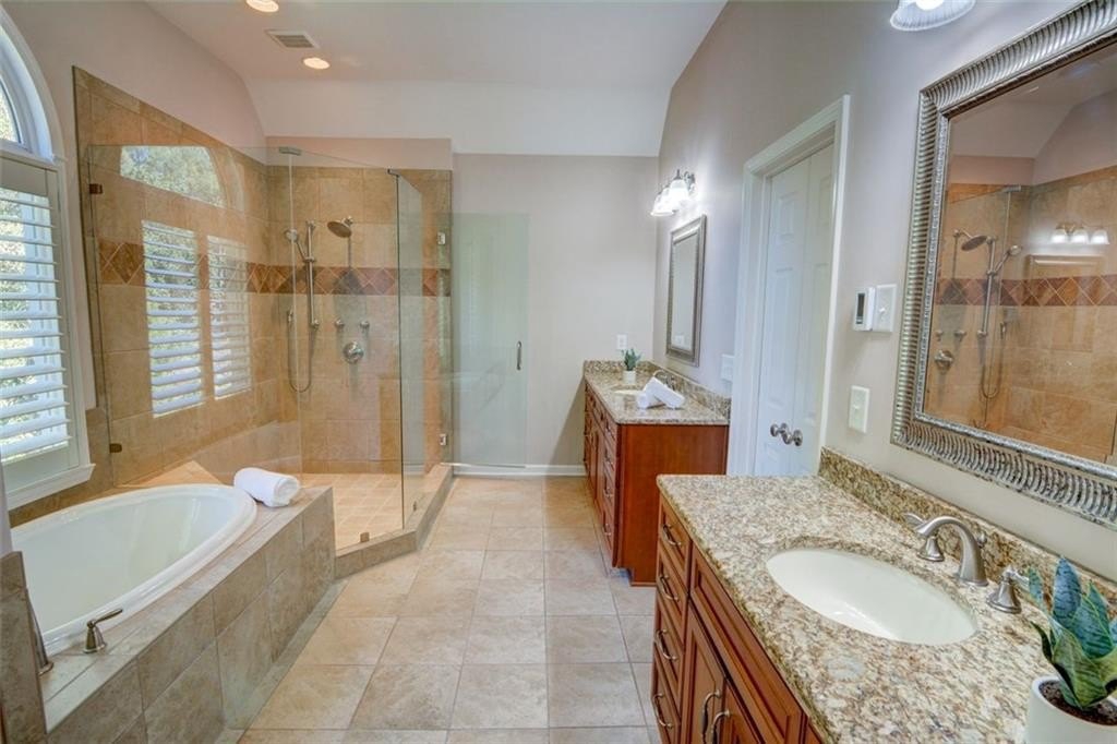 Located in the sought-after Riverfield community, this beautiful home perfectly combines spacious living with neighborhood charm. The Fields Club offers incredible amenities, including tennis and pickleball courts, a pool, clubhouse, playground, and year-round community events, all within walking distance of Simpson Elementary and just minutes from The Forum and Town Center. Step inside to a grand two-story foyer, flanked by a main-level guest bedroom and full bath on one side and a formal sitting room on the other. The heart of the home is the spacious kitchen with an oversized island, abundant cabinetry, and seamless flow into both the breakfast room and living area, ideal for entertaining or casual family living. The bright and open two-story living room features a dramatic wall of windows, a cozy fireplace, and back staircase. A formal dining room and access to the deck complete the main level. Upstairs, the primary suite is a private retreat with tray ceilings and a spa-like bathroom that offers heated floors, dual vanities, a soaking tub, and a large glass-enclosed shower. Three additional bedrooms share a thoughtfully designed bathroom with two private vanity areas. The terrace level offers incredible versatility, with a large open space for a media room, game room, or home gym, plus an additional bonus room and full bath. Step outside to enjoy the paver patio and serene, private backyard, perfect for entertaining or relaxing after a long day. With its ideal location, top-rated schools, and access to all the amenities of The Fields Club, this Riverfield home offers an exceptional lifestyle in one of Peachtree Corners’ most desirable neighborhoods.