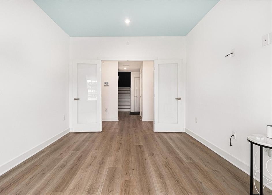 Flex Room/Office: Glass French doors add elegance to this flexible space, ideal for a home office, study, or hobby room.