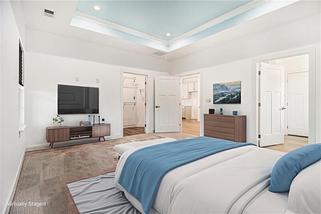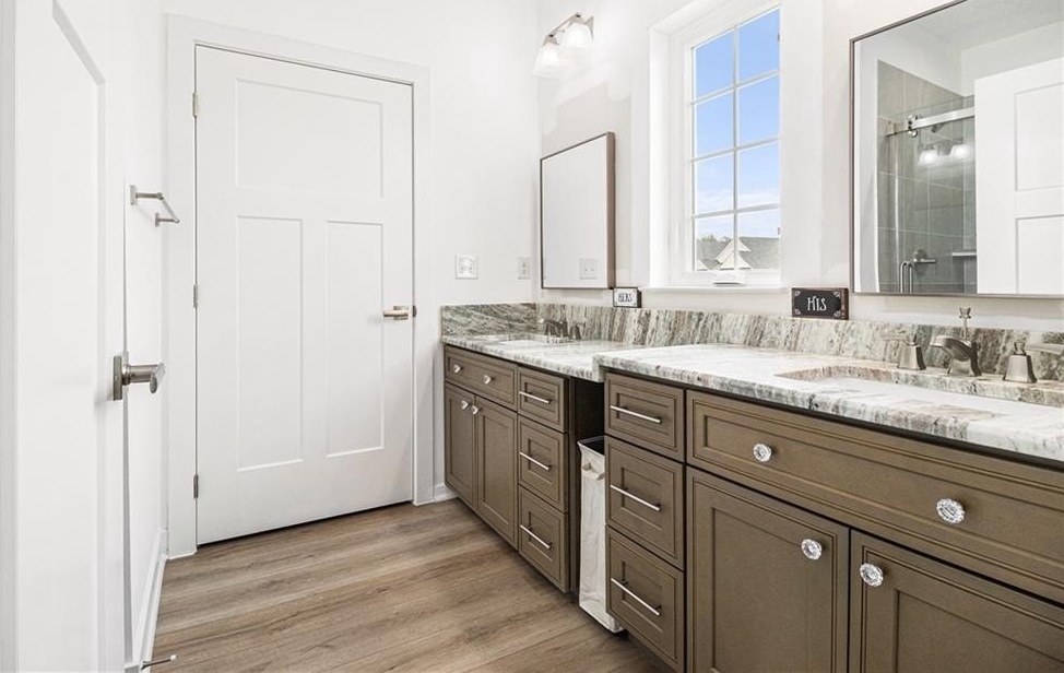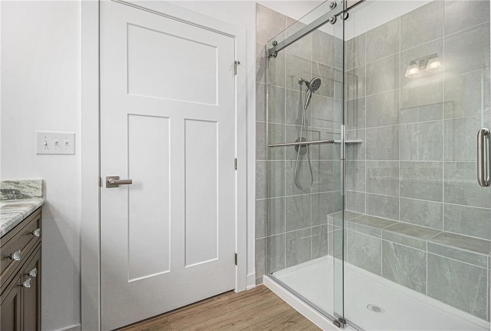 Luxury Master Suite: The master bath features a spa-like tile shower with frameless glass doors and a beautiful granite double vanity.