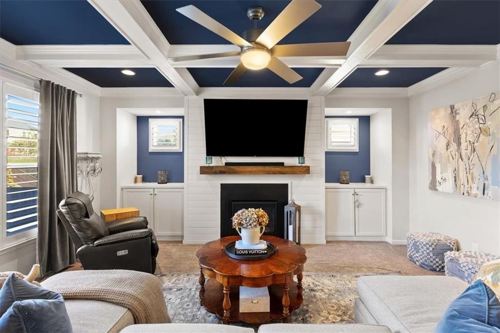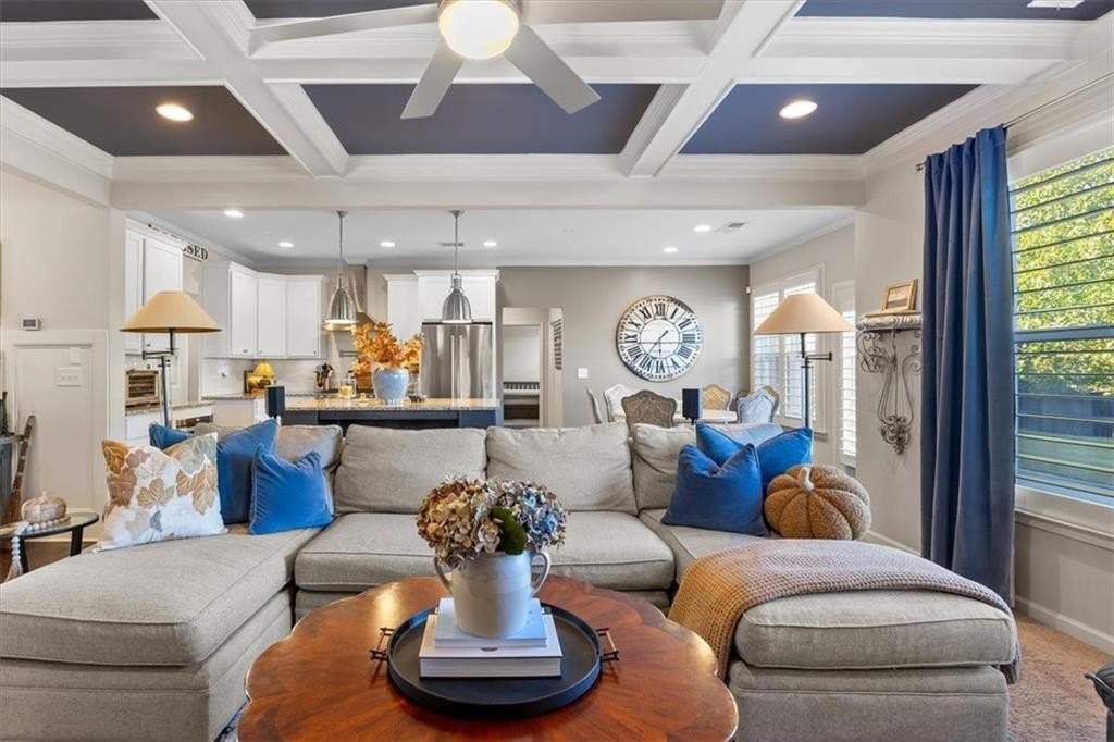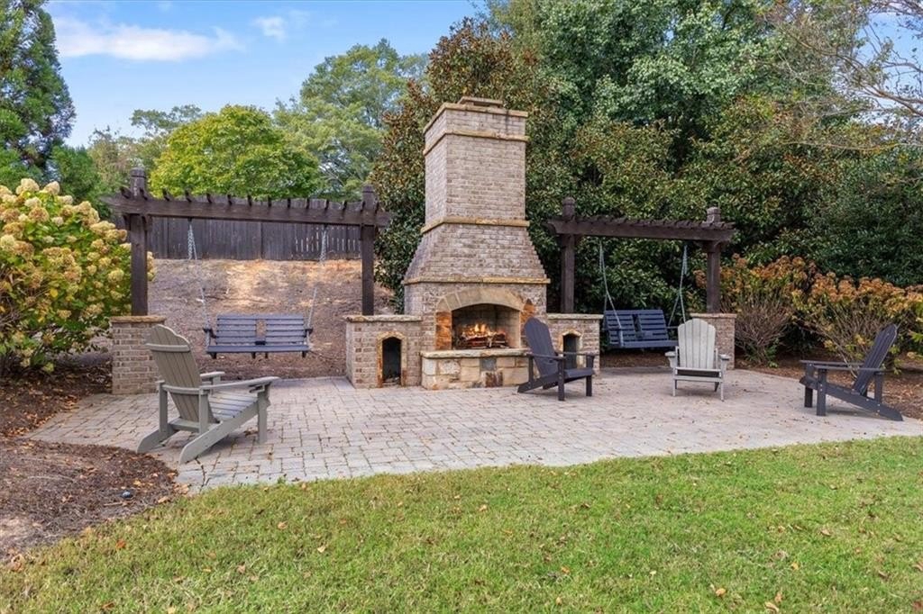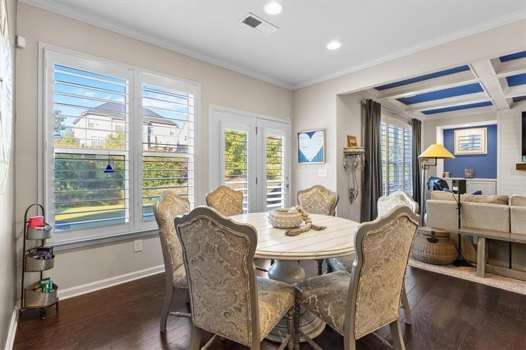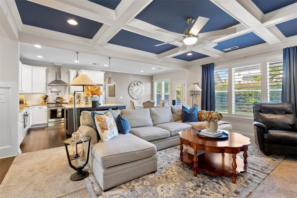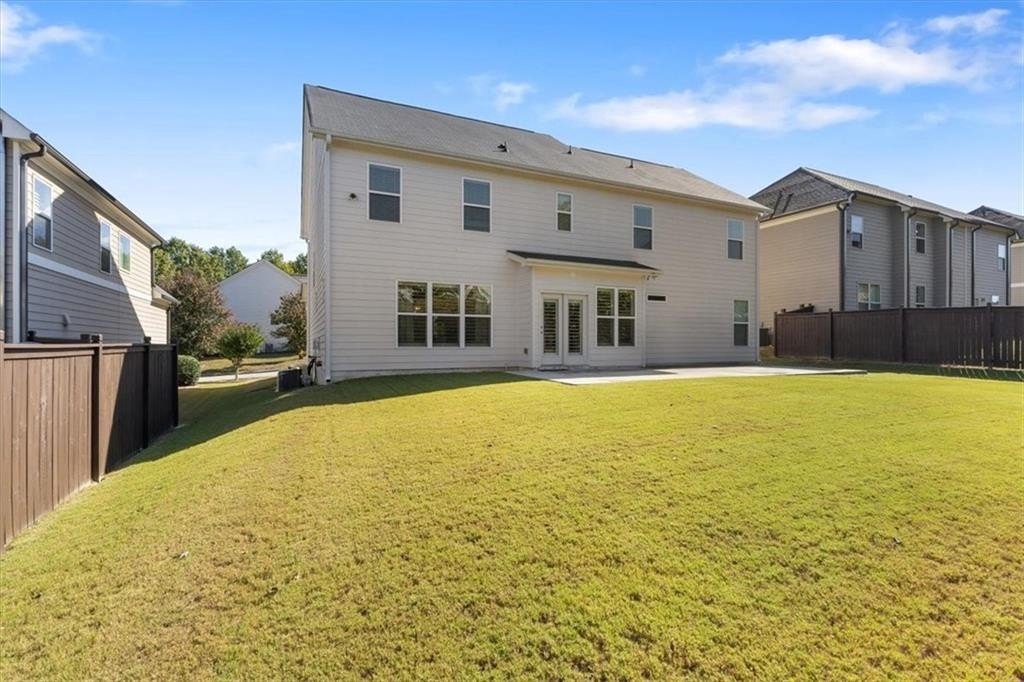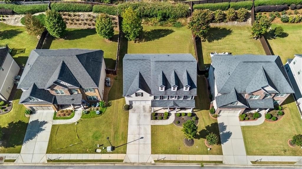 Perfectly positioned in the heart of Buford, this traditional two-story home blends timeless charm, modern comforts, and an unbeatable location. Enjoy close proximity to TOP-RATED SCHOOLS, as well as endless options for shopping, dining, and year-round entertainment. Spend weekends at Bogan Park, on nearby golf courses, or take a short drive to Lake Lanier for boating, fishing, and outdoor adventures. The community amenities enhance your lifestyle with an Olympic-style pool featuring a shallow area for little swimmers, tennis and pickleball courts, and an outdoor fireplace, perfect for relaxing or gathering with neighbors. The home’s brick front, distinct dormers, and covered rocking chair porch with classic columns create desirable curb appeal. Step through the NEW STEEL FRONT DOOR into an inviting foyer flanked by a formal sitting room or home office and a dining room with craftsman-style trim. A BUTLER'S PANTRY with beverage cooler connects the dining room to the open-concept great room, featuring a floor-to-ceiling ship-lap fireplace with custom built-ins, coffered ceiling, and ample space for entertaining. The eat-in kitchen is both stylish and functional with a center island and breakfast bar, HIGH-END APPLIANCES, stainless range hood, pot filler, subway tile backsplash, granite countertops, and a comfortable dining nook. Updated lighting throughout the main level adds warmth and character to every space. Off the garage, the mudroom serves as a practical drop zone for daily living. A MAIN LEVEL BEDROOM and full bath with a ship-lap accent wall offer an inviting space for guests or multi-generational living. Upstairs, a spacious landing leads to the OVERSIZED PRIMARY SUITE, highlighted by a tray ceiling, double vanity, walk-in shower with two shower heads, garden tub, and dual closets. Two additional bedrooms, a full bath, and a convenient upstairs laundry room provide comfort and convenience. The BONUS ROOM, currently serving as a media room, comes complete with custom lighting and a FULL MEDIA SYSTEM for movie nights or game days. Additional features include barn doors, plantation shutters, hardwood flooring, and new soft-close toilets in all bathrooms for thoughtful touches that elevate the home’s overall design and livability. Step outside to a spacious EXTENDED PATIO overlooking the LEVEL BACKYARD, ready to be customized into an outdoor area you love. Whether you envision a cozy fire pit, lounge area, or space to dine under the stars, this property offers the perfect layout for enjoying every season.
