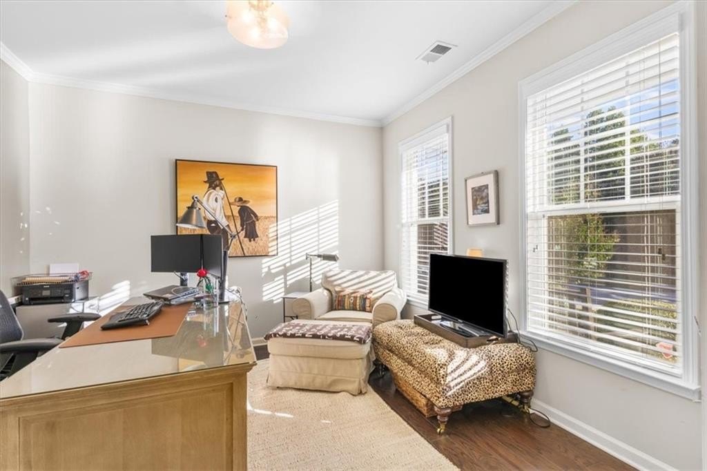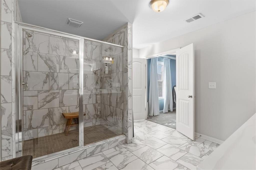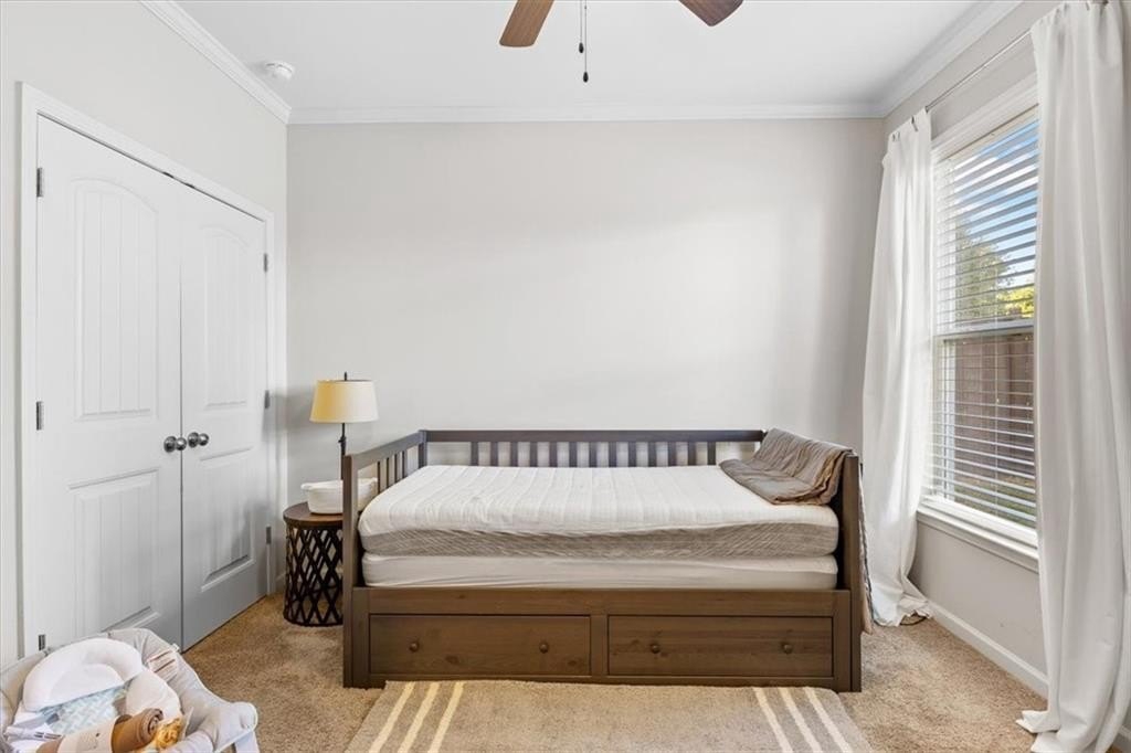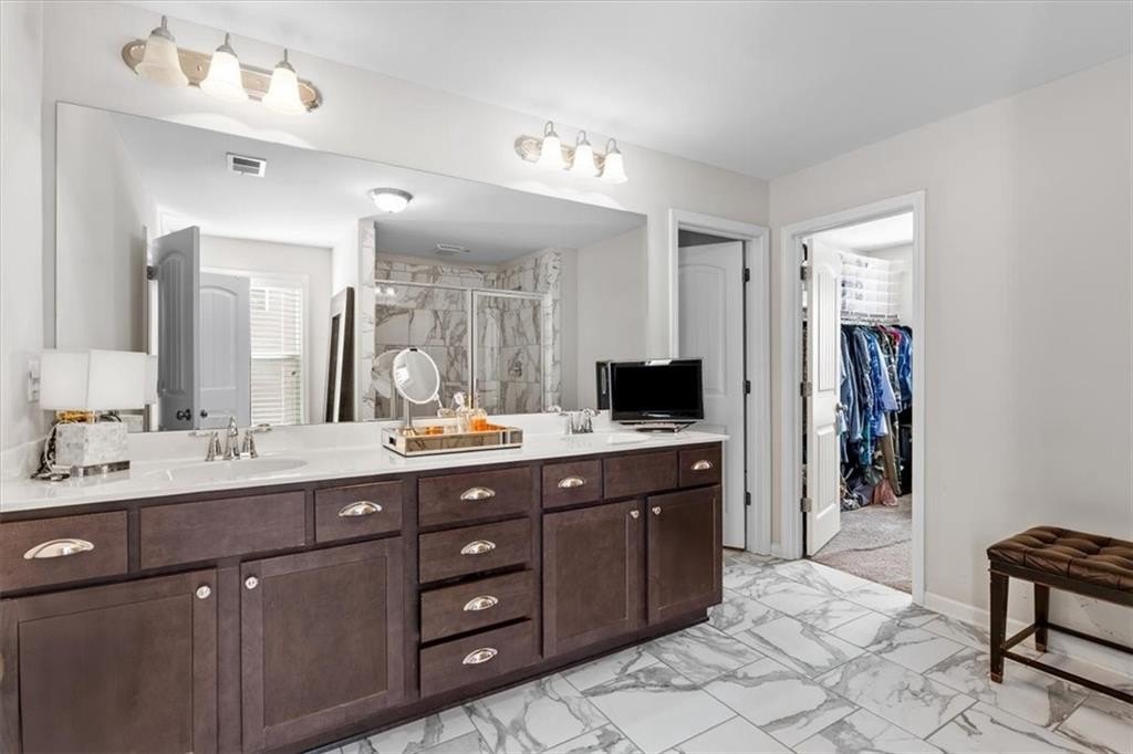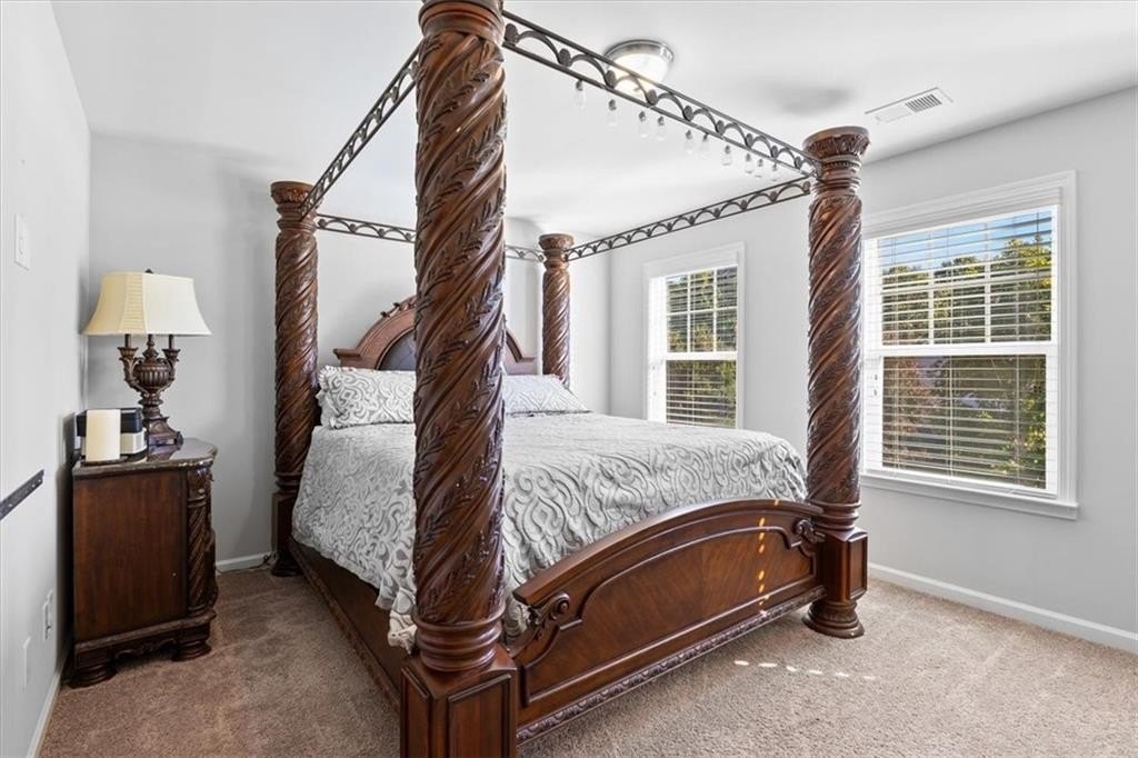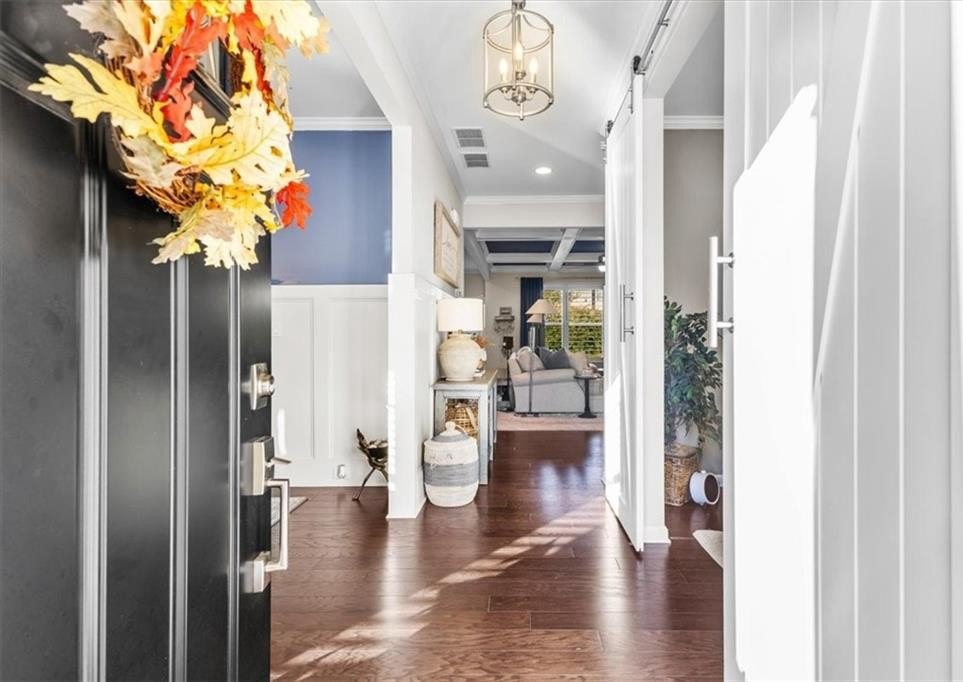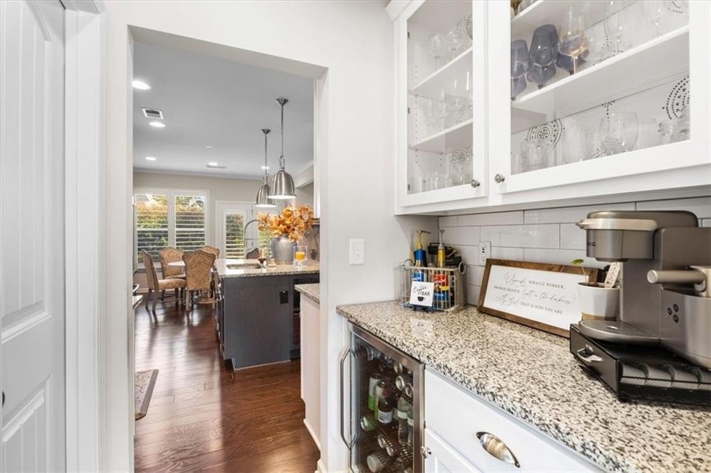 Perfectly positioned in the heart of Buford, this traditional two-story home blends timeless charm, modern comforts, and an unbeatable location. Enjoy close proximity to TOP-RATED SCHOOLS, as well as endless options for shopping, dining, and year-round entertainment. Spend weekends at Bogan Park, on nearby golf courses, or take a short drive to Lake Lanier for boating, fishing, and outdoor adventures. The community amenities enhance your lifestyle with an Olympic-style pool featuring a shallow area for little swimmers, tennis and pickleball courts, and an outdoor fireplace, perfect for relaxing or gathering with neighbors. The home’s brick front, distinct dormers, and covered rocking chair porch with classic columns create desirable curb appeal. Step through the NEW STEEL FRONT DOOR into an inviting foyer flanked by a formal sitting room or home office and a dining room with craftsman-style trim. A BUTLER'S PANTRY with beverage cooler connects the dining room to the open-concept great room, featuring a floor-to-ceiling ship-lap fireplace with custom built-ins, coffered ceiling, and ample space for entertaining. The eat-in kitchen is both stylish and functional with a center island and breakfast bar, HIGH-END APPLIANCES, stainless range hood, pot filler, subway tile backsplash, granite countertops, and a comfortable dining nook. Updated lighting throughout the main level adds warmth and character to every space. Off the garage, the mudroom serves as a practical drop zone for daily living. A MAIN LEVEL BEDROOM and full bath with a ship-lap accent wall offer an inviting space for guests or multi-generational living. Upstairs, a spacious landing leads to the OVERSIZED PRIMARY SUITE, highlighted by a tray ceiling, double vanity, walk-in shower with two shower heads, garden tub, and dual closets. Two additional bedrooms, a full bath, and a convenient upstairs laundry room provide comfort and convenience. The BONUS ROOM, currently serving as a media room, comes complete with custom lighting and a FULL MEDIA SYSTEM for movie nights or game days. Additional features include barn doors, plantation shutters, hardwood flooring, and new soft-close toilets in all bathrooms for thoughtful touches that elevate the home’s overall design and livability. Step outside to a spacious EXTENDED PATIO overlooking the LEVEL BACKYARD, ready to be customized into an outdoor area you love. Whether you envision a cozy fire pit, lounge area, or space to dine under the stars, this property offers the perfect layout for enjoying every season.
