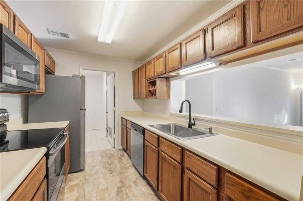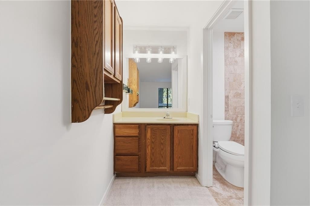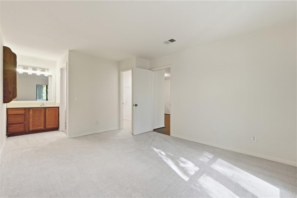 Two bed, 2 bath condo in the heart of Roswell! Located in the Roswell Springs neighborhood on Warm Springs Circle in beautiful Old Historic Roswell. Great location. Walk to Azalea Park at the Chattahoochee River or take a scenic hike to Old Mill Park & Machine Shop where the Roswell Mill was located. Just a little over a mile to Old Historic Roswell, restaurants on Canton Street and conveniently located to the Riverwalk Trail system. This condo features an open floor plan with split bedrooms, LVP flooring, freshly painted, gas starter fireplace, and gorgeous windows allowing plenty of natural light to fill your home. The kitchen and bathroom feature oak cabinets. The master bathroom stand-up shower has been upgraded. The view from the unit overlooks a wooded area and there is a covered deck off of the living room to relax and unwind on! Spend summers with friends and family at the community saltwater pool! The mailbox center and refuse area are near the 100 building by the front entrance, the recycling center is just after the 400 building, and the pool is located across from the 500 building in the rear of the complex. No assigned parking either. There are no rental restrictions with the exception that a 1-year lease min requirement (consequently, not FHA approved.) Neither Airbnb nor anything similar like it is permitted.