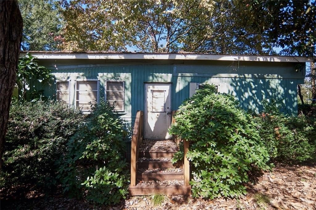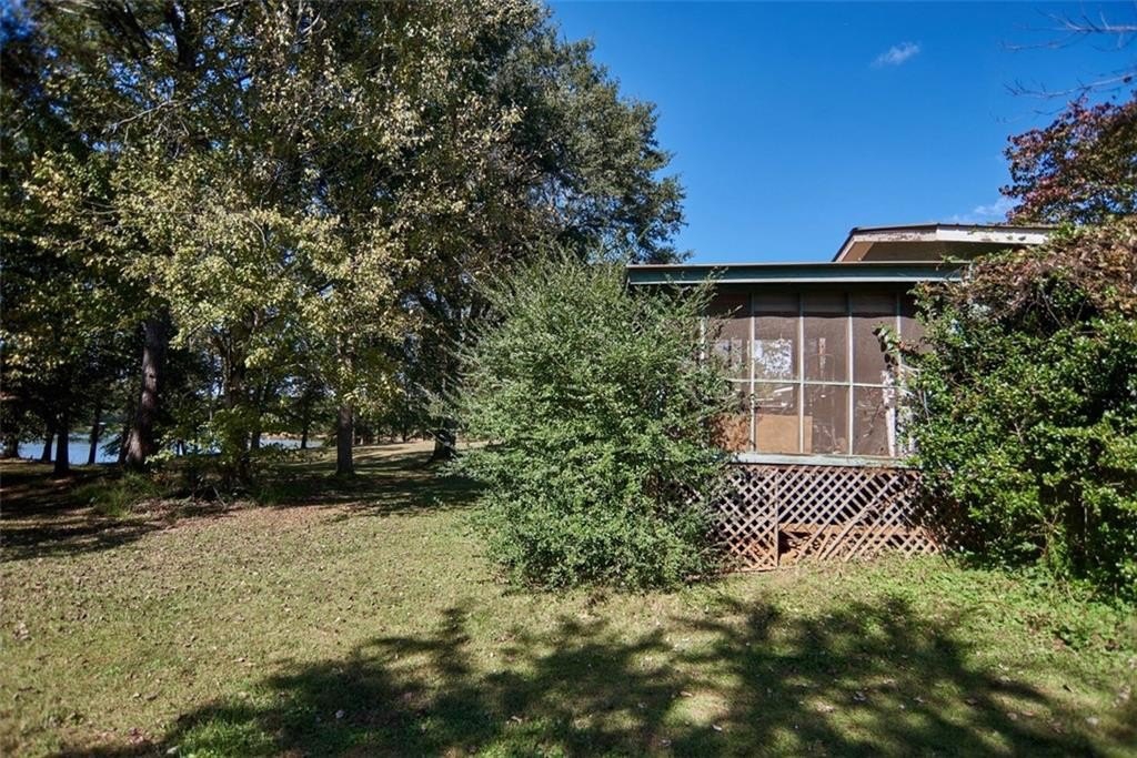 An existing older single-wide mobile home is currently on the lot — ideal for use as a permanent home, guest space, or convenient storage for your lake toys and gear.