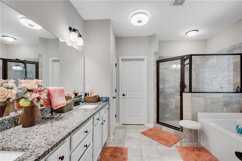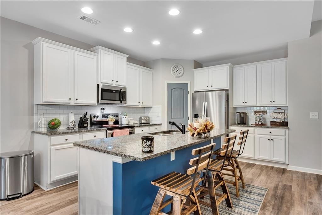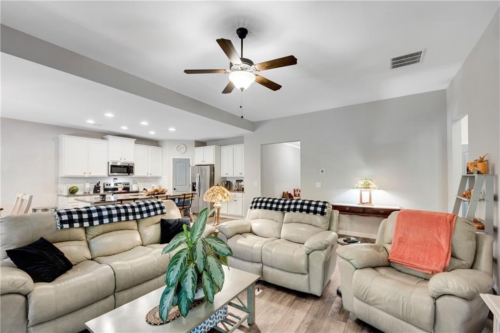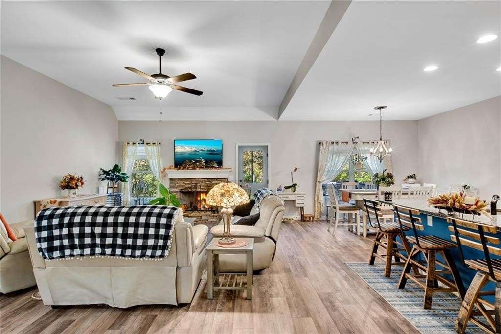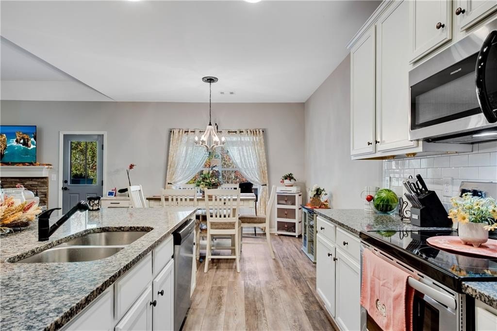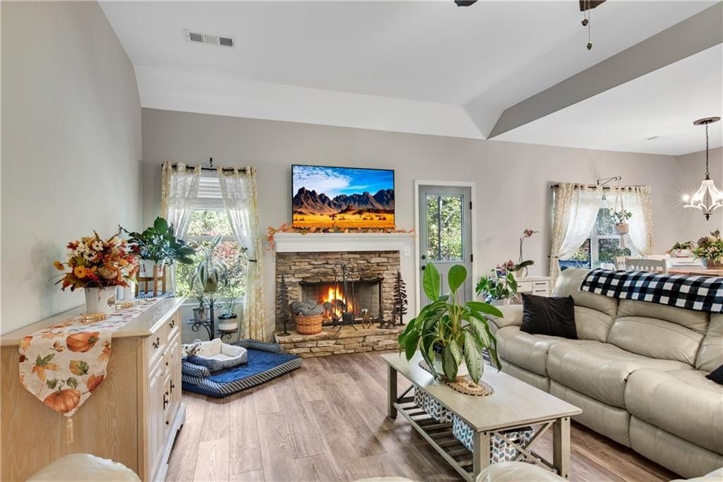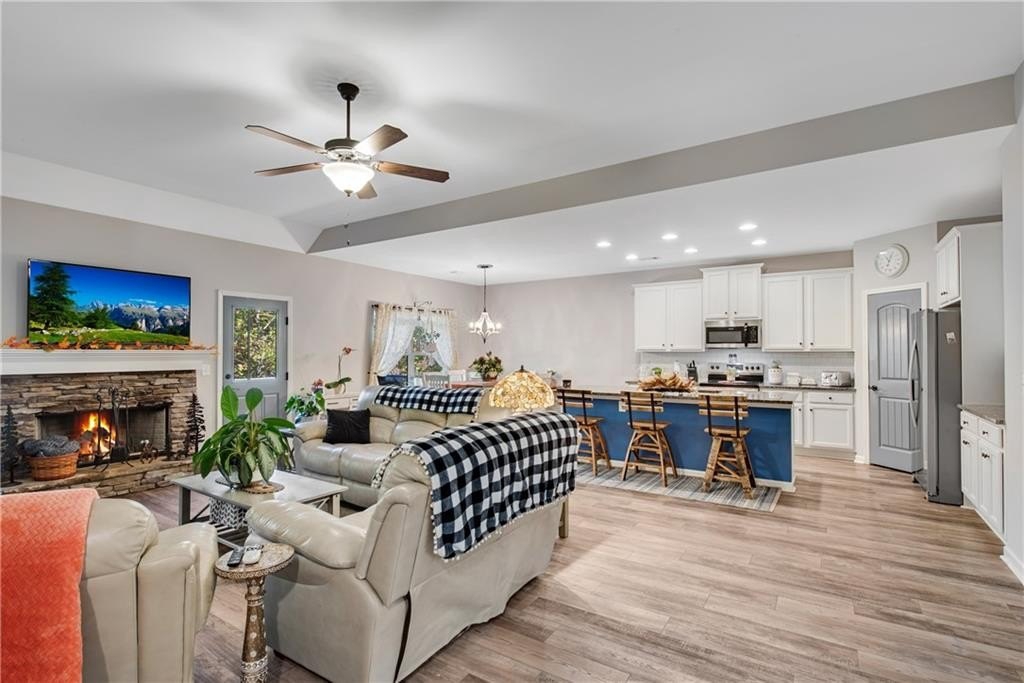 Beautiful and Spacious Home Features 3-Bedroom s on Main, Plus an additional 4thBonus/Bedroom upstairs with a huge walk-in closet and Full Unfinished Basement! The sought-after split bedroom floor plan includes the master suite on the main level, complete with an oversized tile shower, double granite vanity, soaking tub, walk-in closet, and even a Bluetooth speaker so you can enjoy music while getting ready each day. The open-concept kitchen boasts white cabinetry, granite countertops, and a tile backsplash, overlooking the inviting family room with a wood-burning fireplace. LVP flooring runs throughout the main living areas, with tile in the bathrooms and new carpet in the main floor bedrooms. Downstairs, you’ll find a HUGE full unfinished basement stubbed for a bath — perfect for a future in-law suite, theater room, playroom, or endless other possibilities. Outside, enjoy the newer paver patio, a storage shed, and even apple and pear trees on the property. Additional highlights include a large main-level laundry room and plenty of storage throughout and a large lot! This home truly combines comfort, functionality, and room to grow — don’t miss it!
