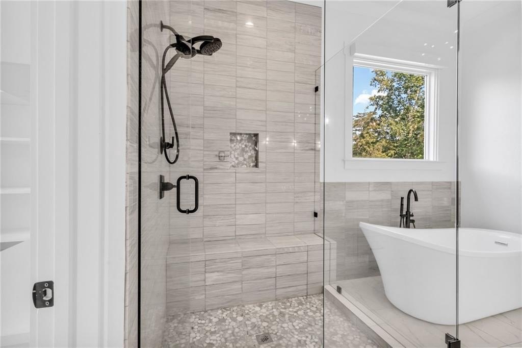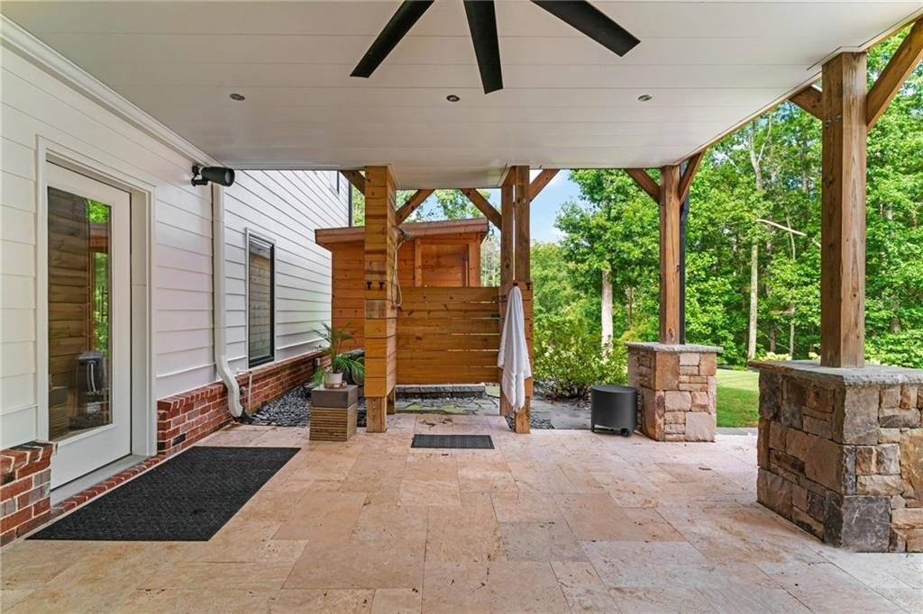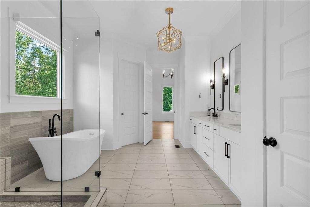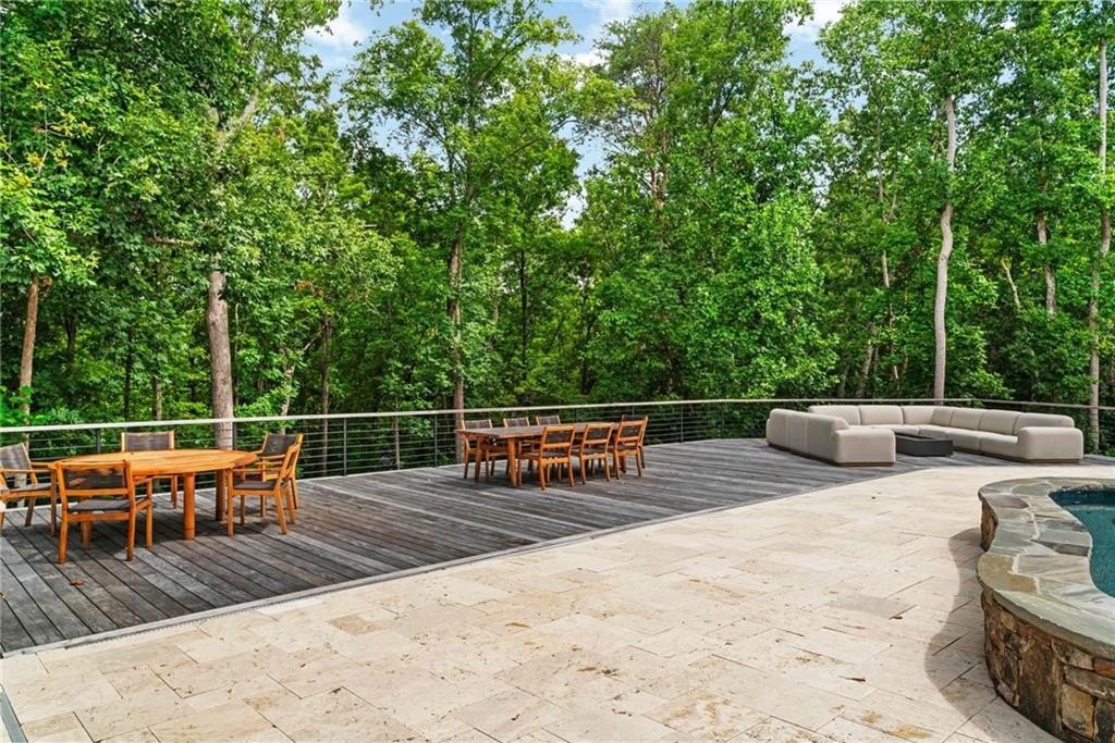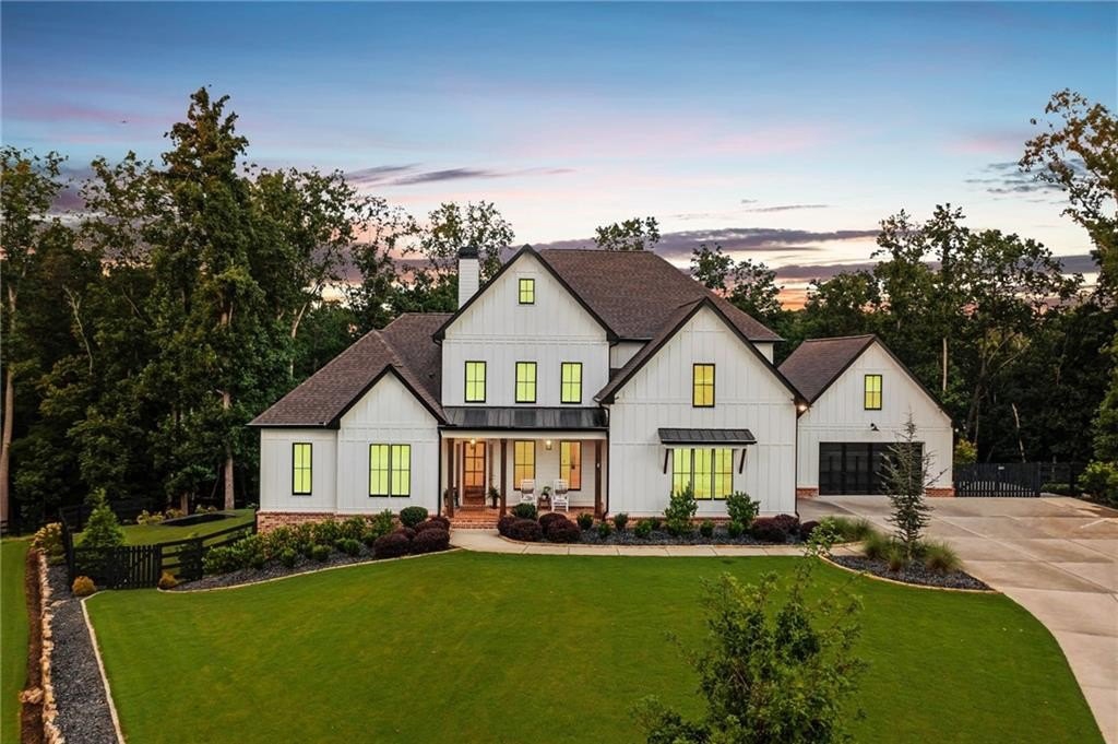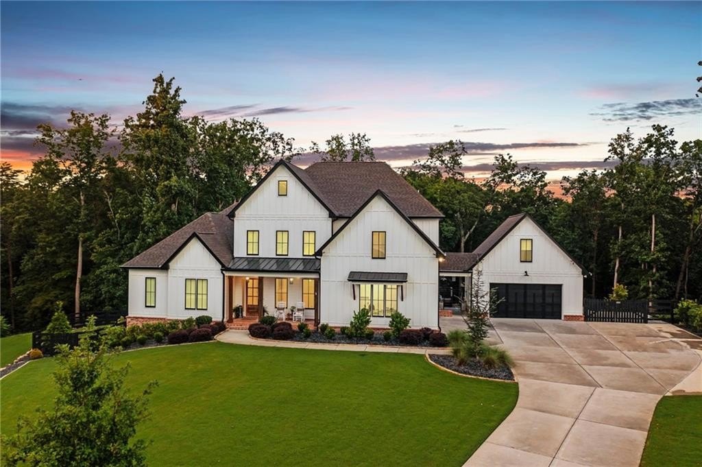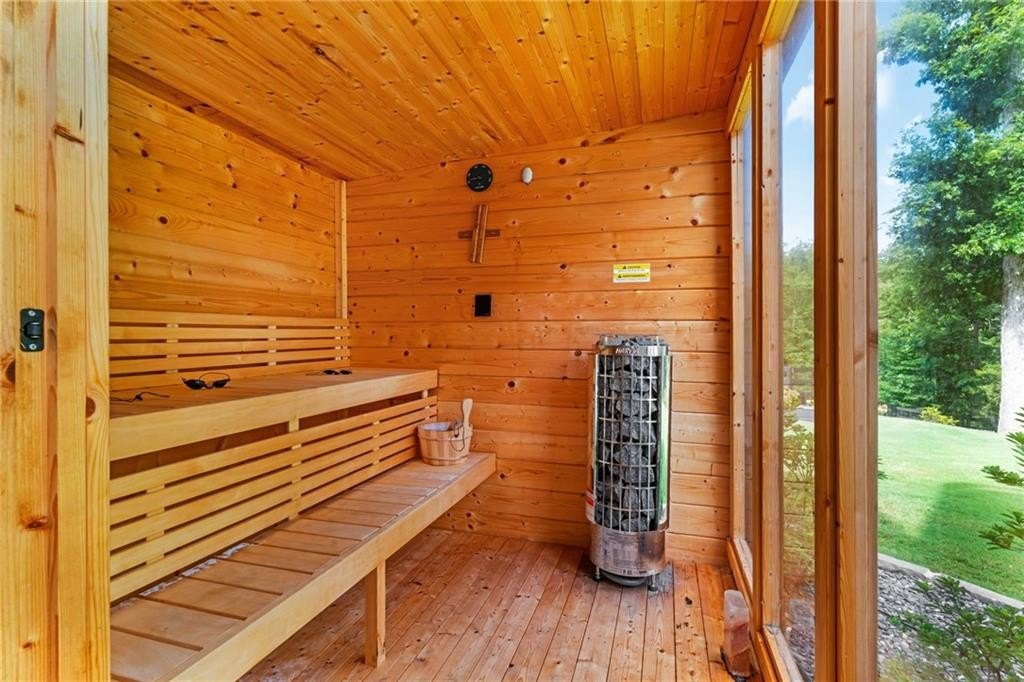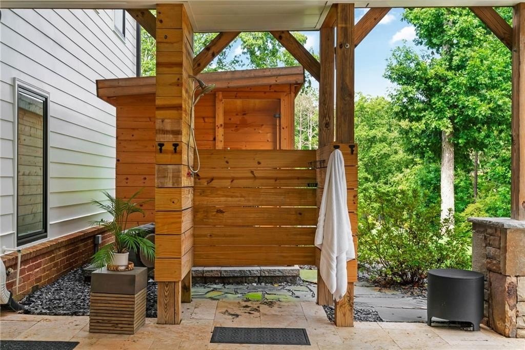 The backyard is a true PARADISE with diving ledges, resort-style slides, waterfalls, grottoes, tanning ledges, and a massive hot tub, along with pickleball and basketball courts, a putting green, and an in-ground trampoline. Outdoor living continues with a full kitchen, outdoor bathroom, sauna, private outdoor shower and spectacular outdoor fireplace tucked in the trees for majestic evenings! Covered and screened deck with fireplace is the perfect spot for morning coffee! Custom lighting enhances both the home and backyard, creating a stunning evening ambiance, while a full irrigation system keeps the grounds lush and a full house generator provides peace of mind. A rocking chair front porch adds classic Southern charm, while the attached two-car garage and detached two-car garage provide space for four vehicles in total. Above the detached garage, a private office / bonus space is ideal for a home office, studio, or man cave. The property also features a private hiking trail that leads directly to Canton Creek and waterfall.