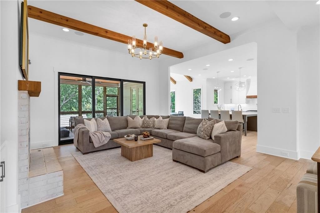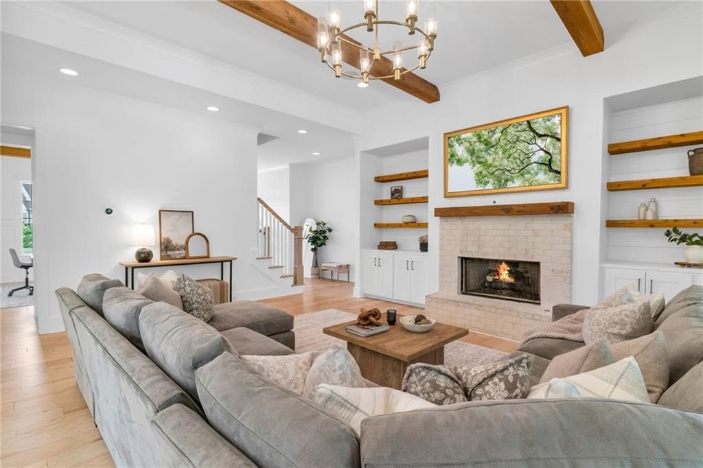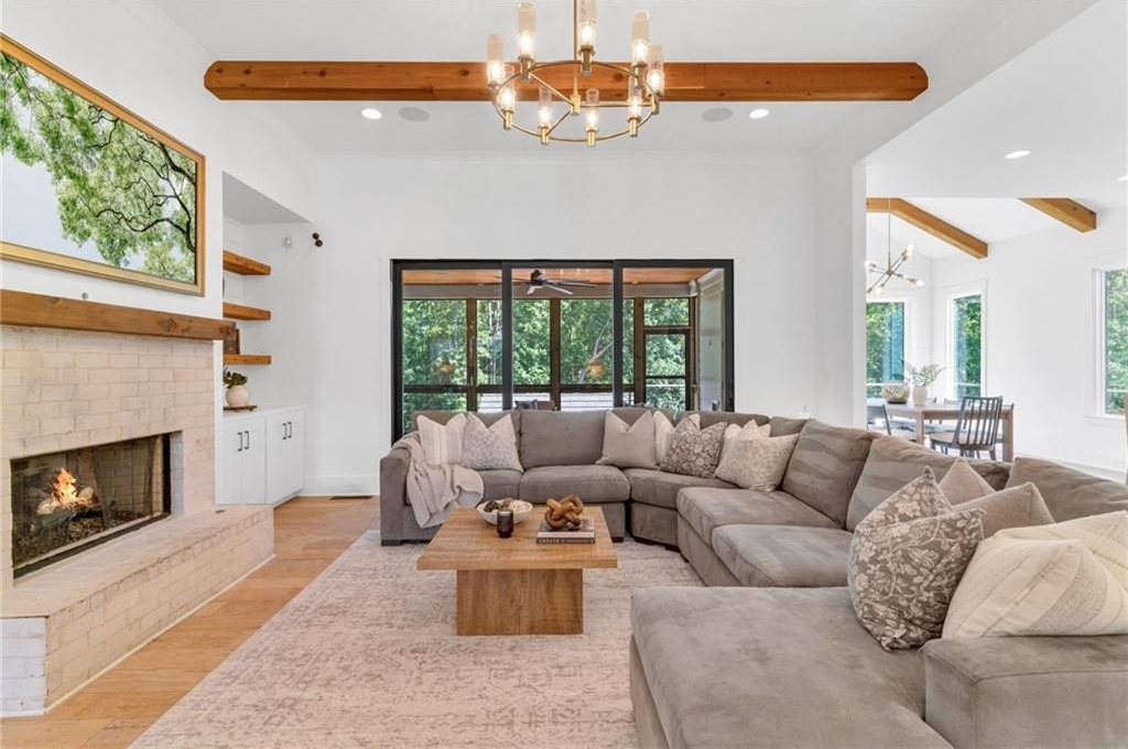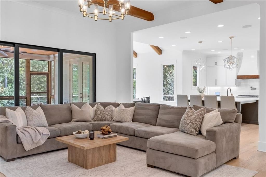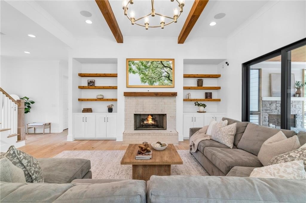 This extraordinary estate offers a rare opportunity to own a property that blends the ultimate in luxury living with resort-style amenities. Situated on 2.5+/- acres of lush landscaped grounds in a prime school district, this home is designed for entertaining, relaxation, and everyday comfort at the highest level. Inside, you’ll find gorgeous modern finishes with cedar beams throughout the main level, an open floor plan with a large family room that includes built-ins, cozy stone fireplace and sliding doors opening the indoors to the outdoors. A massive gourmet kitchen featuring an oversized island with seating for up to 10, quartz countertops, double ovens, oversized refrigerator, and a vented range with hood. A vaulted keeping room/ breakfast area with shiplap and custom lighting adds to the charm of this spectacular home! This luxury kitchen also offers a custom walk-in pantry with a grocery door makes everyday living effortless. The main-level primary suite is a private retreat with soaring ceilings and a spa-like bath including a soaking tub, oversized shower, and double vanity. Owner suite closet includes custom built-ins, island with drawers, makeup vanity/desk and FULL laundry with sink! Upstairs, four spacious secondary bedrooms each offer their own private en suite bath and walk-in closets. A second fantastic laundry upstairs with cabinets and sink. The finished terrace level includes a sixth bedroom, full bath, a state-of-the-art media room with seating for 10 and an incredible sound system, a fitness room, and a rec room. Terrace level also offers a third laundry making laundry a breeze on any floor! A whole-home speaker system carries throughout the interior and exterior, creating the perfect setting for entertainment.