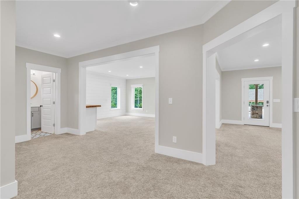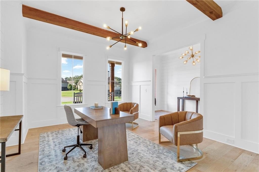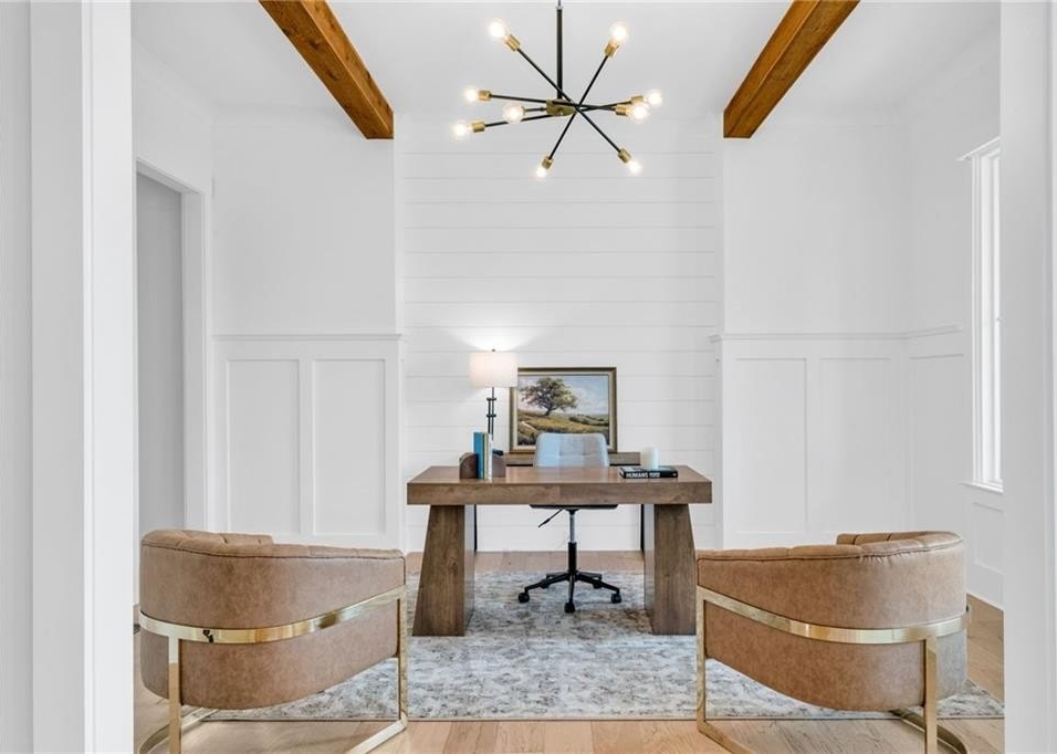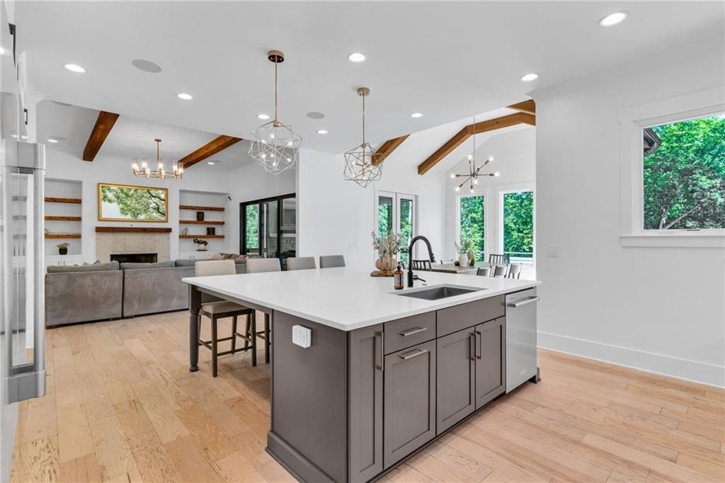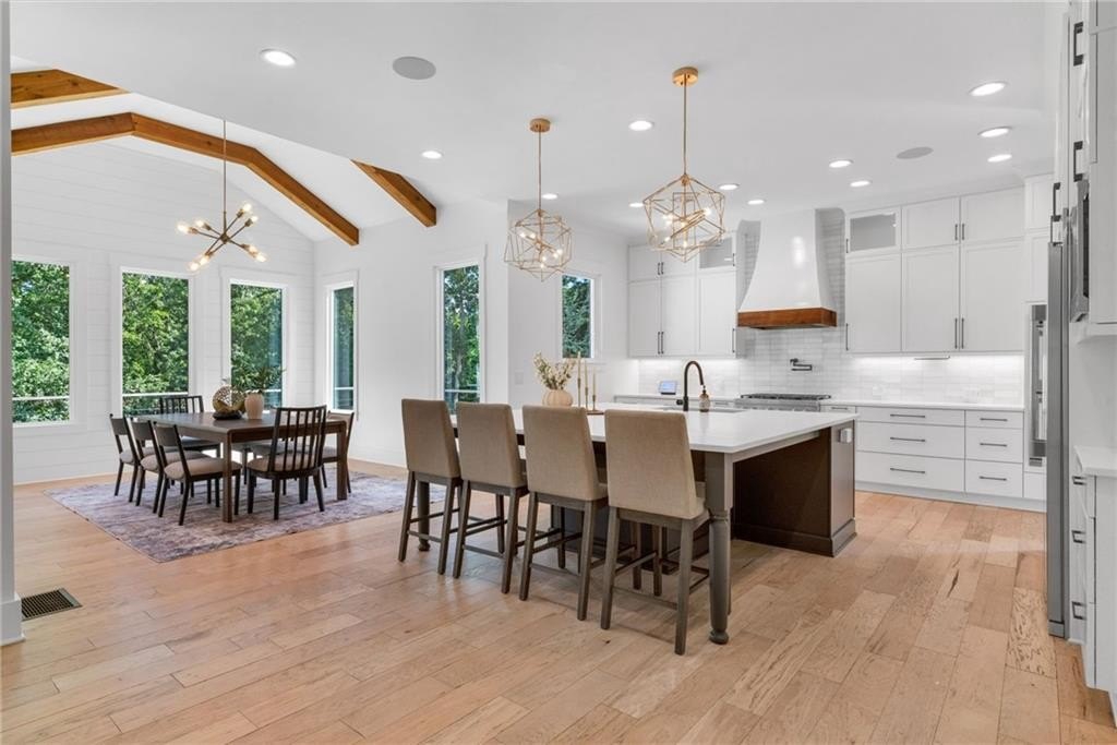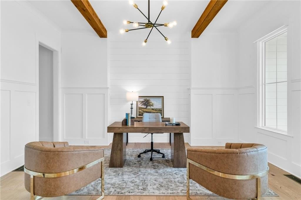This extraordinary estate offers a rare opportunity to own a property that blends the ultimate in luxury living with resort-style amenities. Situated on 2.5+/- acres of lush landscaped grounds in a prime school district, this home is designed for entertaining, relaxation, and everyday comfort at the highest level. Inside, you’ll find gorgeous modern finishes with cedar beams throughout the main level, an open floor plan with a large family room that includes built-ins, cozy stone fireplace and sliding doors opening the indoors to the outdoors. A massive gourmet kitchen featuring an oversized island with seating for up to 10, quartz countertops, double ovens, oversized refrigerator, and a vented range with hood. A vaulted keeping room/ breakfast area with shiplap and custom lighting adds to the charm of this spectacular home! This luxury kitchen also offers a custom walk-in pantry with a grocery door makes everyday living effortless. The main-level primary suite is a private retreat with soaring ceilings and a spa-like bath including a soaking tub, oversized shower, and double vanity. Owner suite closet includes custom built-ins, island with drawers, makeup vanity/desk and FULL laundry with sink! Upstairs, four spacious secondary bedrooms each offer their own private en suite bath and walk-in closets. A second fantastic laundry upstairs with cabinets and sink. The finished terrace level includes a sixth bedroom, full bath, a state-of-the-art media room with seating for 10 and an incredible sound system, a fitness room, and a rec room. Terrace level also offers a third laundry making laundry a breeze on any floor! A whole-home speaker system carries throughout the interior and exterior, creating the perfect setting for entertainment.
