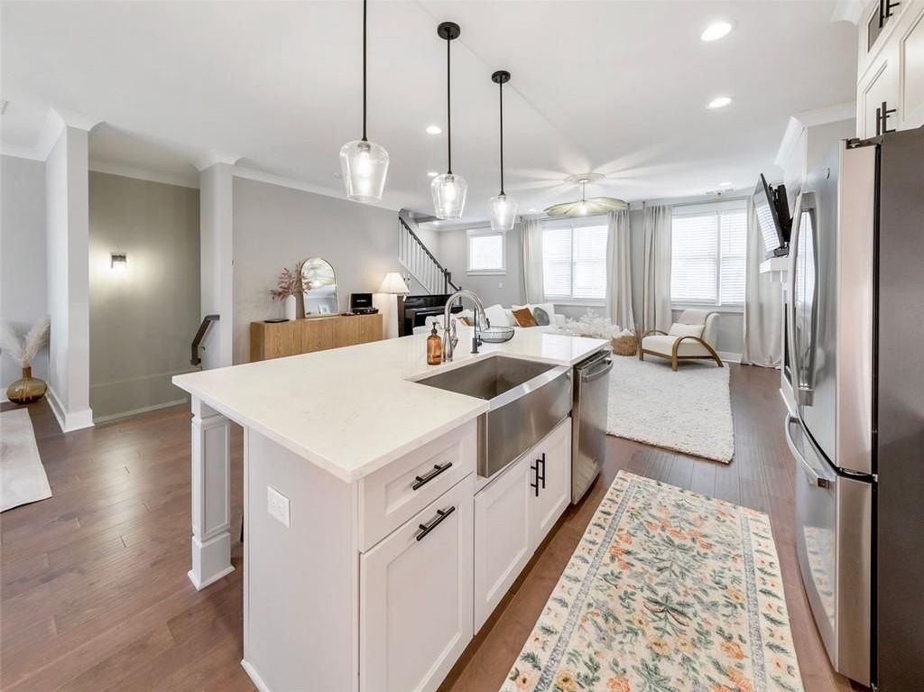 Pack your bags because this is the one! Built in 2020, this stunning 3 bed / 3.5 bath townhome in the highly sought-after Seven Norcross community offers modern design, upscale finishes, and an unbeatable location just minutes from the heart of Historic Norcross. Step inside to an open floor plan designed for both everyday living and entertaining. The gourmet kitchen features a large island, sleek modern lighting, and stainless steel appliances, flowing seamlessly into a fireside family room and spacious dining area. Upstairs, the primary suite is a true retreat with a spa-like ensuite featuring a double vanity, luxurious shower, and soaking tub. A second bedroom on this level also includes its own private bath. The laundry closet is conveniently located on this level making chores a breeze. The terrace level hosts a third bedroom and full bath, perfect for guests or a home office. Enjoy your morning coffee on the covered balcony or take in sunrises and sunsets from the rooftop deck. Living in Seven Norcross means access to a fun and active community with a zero-entry swimming pool, fire pit, green space, and more. Just a short stroll from historic downtown Norcross, you can enjoy shopping, dining, events, and everything this vibrant neighborhood has to offer. Don’t miss all this townhome has to offer!
