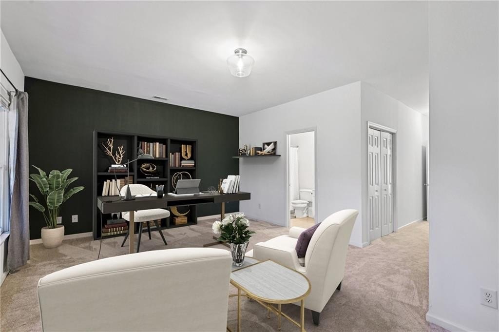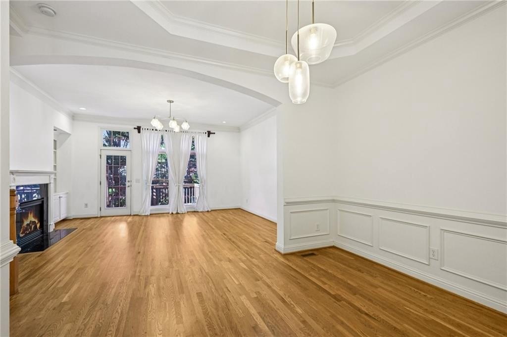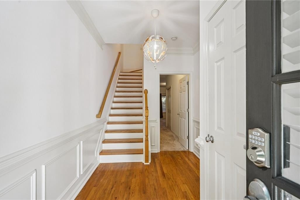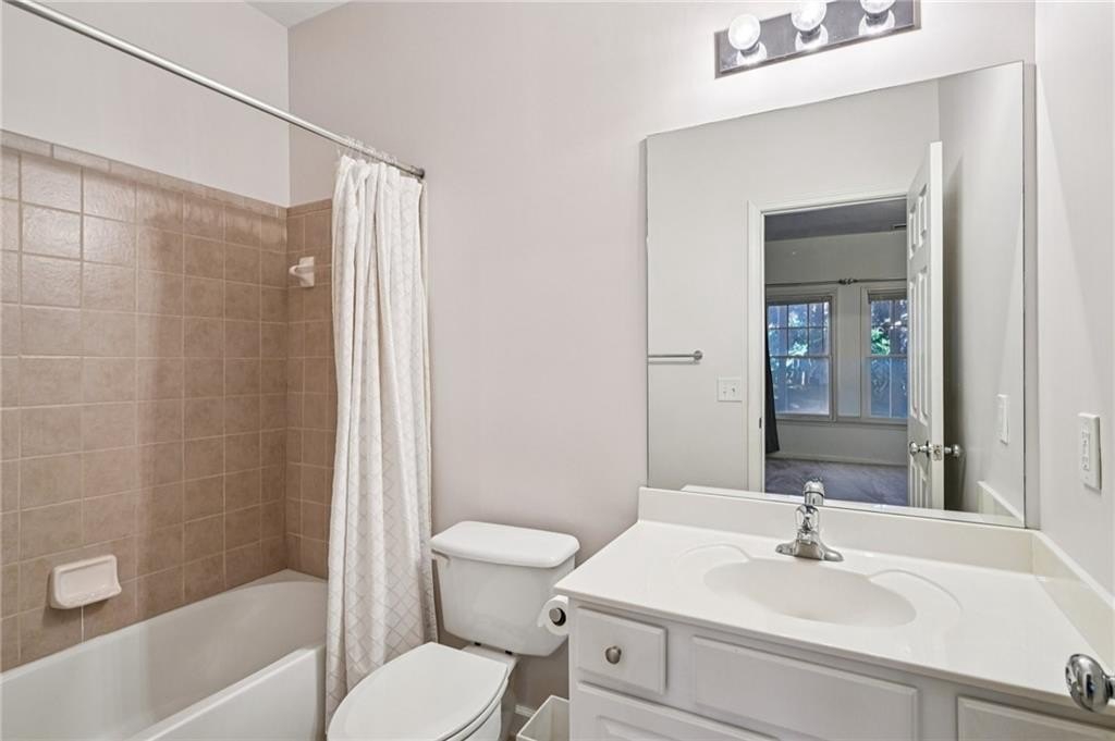 Beautifully updated and brimming with style, this stately Vinings townhome seamlessly blends classic sophistication with modern comforts, featuring a spacious and versatile layout ideal for today’s way of living. Step inside to discover stunning new hardwood floors that flow throughout the entry and main level, setting the tone for refined living. The first floor features a private bedroom and full bath—perfect for guests, a home office, or an in-law suite—offering both comfort and versatility. Upstairs, the bright, open-concept main level is ideal for effortless entertaining. The living room showcases floor-to-ceiling windows that flood the space with natural light and open onto the deck for easy indoor-outdoor living. A cozy fireplace with custom built-ins anchors the room, creating an inviting atmosphere. The dining area features a tray ceiling and a statement light fixture that adds a touch of sophistication. The renovated kitchen is a true showpiece, boasting on-trend white cabinetry, granite countertops, a tile backsplash, a large center island with seating, and a sunny breakfast area—perfect for casual meals or morning coffee. On the upper level, brand-new carpet enhances the comfort of the bedrooms. The spacious primary suite has hardwood floors and serves as a serene retreat with en-suite bath featuring dual vanities, a separate soaking tub, a walk-in shower, and an expansive closet. A secondary bedroom with its own private bath and a convenient upstairs laundry room complete this level. Enjoy peaceful wooded views from the Trex composite deck or unwind on the lower patio area, both perfect for relaxing or entertaining outdoors. Additional highlights include a garage equipped with an electric vehicle charging plug, plus ample guest parking nearby. Situated in an unbeatable location near I-285, The Battery, Silver Comet Trail, West Midtown, Vinings, and Buckhead, this home offers easy access to top shopping, dining, and recreation. You’re also just moments from Publix, Sprouts, and countless restaurants and conveniences — only 10 miles to Downtown Atlanta and 15 miles to Hartsfield-Jackson Airport. Don’t miss this exceptional opportunity—schedule your private tour today!