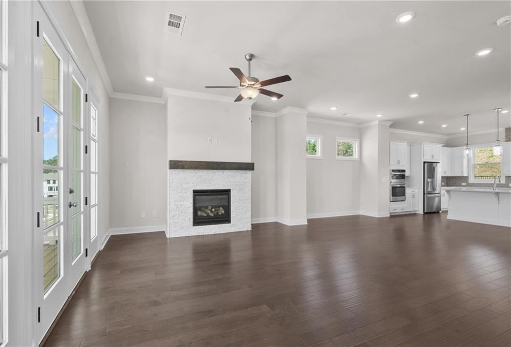 Fall Into Savings with $45k! Personalize Your Space with Your Style – use it toward low rates, upgrades, appliances, closing costs & more. Additional Promotions Available with Quick Closing! The Aspen II at Palisades—a premier enclave where upscale design meets breathtaking views and peaceful living. This brand-new, three-story, 4-bedroom, 3.5-bath home offers an exceptional blend of modern elegance and tranquil surroundings, perfectly suited for those seeking space, style, and a scenic escape. Thoughtfully designed to showcase sweeping vistas of the natural landscape, this home provides a stunning visual experience from multiple vantage points. The terrace level includes a private guest suite with a full bath, its own covered patio, and access to a fenced courtyard, offering both privacy and comfort. On the main floor, expansive windows flood the open-concept layout with natural light. The family room opens to a charming Charleston-style front porch, creating a seamless indoor-outdoor connection. At the rear, the chef-inspired kitchen features 42” soft-close cabinets, quartz countertops, stainless steel appliances, a cooktop with a wall oven and microwave, and under-cabinet lighting. The adjacent dining area flows effortlessly onto a covered deck that overlooks a beautifully landscaped backyard—perfect for alfresco meals and quiet mornings. Upstairs, the owner’s suite is a tranquil retreat with panoramic views framed by oversized picture windows. Two additional bedrooms and a centrally located laundry room complete the upper level, providing everyday convenience. Ideally situated just 1.5 miles from Interstate 400, and minutes from Cumming City Center, historic downtown, local parks, and the Halcyon shopping and dining district, Palisades offers unmatched access to both nature and city life. Lake Lanier, with its vast recreational offerings, is just a short drive away. The Aspen II at Palisades is more than a home—it’s a lifestyle. Come experience elevated living where luxury meets the horizon, in the Summer of Savings![The Aspen II]