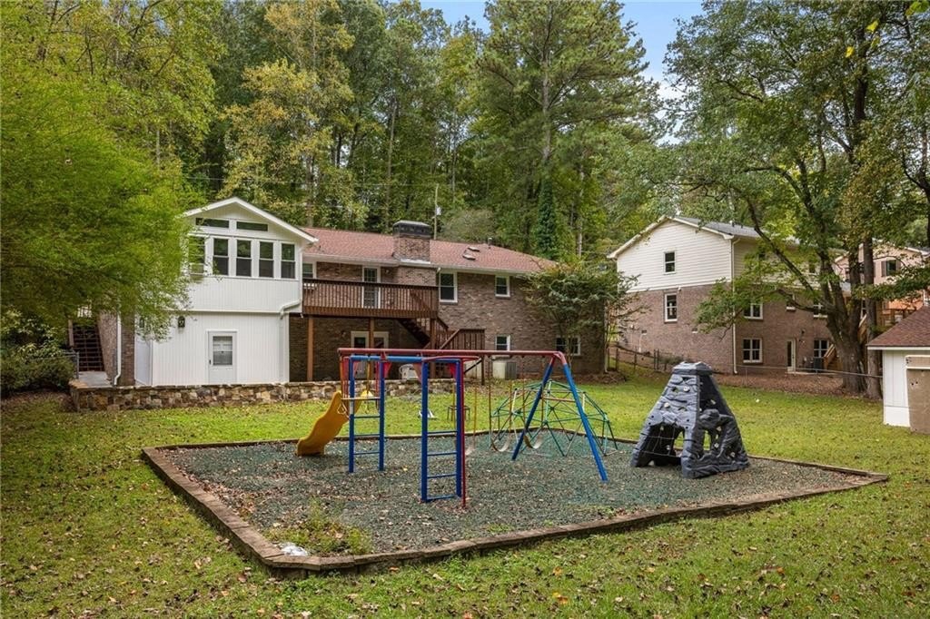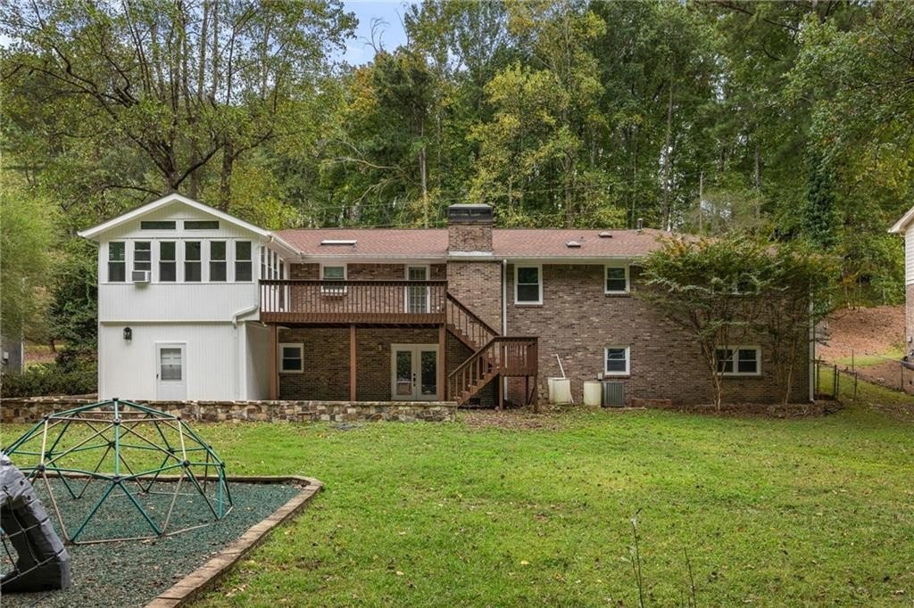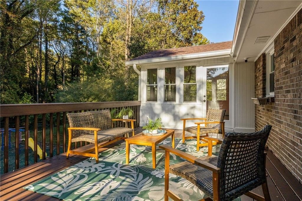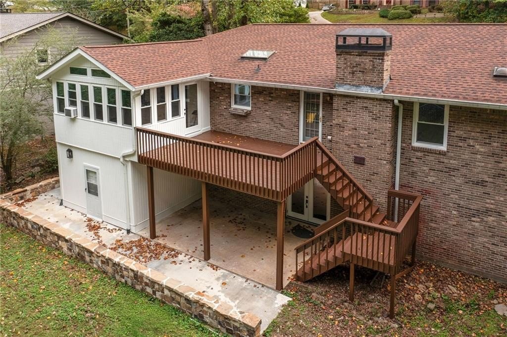 Tucked in the Northcrest neighborhood, this spacious brick beauty brings together timeless character, everyday comfort, and plenty of room to live, entertain, and unwind. A covered front porch framed by classic brick arches sets the tone for what’s inside. Step through the front door into a bright, welcoming foyer showcasing fresh paint and beautiful hardwood floors that run throughout the main level. The dining room sits just beyond—ready for lively dinner parties, cozy holidays, or midweek meals that turn into long talks over dessert. The family room is warm and inviting with a cozy fireplace and wood accents. Double doors open to a generous back deck that feels like an outdoor living room—perfect for weekend barbecues, evening cocktails, or morning coffee in the sunshine. The kitchen blends function and charm with a built-in microwave, updated oven, and a cheerful breakfast nook that catches all the morning light. Just off the kitchen, a glass-wrapped sunroom offers the best seat in the house to enjoy your morning routine, work-from-home days, or an afternoon read overlooking the backyard. Down the hall, three inviting bedrooms provide the perfect retreat to relax and recharge. The primary suite features a private bath with a skylight, double vanity, and heated floors that make early mornings a little easier. Two generously sized secondary bedrooms share a thoughtfully designed hall bath, offering flexibility for overnight guests, a home office, or creative space. The fully finished basement delivers incredible flexibility for how you live and host. A vintage-style wet bar and spacious living area invite game nights, movie marathons, or big celebrations. Two additional bedrooms and a full bath make it ideal for guests or extended family, while the second kitchen adds extra convenience for entertaining or longer stays. Out back, a large, level yard stretches out with room to garden, play, or even add a pool. It’s the kind of outdoor space that turns into the backdrop for every season—cookouts in summer, firepits in fall, and starry nights year-round. The 18x22 shed comes with electricity and a dedicated woodworking space, perfect for hobbies or projects. This Northcrest gem offers all the lifestyle perks you want. Join the Northcrest swim and tennis community, take advantage of the sought-after Lakeside High School district, and enjoy walkability to Kroger and nearby shops and restaurants. Commuting is a breeze with easy access to 285 and 85, or take the backroads when Atlanta traffic hits. Two houses in one, a flexible layout, modern comforts, and endless entertaining options make this home a true Northcrest standout—ready for the life you’ve been imagining.