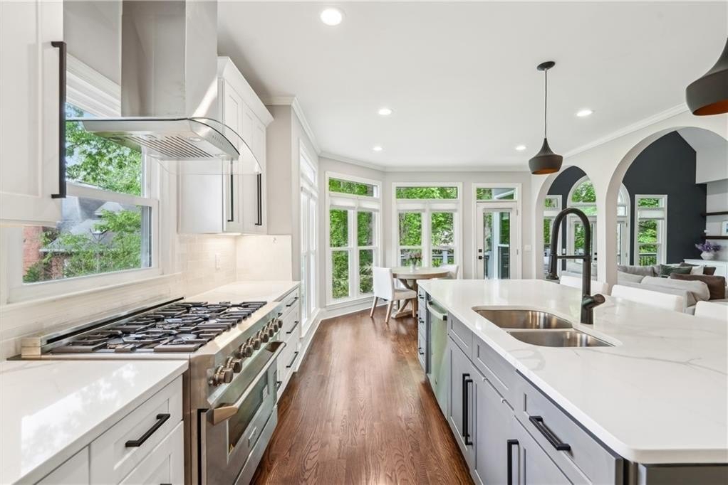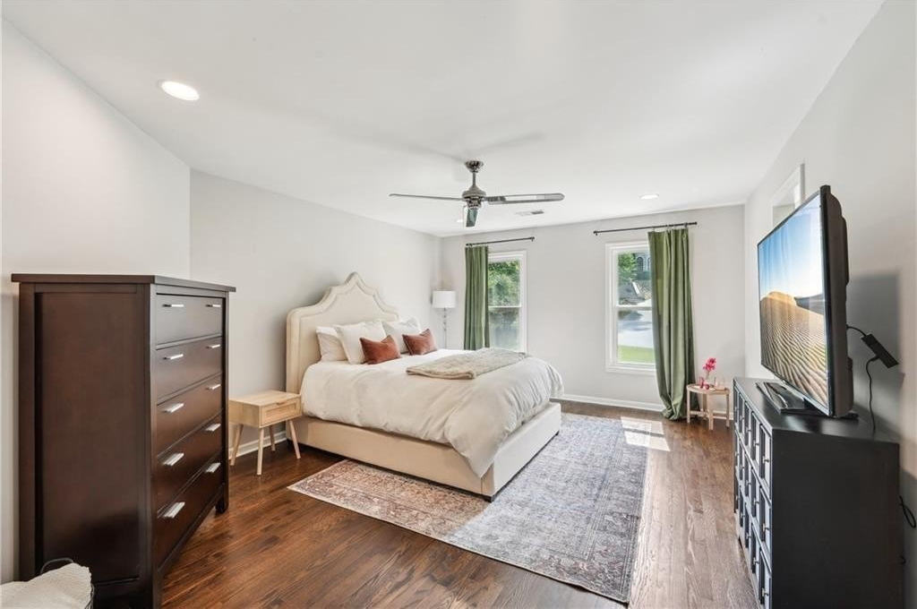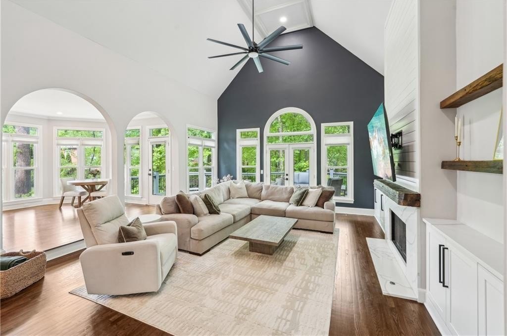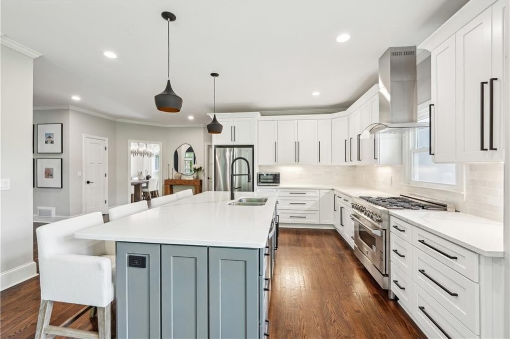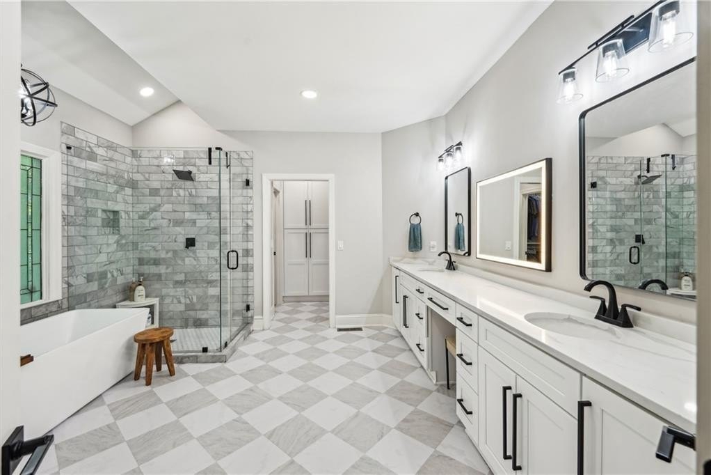 Step into sophistication in this fully renovated designer home situated in one of Smyrna’s most sought-after neighborhoods, Vinings Glen. Every detail has been thoughtfully curated for the discerning buyer who values luxury, comfort, and proximity to all that Smyrna has to offer. Boasting a new roof, new systems, and high-end finishes throughout, this home offers peace of mind and turnkey living. From the moment you enter, you're greeted by elevated style—custom lighting, architectural charm throughout, stunning hardwood floors, and an open-concept floor-plan with an abundance of natural light perfect for both everyday living and entertaining. The heart of the home is the gourmet kitchen, featuring quartz countertops, an oversized island, custom cabinetry, and premium stainless appliances. Host elegant dinner parties in the formal dining area or enjoy casual evenings gathered around the statement fireplace in the living room. The spacious primary suite on the main level is a retreat in itself, with a spa-inspired bath, freestanding tub, oversized shower, and custom walk-in closets with built in storage. Additional bedrooms upstairs are generously sized, offering room for guests, and family. The finished basement is where this home truly shines—a second oversized living room, space for your own golf simulator and custom cocktail bar setup for a luxurious in-home escape or game-day headquarters, a workout room, as well as another bedroom and full bathroom perfect for a playroom or a guest retreat. All of this just minutes from Vinings, The Battery Atlanta, and top-rated schools, with easy access to I-285 and the best of metro Atlanta.