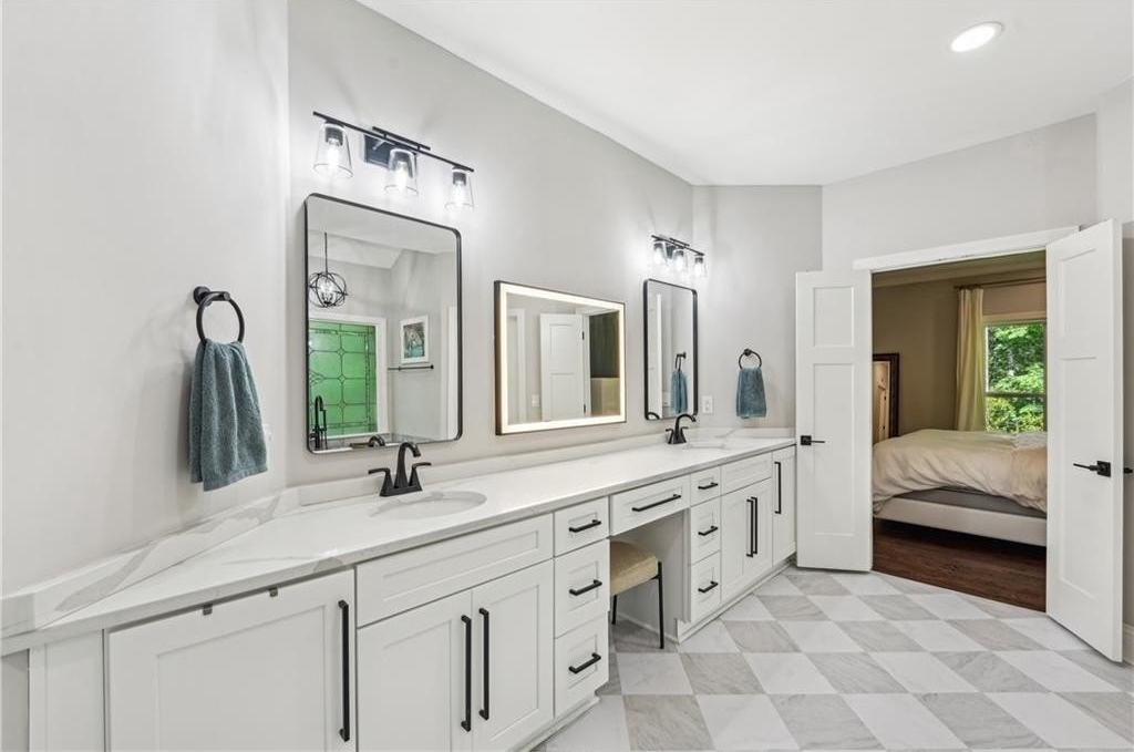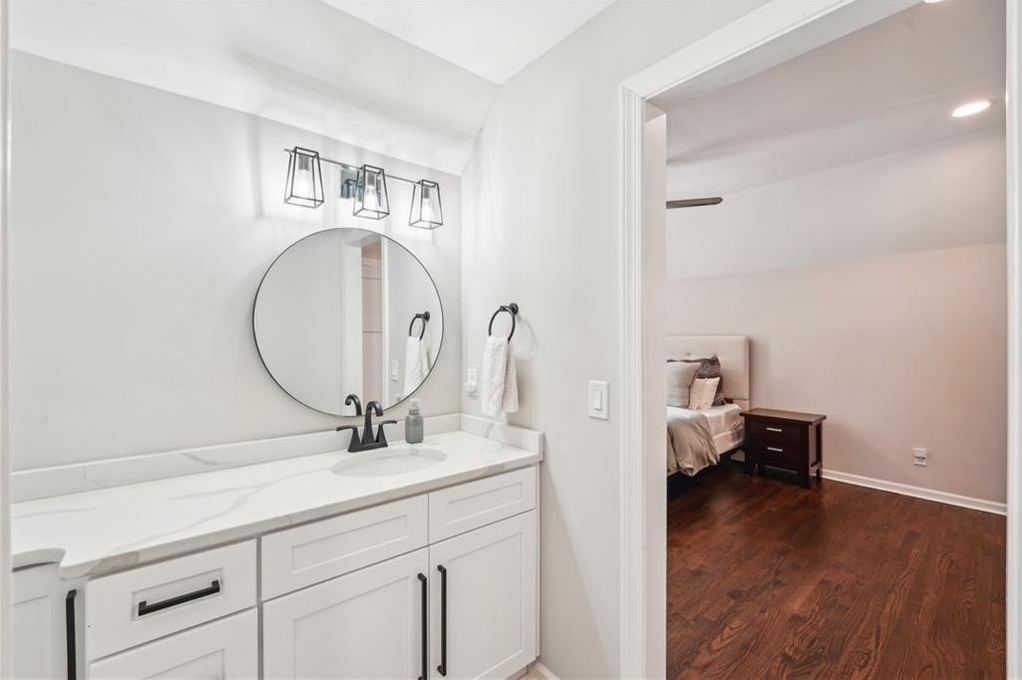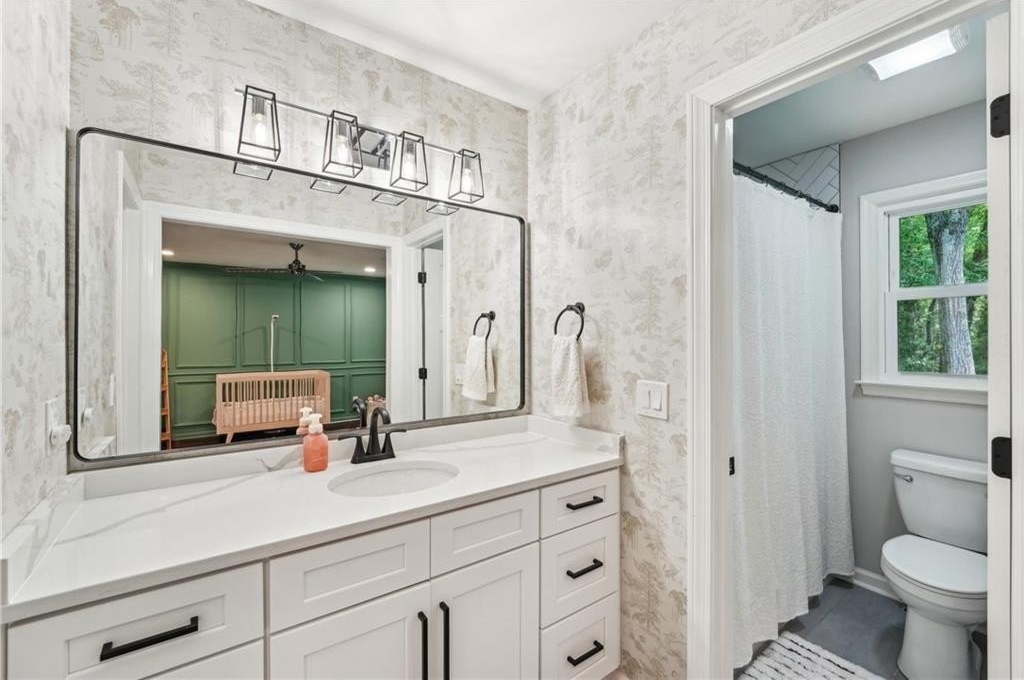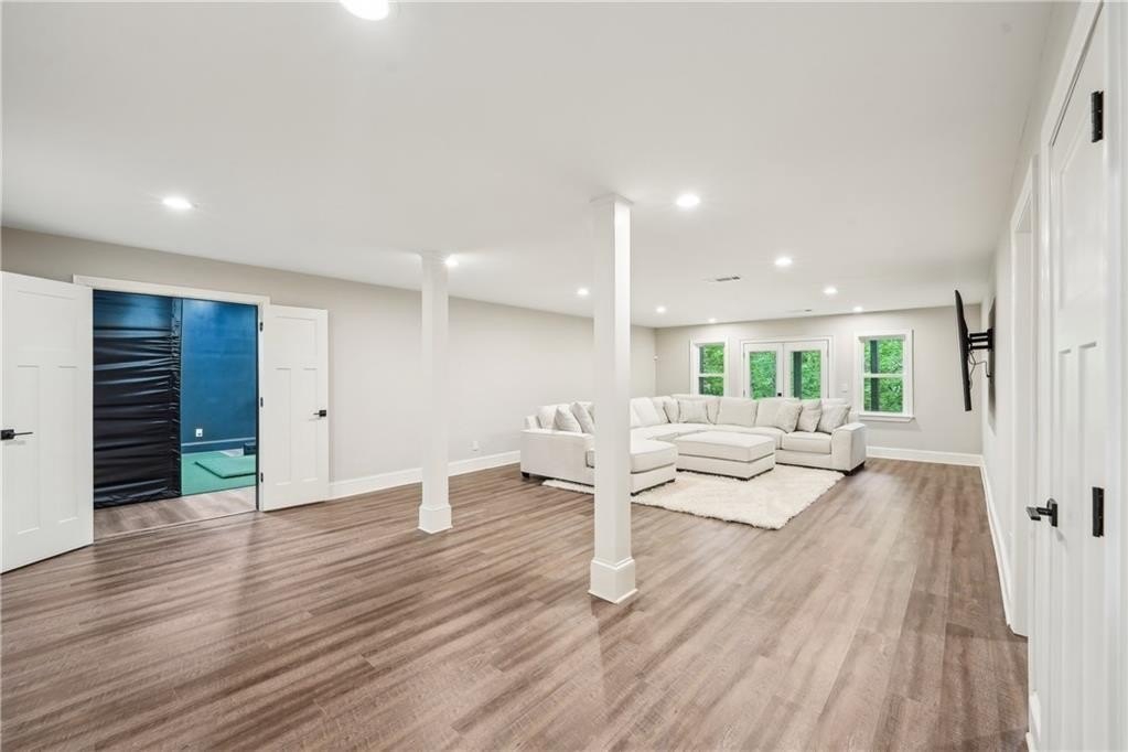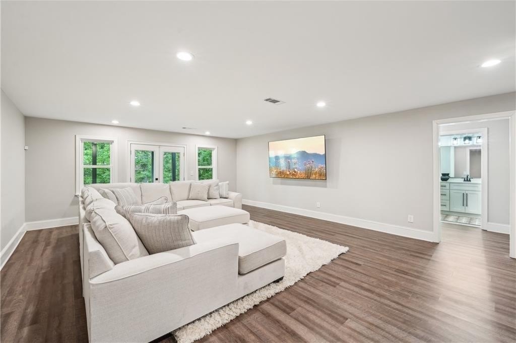 Step into sophistication in this fully renovated designer home situated in one of Smyrna’s most sought-after neighborhoods, Vinings Glen. Every detail has been thoughtfully curated for the discerning buyer who values luxury, comfort, and proximity to all that Smyrna has to offer. Boasting a new roof, new systems, and high-end finishes throughout, this home offers peace of mind and turnkey living. From the moment you enter, you're greeted by elevated style—custom lighting, architectural charm throughout, stunning hardwood floors, and an open-concept floor-plan with an abundance of natural light perfect for both everyday living and entertaining. The heart of the home is the gourmet kitchen, featuring quartz countertops, an oversized island, custom cabinetry, and premium stainless appliances. Host elegant dinner parties in the formal dining area or enjoy casual evenings gathered around the statement fireplace in the living room. The spacious primary suite on the main level is a retreat in itself, with a spa-inspired bath, freestanding tub, oversized shower, and custom walk-in closets with built in storage. Additional bedrooms upstairs are generously sized, offering room for guests, and family. The finished basement is where this home truly shines—a second oversized living room, space for your own golf simulator and custom cocktail bar setup for a luxurious in-home escape or game-day headquarters, a workout room, as well as another bedroom and full bathroom perfect for a playroom or a guest retreat. All of this just minutes from Vinings, The Battery Atlanta, and top-rated schools, with easy access to I-285 and the best of metro Atlanta.