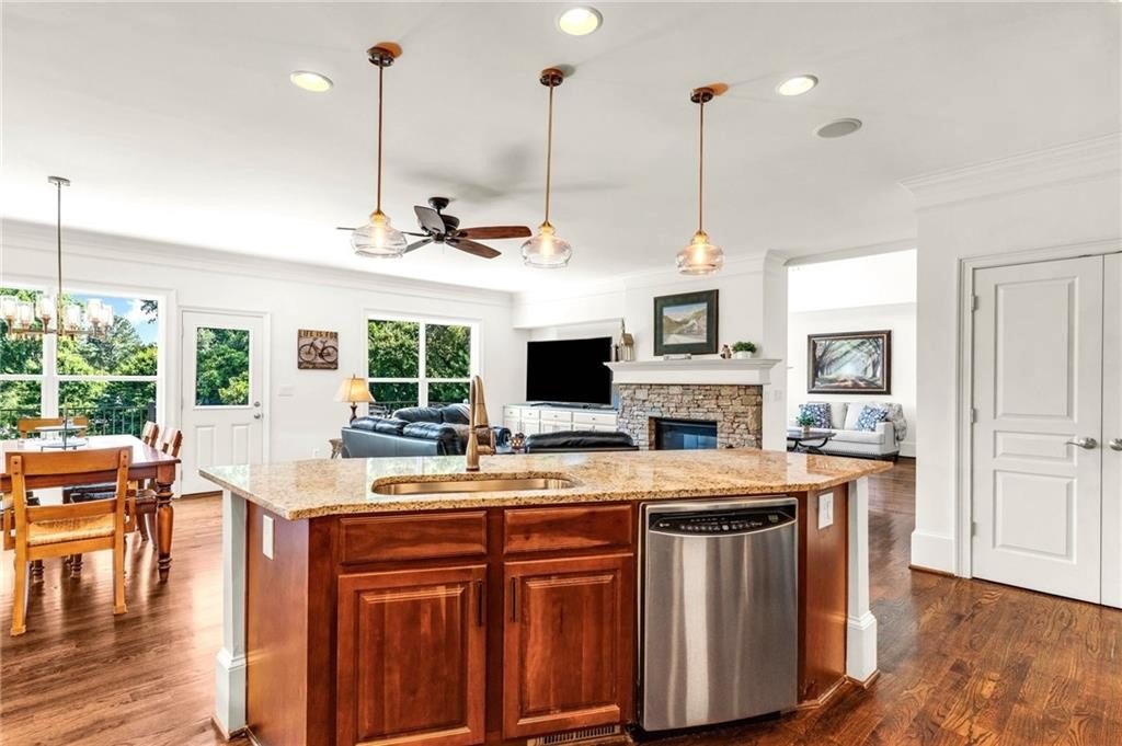 **UNBELIEVABLE PRICE!!**Custom-Built Lake Lanier Retreat – A Builder’s Personal Masterpiece** Welcome to a perfectly maintained brick and stone home on the shores of Lake Lanier, built and owned by the builder himself—where quality craftsmanship meets lakeside living. Every inch of this home was thoughtfully designed with expanded room sizes, custom accent walls, heavy trim, and attention to detail in every room. Step outside and launch your kayak, cast a line, or simply relax by the water—this lush one-acre property offers direct lake access right from your backyard. A spacious front porch is the perfect spot to unwind as deer graze nearby, and the oversized back deck sets the stage for peaceful sunset dinners. Gather around the fire pit and soak in the serenity of your private retreat. Inside, the home impresses with a two-story family room filled with natural light, a warm keeping room off the large kitchen, and a generous breakfast area perfect for casual mornings. The kitchen is a dream with abundant cabinetry and workspace. Main level living includes a bedroom and full bath, an office with built-ins, and a formal dining room for entertaining. Upstairs features large secondary bedrooms, a bonus/media room ideal for movie nights or play space, and a stunning owner’s suite with a completely remodeled bathroom and custom closet shelving. An unfinished basement offers room to grow or customize. The home also boasts a newer roof, new interior and exterior paint, 300-amp electrical service, irrigation system, speaker system throughout the home, new flooring and more!!! AND, it is just seconds from a boat ramp, park, playground, and picnic pavilions. This is more than a home—it’s a lifestyle!