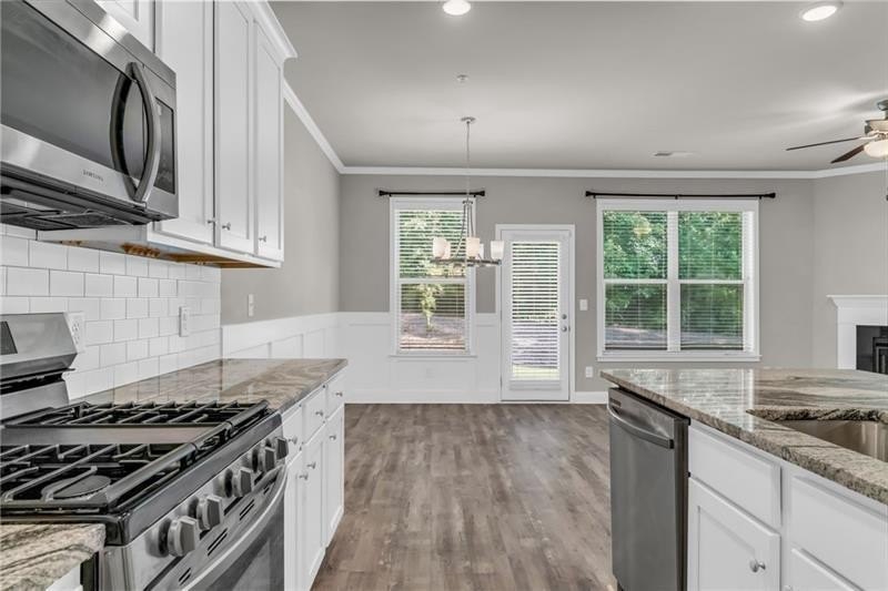 Enjoy generously sized bedrooms, including a luxurious owner’s suite with a spa-like bath and walk-in closet. The modern kitchen and private backyard is ideal for relaxing or hosting friends, and the community amenities add to the lifestyle! Park at Camden is conveniently surrounded by plenty of shopping, dining, and entertainment, the Outlet Shoppes, Shops at Trickum, The Centre at Woodstock, and several area golf clubs. This subdivision also allows easy access to dog parks and Dupree Park, an area featuring basketball and tennis courts, fitness stations, and nature trails: a place perfect for hiking and biking. Located just minutes from downtown Woodstock, top-rated schools, dining, and shopping, this is the home you’ve been waiting for—and at just $419K, it’s the best value in the area! Move in ready for quick closing!