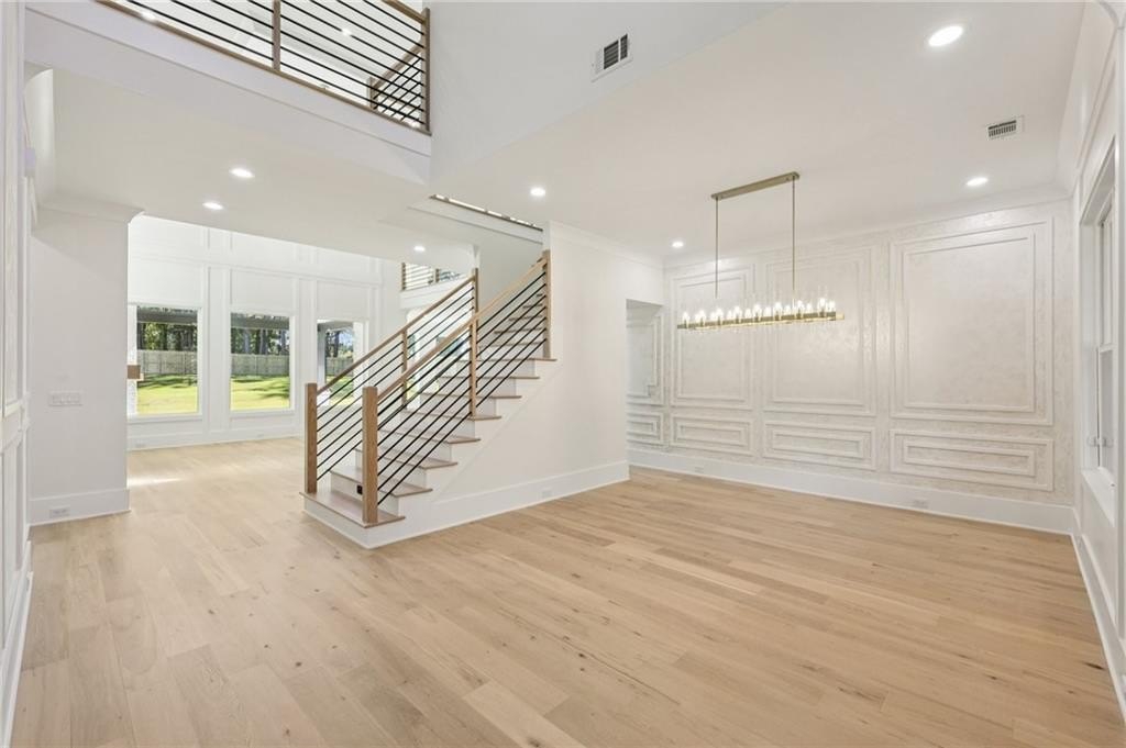 Introducing a newly completed custom estate that blends timeless design with today’s most desired luxury features. From the moment you enter the dramatic two-story foyer with designer chandelier and custom millwork, you are welcomed into a home that was created to impress. Soaring ceilings, wide-plank hardwoods, arched 8-foot doors, and elegant Venetian plaster accents set the stage for refined living. The open great room, anchored by a striking plaster fireplace, flows seamlessly into both formal and casual spaces, while the upstairs loft media room—with fireplace, wet bar, and wine rack—provides the perfect setting for entertaining.
